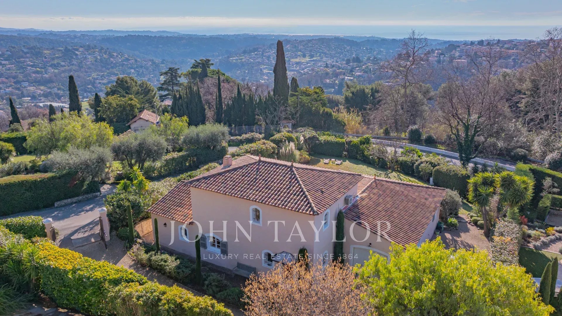 На уровне сада вилла включает в себя гостеприимную прихожую, гостевой туалет, просторную гостиную/столовую, залитую светом, с возможностью установки камина благодаря существующему дымоходу. Отдельная оборудованная кухня выходит на просторную крытую террасу, дополненную подсобным помещением/прачечной. На этом уровне находится большая спальня с гардеробной и ванной комнатой, а также просторный гараж с чердачным помещением. Наверху лестница ведет к трем спальням, душевой, ванной комнате и гостевому туалету. На территории дома расположен бассейн, террасы и двухуровневый террасный сад с великолепным видом на море.