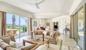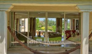 Главная вилла включает в себя гостиную площадью почти 100 м², залитую светом благодаря двойным окнам, столовую и полностью оборудованную кухню, выходящую на приятную тенистую террасу. В доме пять спален с ванными комнатами, а также главная спальня на втором этаже с гардеробной и террасой на крыше, откуда открывается беспрерывный вид на залив Сен-Тропе.