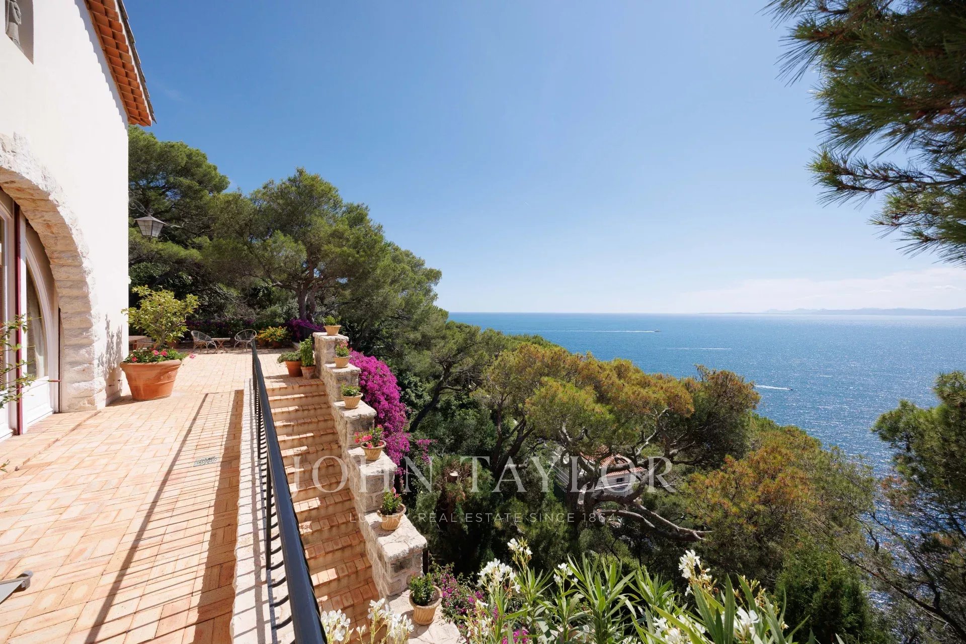 Эта очаровательная 2-этажная вилла построена в провансальском стиле. Она расположена в верхней части великолепного сада. В доме 5 спален и 3 ванные комнаты, гостиная-столовая, выходящая на большую террасу с летней столовой, откуда открывается захватывающий вид на море, просторная кухня и тенистый внутренний дворик...