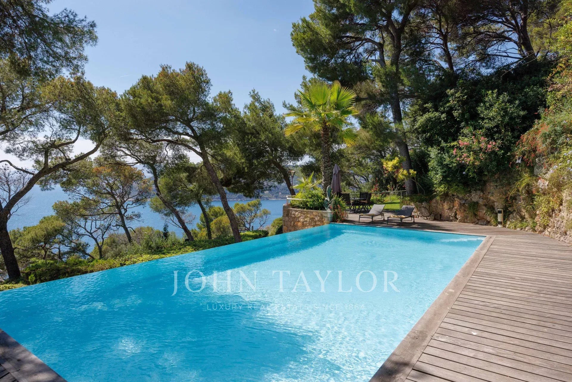 Особняк на западной стороне Кап-Ферра представляет собой оазис зелени, залитый солнечным светом, - 7000 м² садов с наилучшей экспозицией и панорамным видом на море до самого Кап д'Антиб...