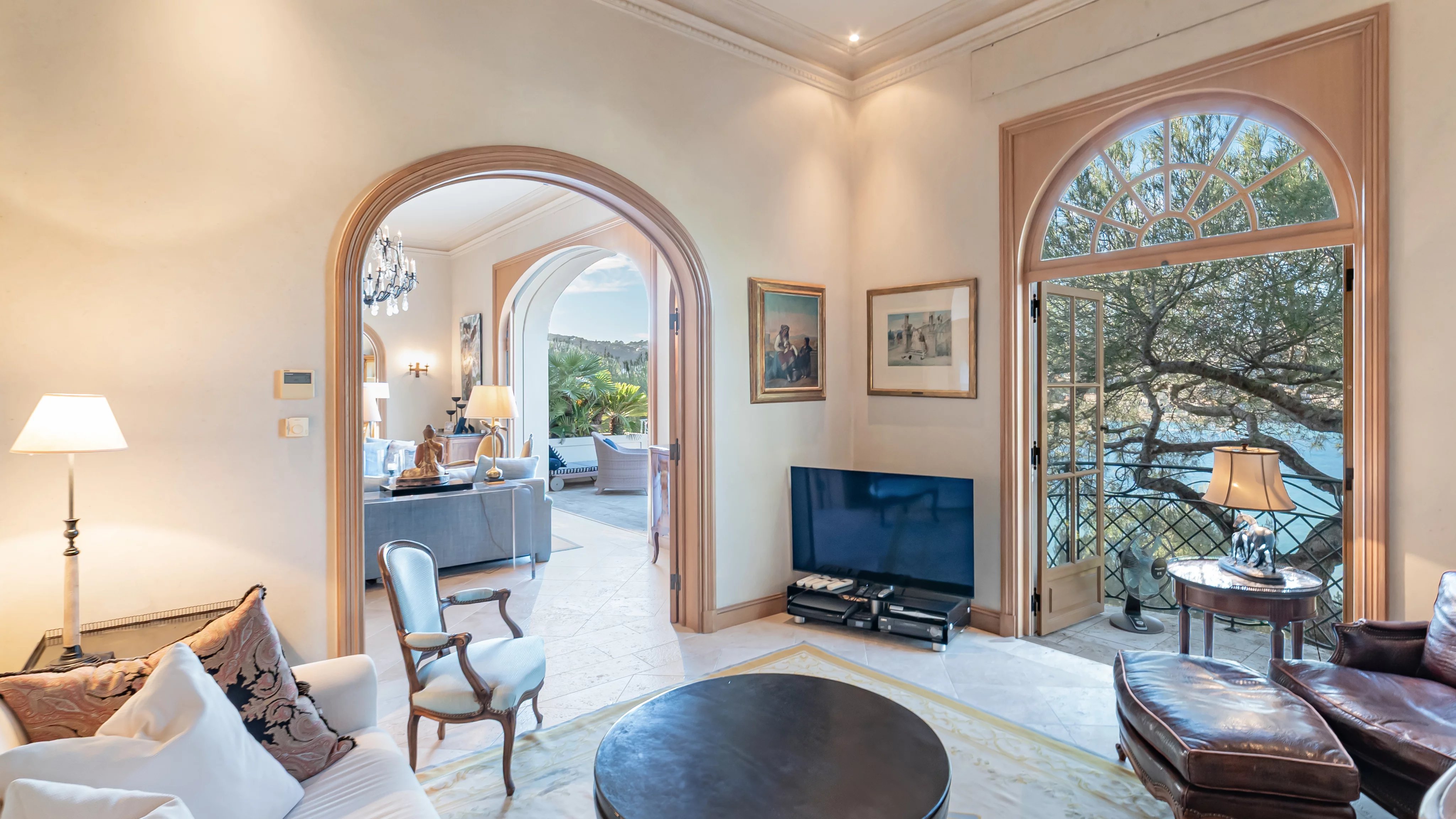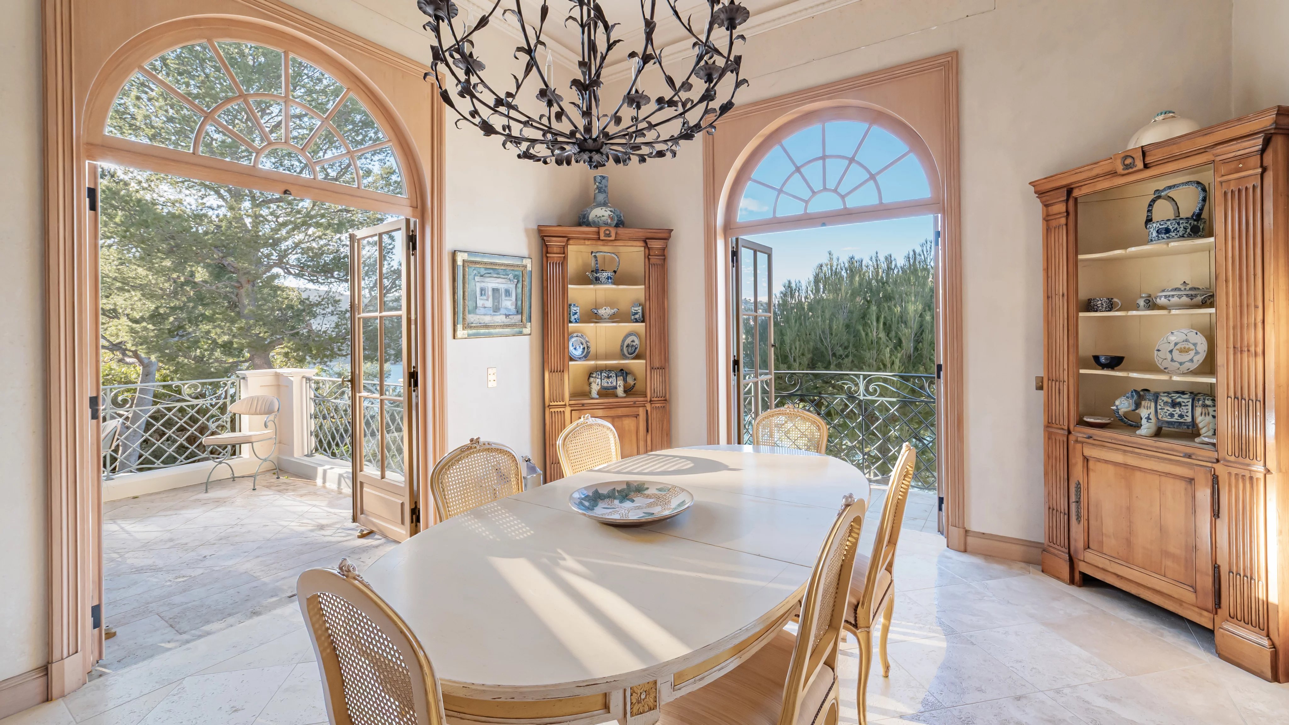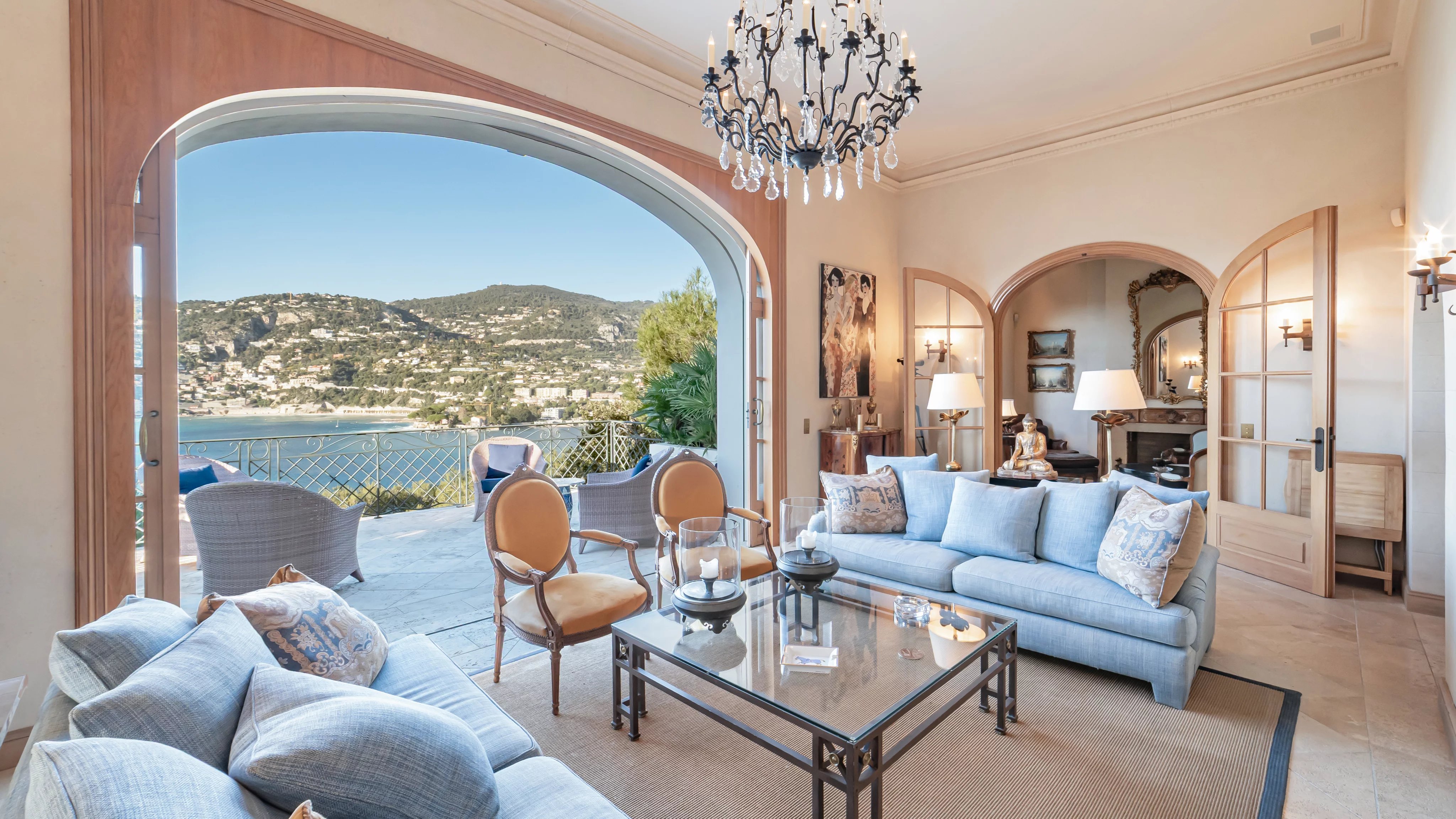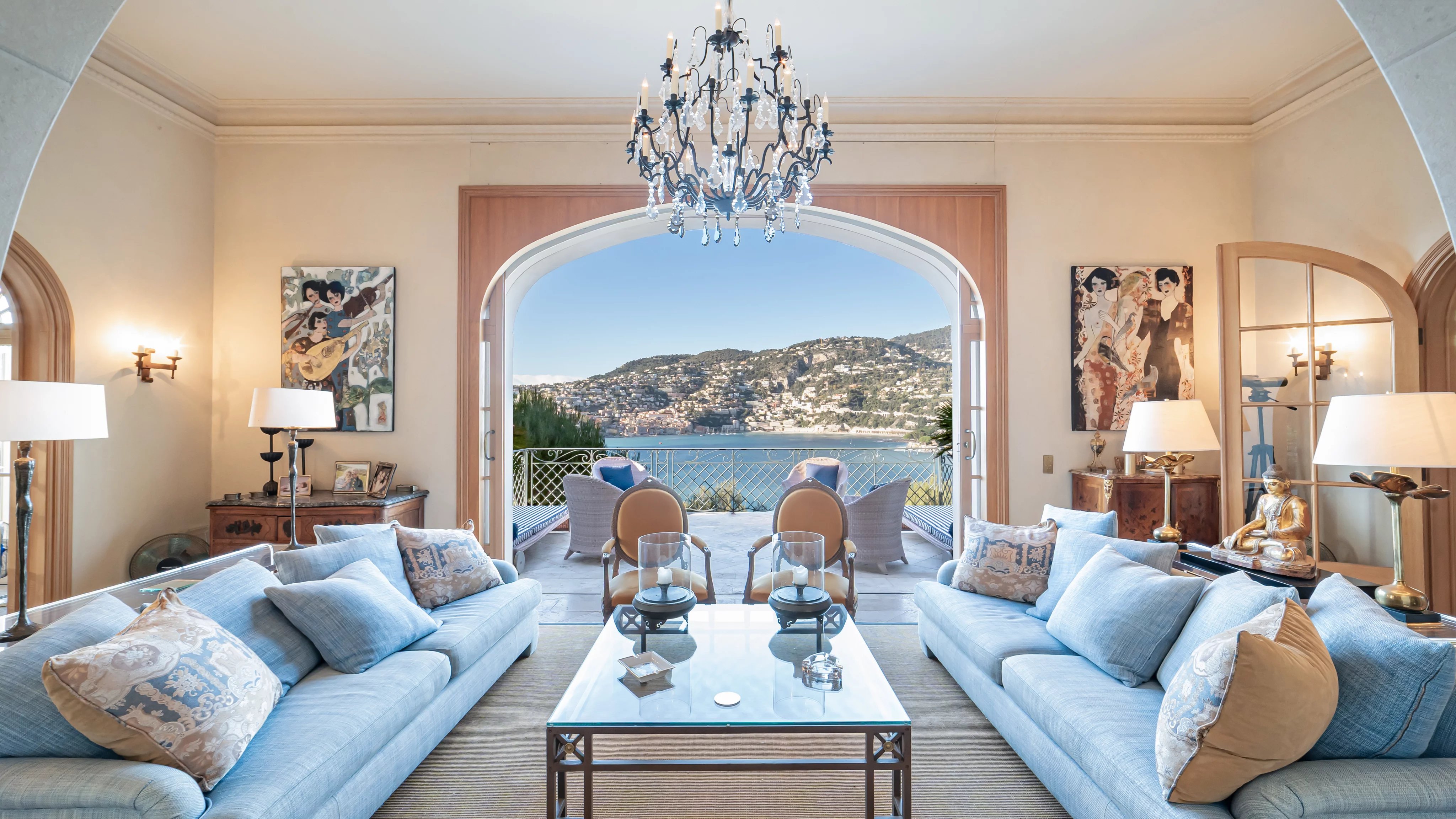Вход на виллу расположен на двух уровнях и ведет в двойную гостиную с террасой, откуда открывается вид на старый город Вильфранш. На этом этаже расположены официальная столовая, большая кухня и спальня с ванной комнатой.