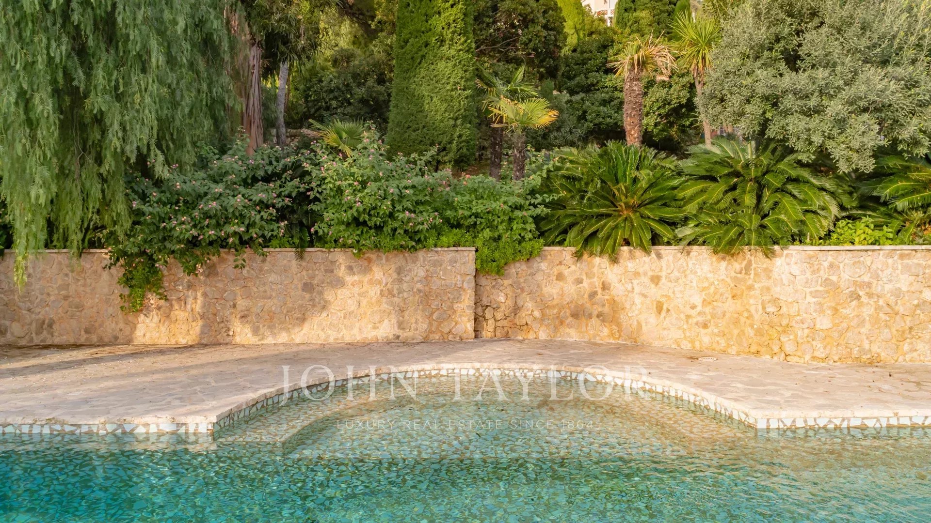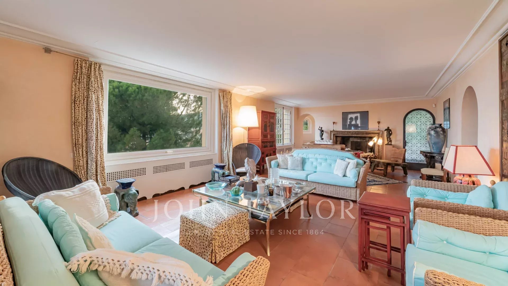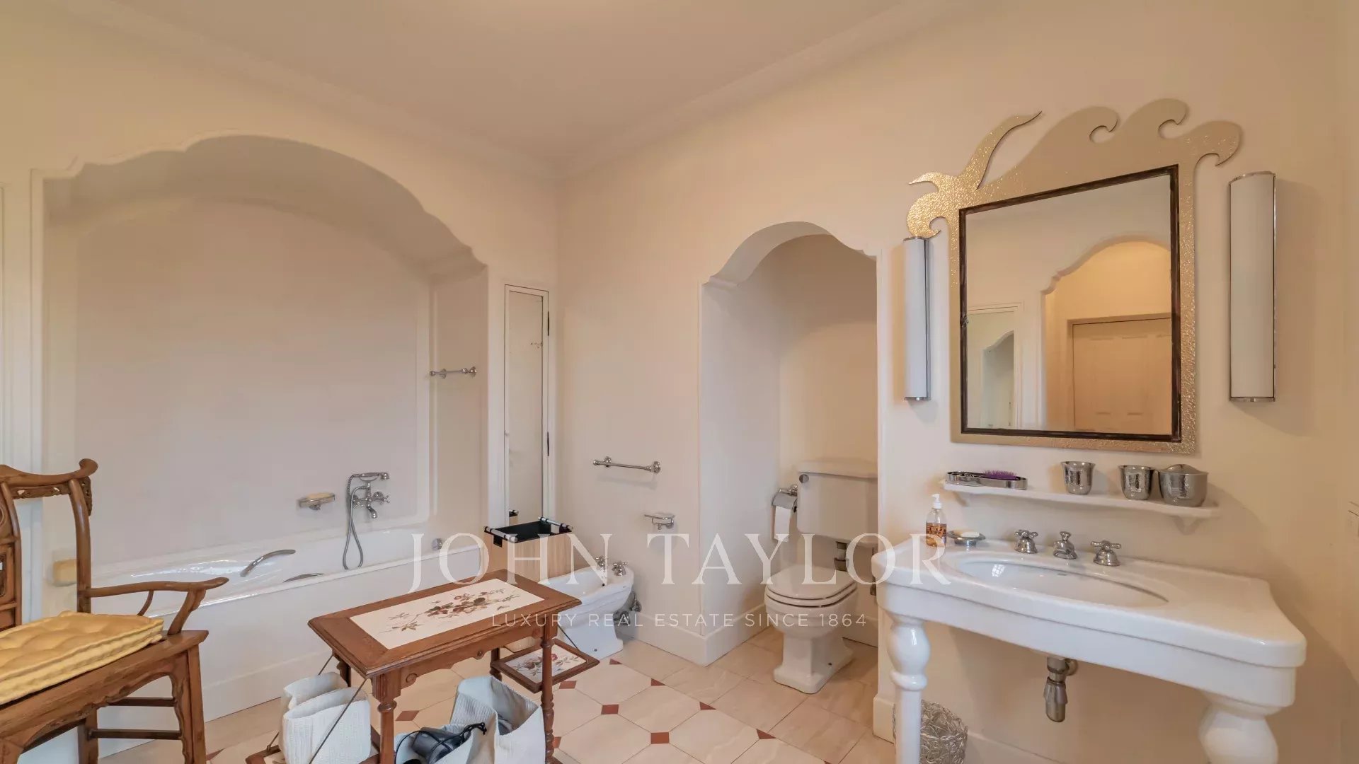 Дом имеет около 550 м² внутренней площади и расположен в зрелом саду с ровной, полезной площадью около 2150 м². Дом расположен на 3 уровнях с лифтом и предлагает просторные помещения с высокими потолками.