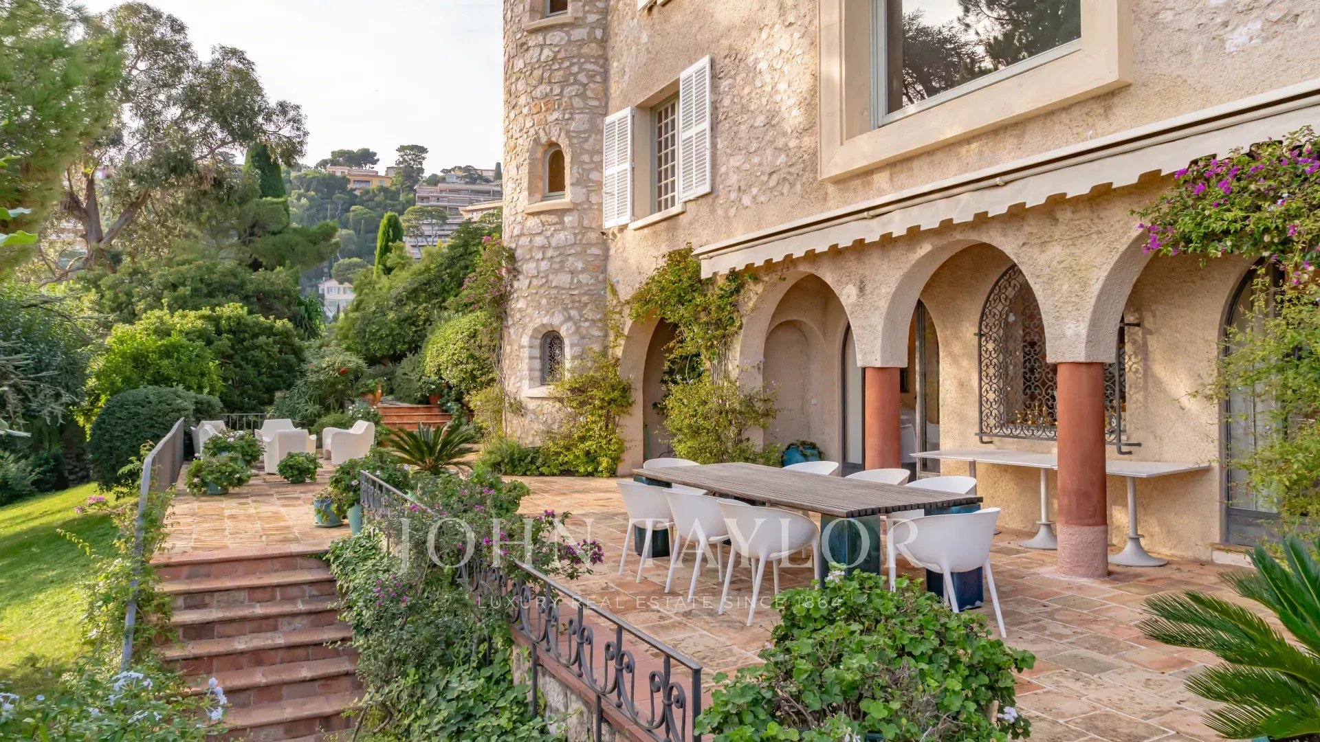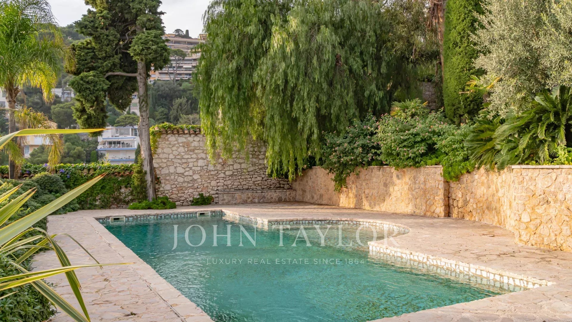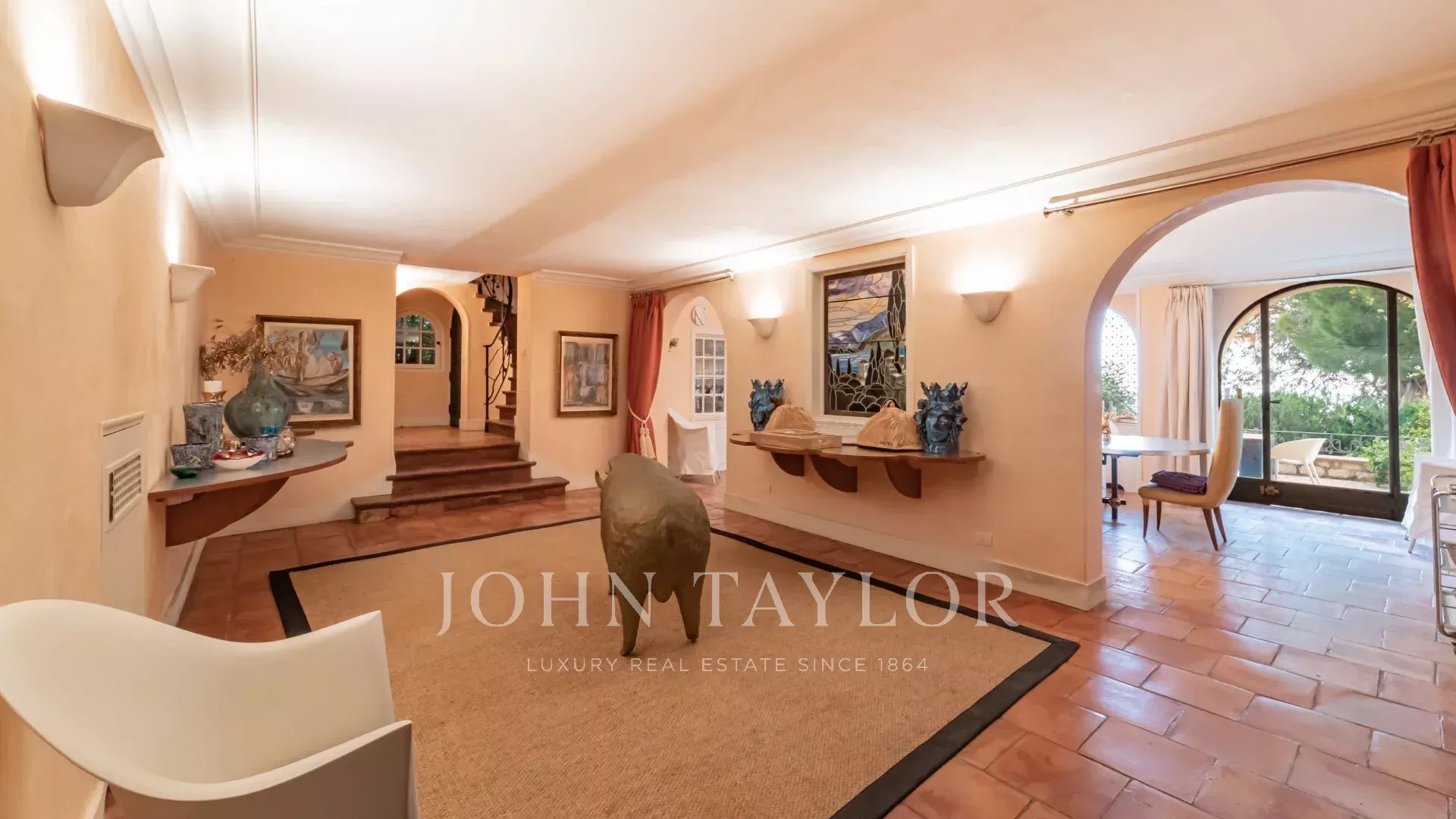 Дом имеет около 550 м² внутренней площади и расположен в зрелом саду с ровной, полезной площадью около 2150 м². Дом расположен на 3 уровнях с лифтом и предлагает просторные помещения с высокими потолками.