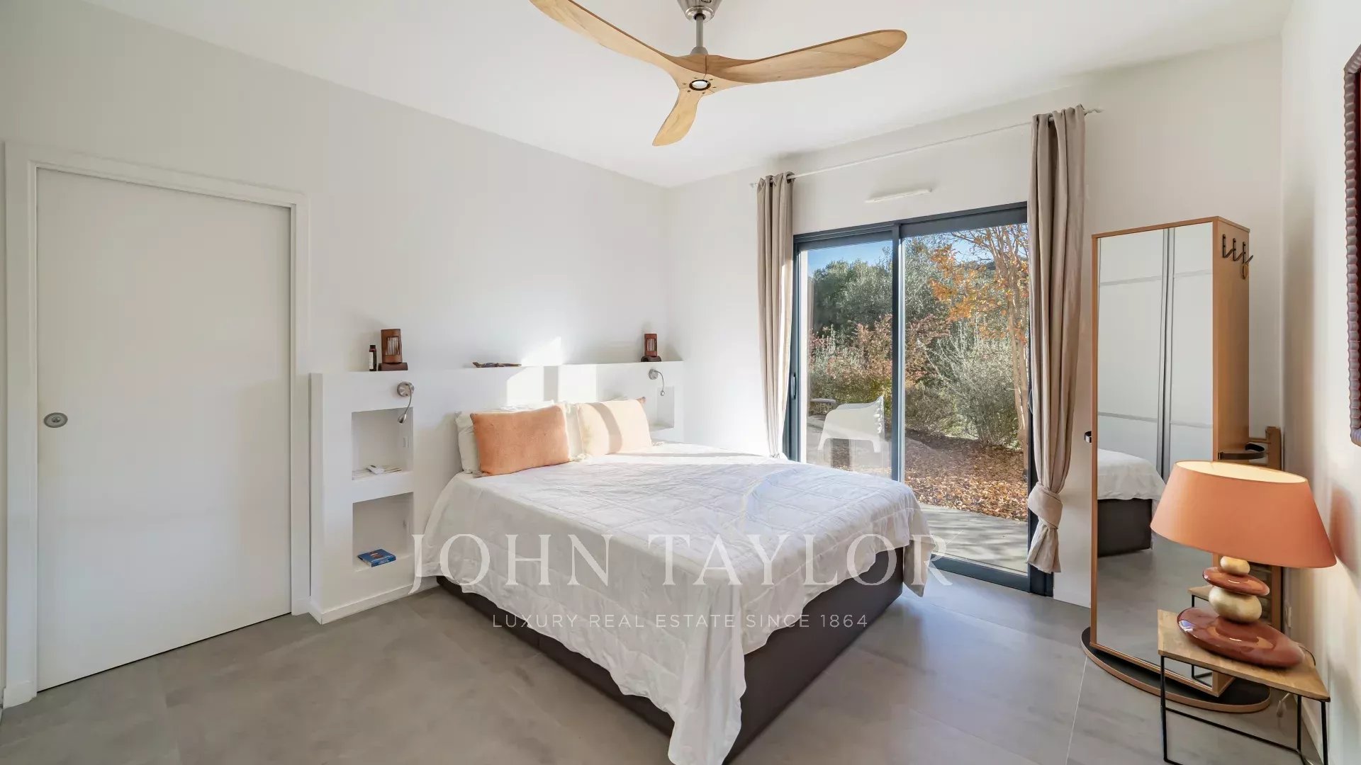 На вилле есть три спальни с ванными комнатами, каждая с видом на сад или сельскую местность, а также четвертая комната, которую можно использовать в качестве дополнительной спальни, кабинета или мастерской. Центральный кабинет с выходом в сад завершает интерьер.