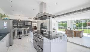 Светлая и уютная закрытая терраса создает идеальную гармонию между внутренним и внешним пространством. Она ведет прямо на современную, полностью оборудованную кухню с большим количеством мест для хранения, просторным центральным островом и стильной барной стойкой, идеальной для тех, кто любит готовить и развлекаться.