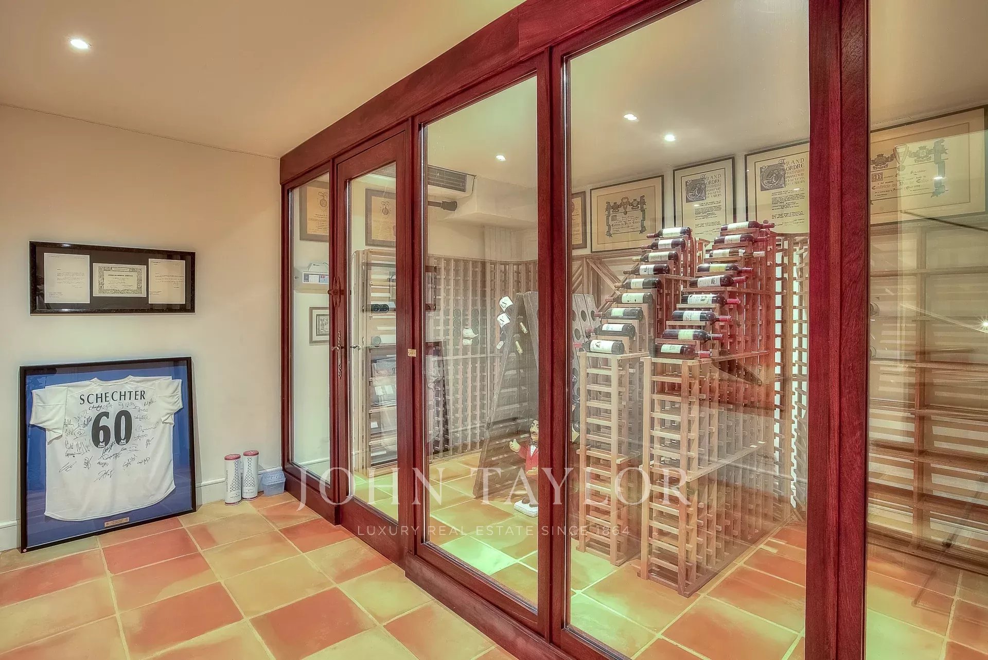 В цокольном этаже находится прекрасный винный погреб с кондиционером и сигарный погреб, а также большая игровая комната.