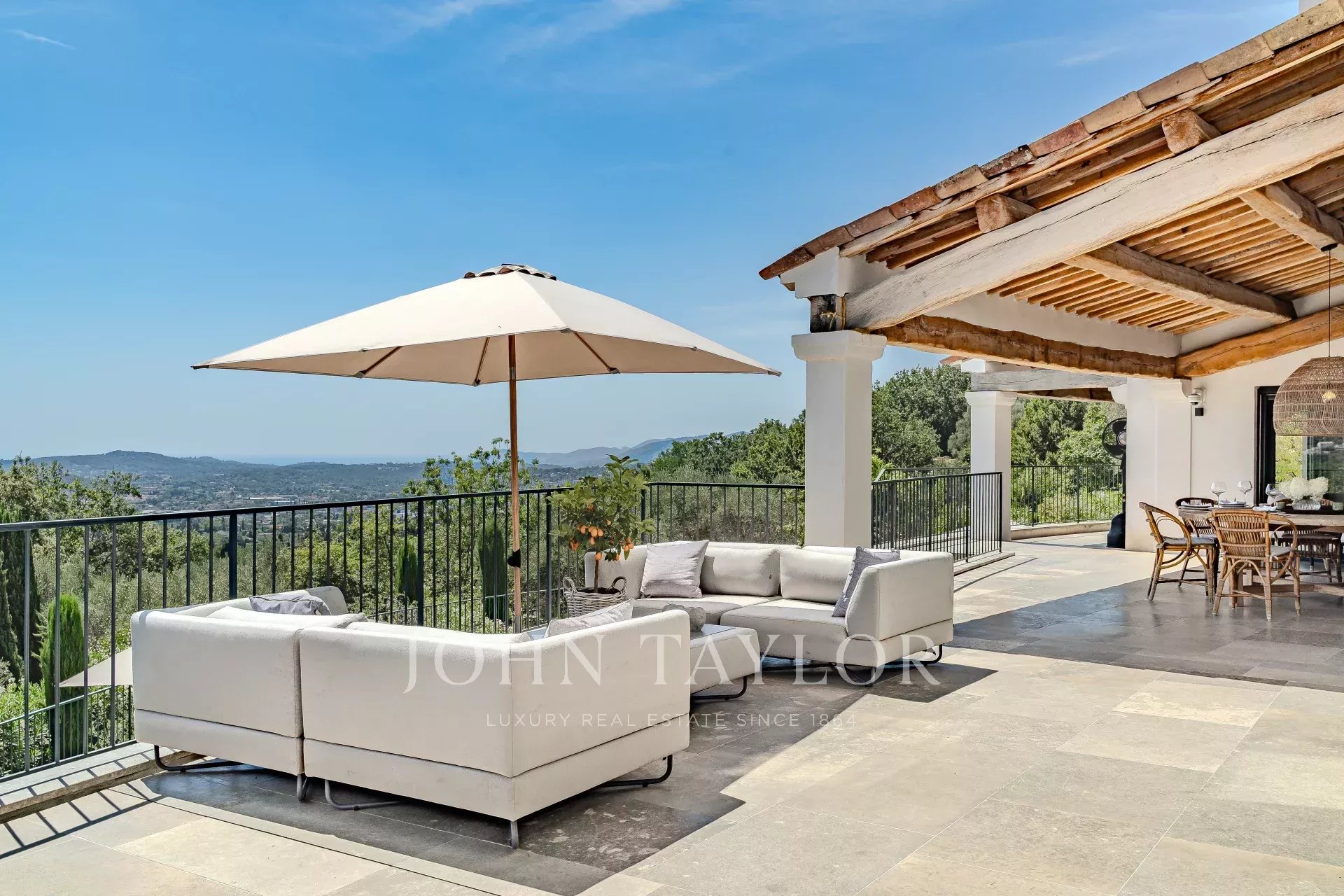 Участок площадью около 5 000 м² с собственным источником был спроектирован известным ландшафтным архитектором Жаном Мусом и придает этому особняку с исключительным средиземноморским шармом в спокойной обстановке несравненную индивидуальность.