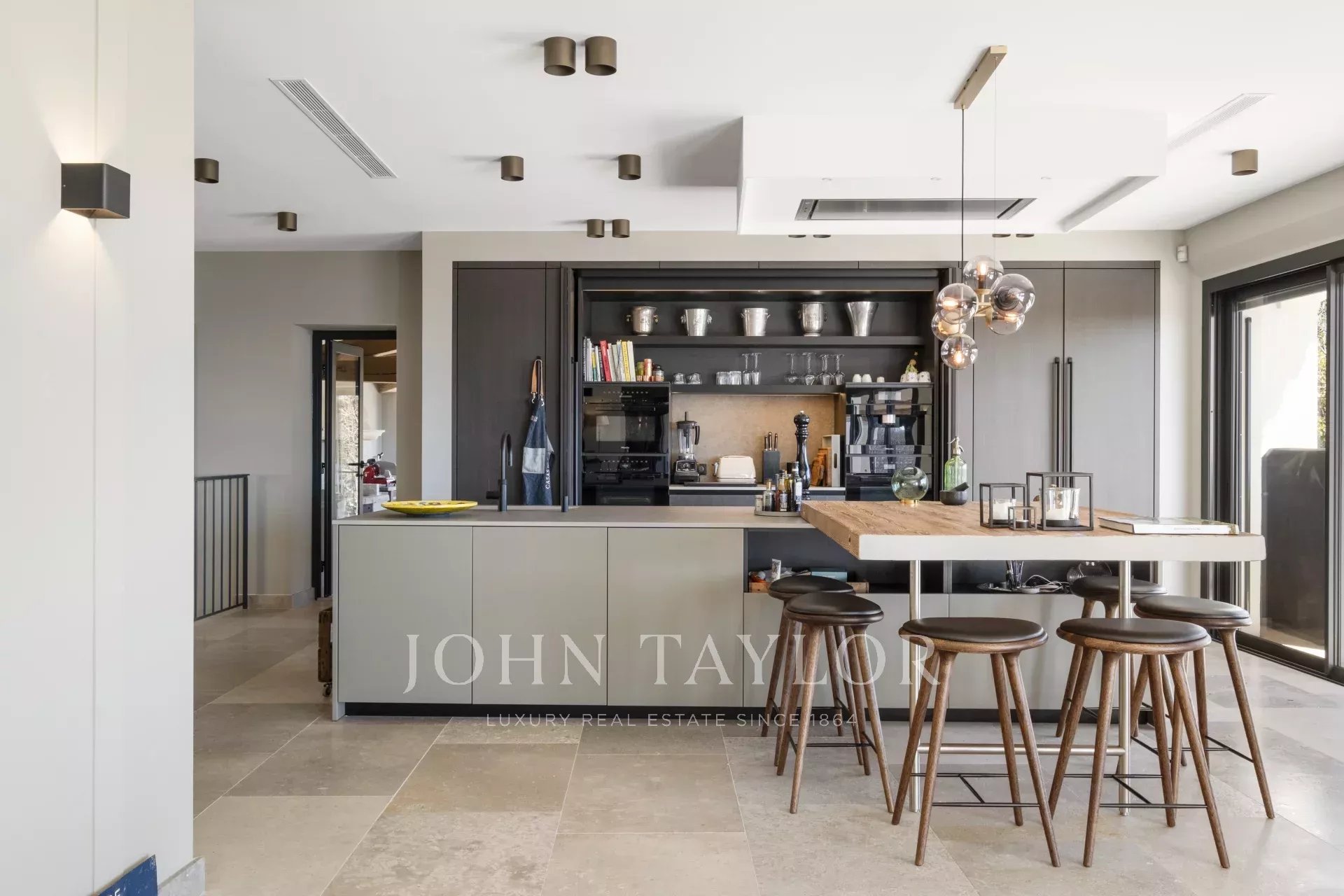 Раздвижные двери на этом уровне выходят на великолепную террасу и открывают панорамные виды.