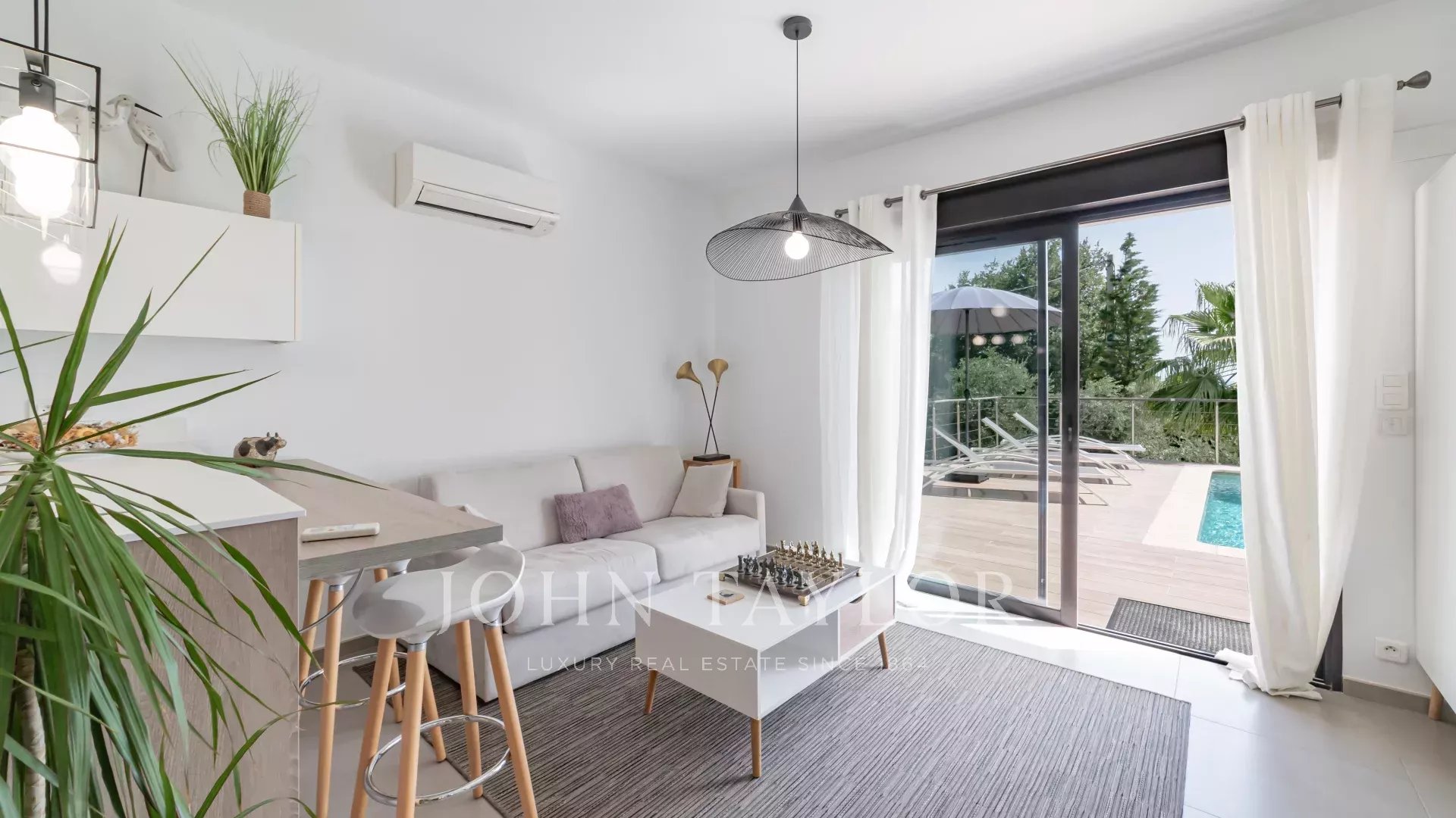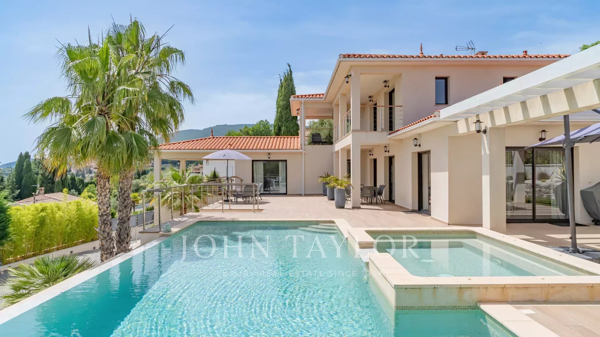 Новая современная вилла площадью около 280 м² на 3 уровнях: прихожая с туалетом, большая меблированная гостиная, большая столовая, полностью оборудованная кухня, выходящая на большую террасу с бассейном и джакузи. Дом у бассейна - отдельная студия с туалетом и душевой комнатой, душ и туалет на открытом воздухе.