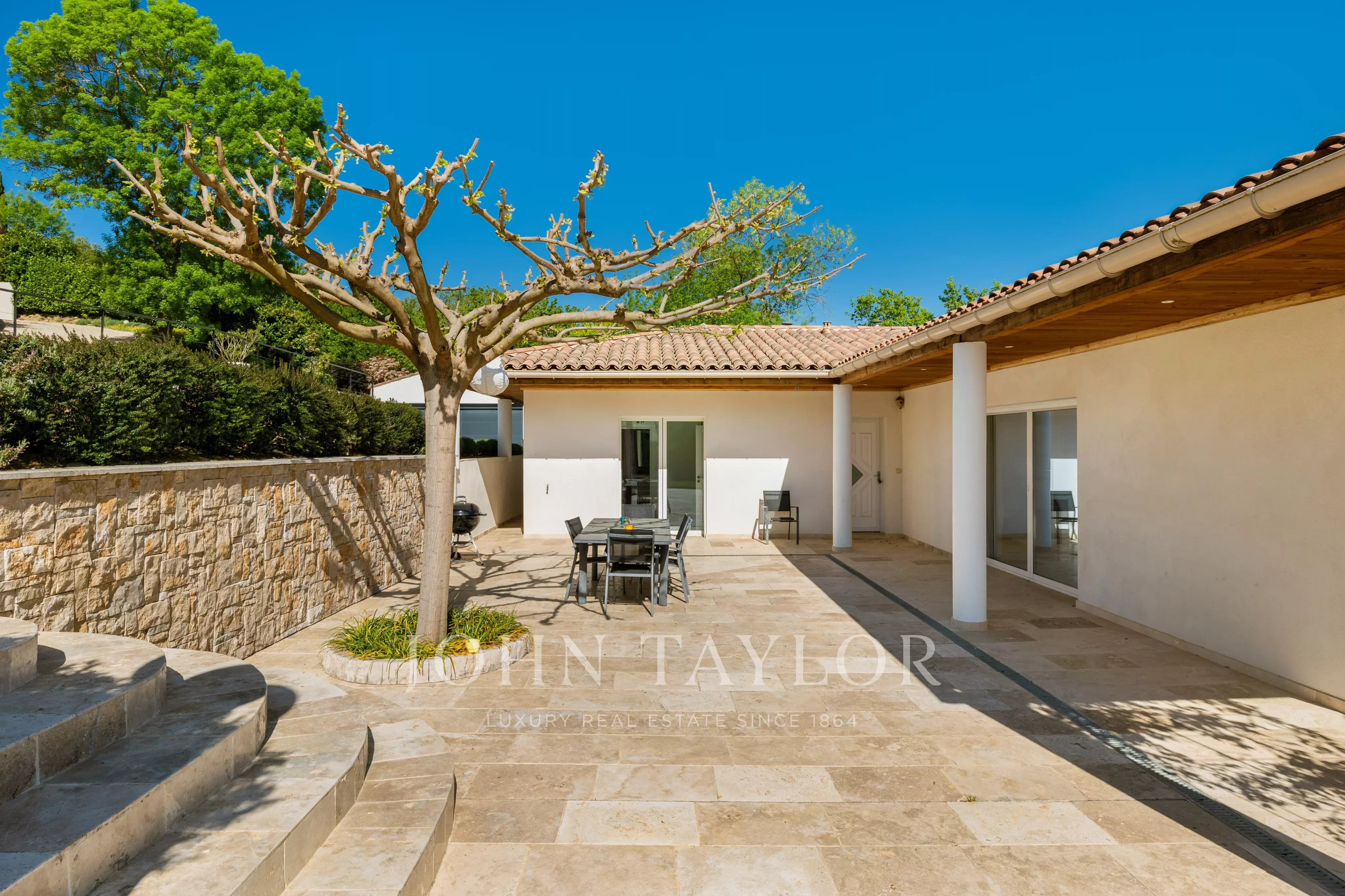 Двойной гараж, садовый сарай, площадка для игры в петанк и несколько парковочных мест дополняют эту семейную недвижимость, идеально расположенную вблизи удобств и магазинов.