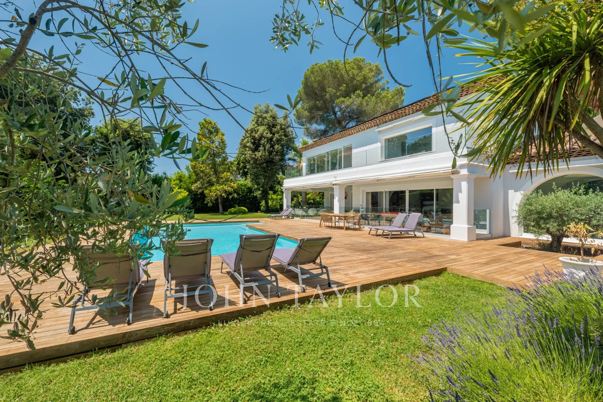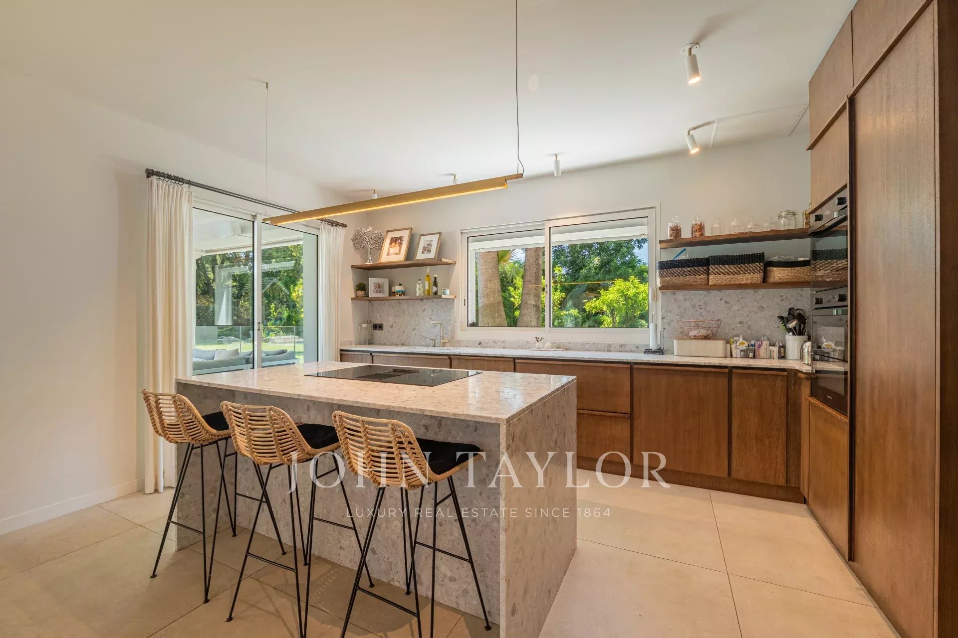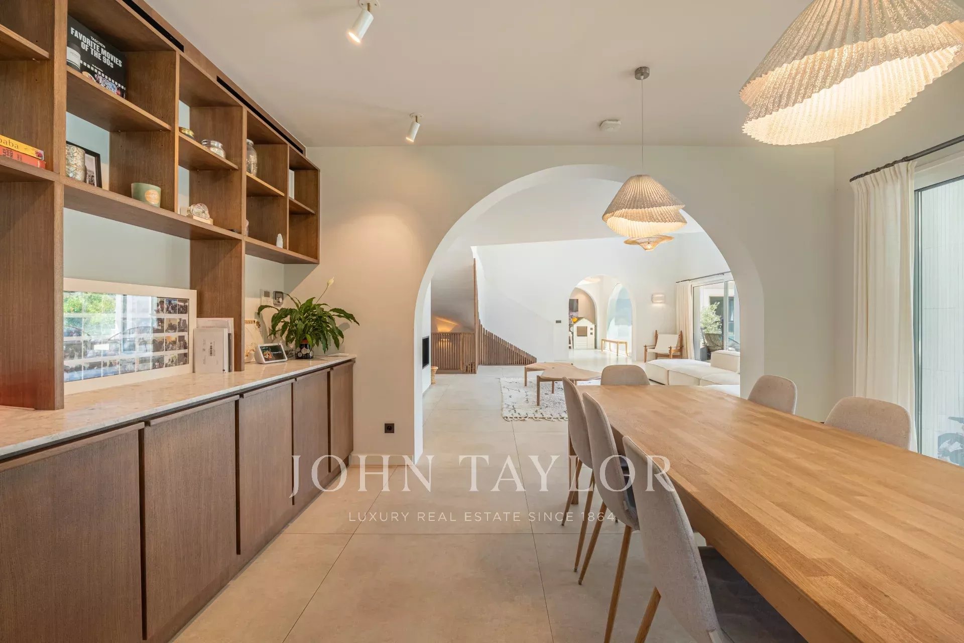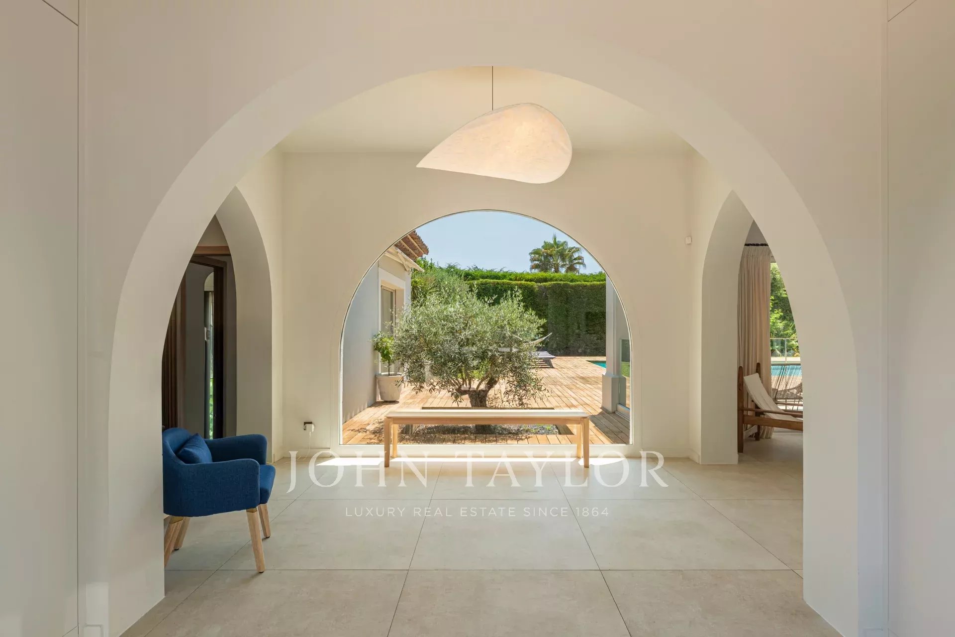 Вилла полностью отремонтирована и расположена на красивом ровном участке площадью более 2850 м². Она излучает теплую, элегантную и гостеприимную атмосферу.