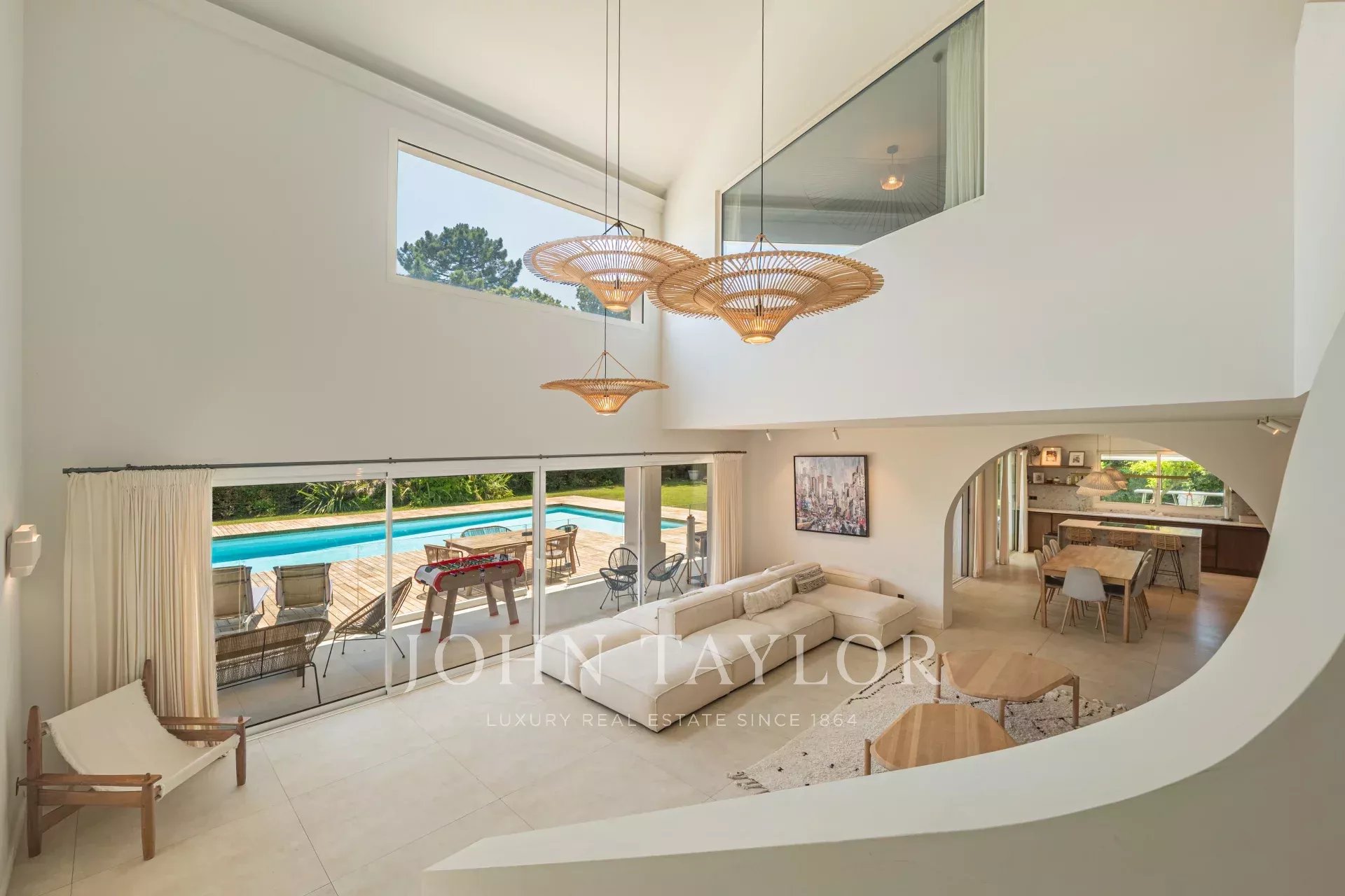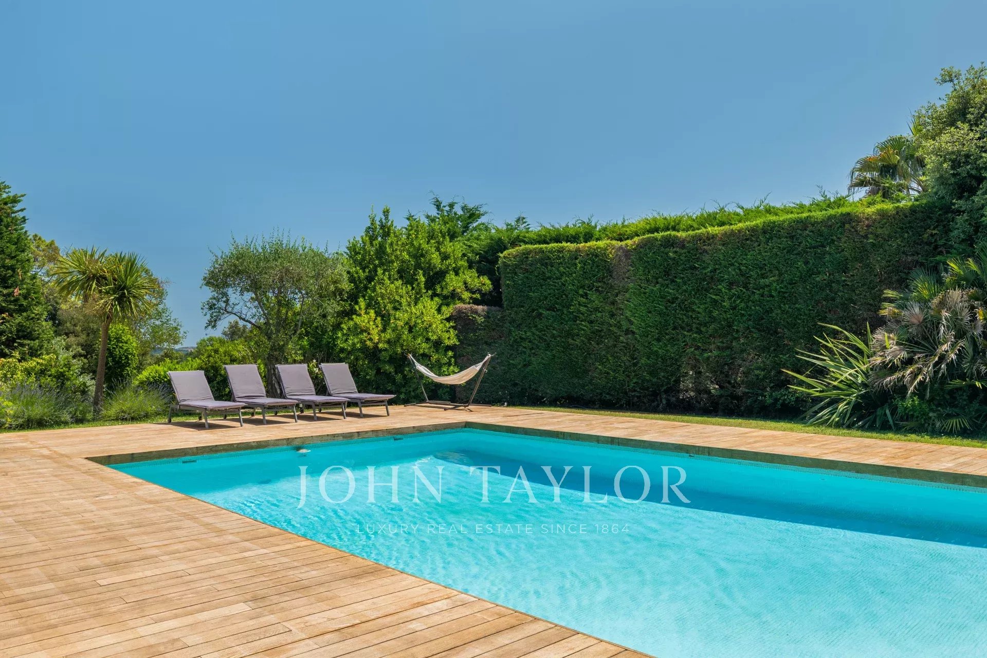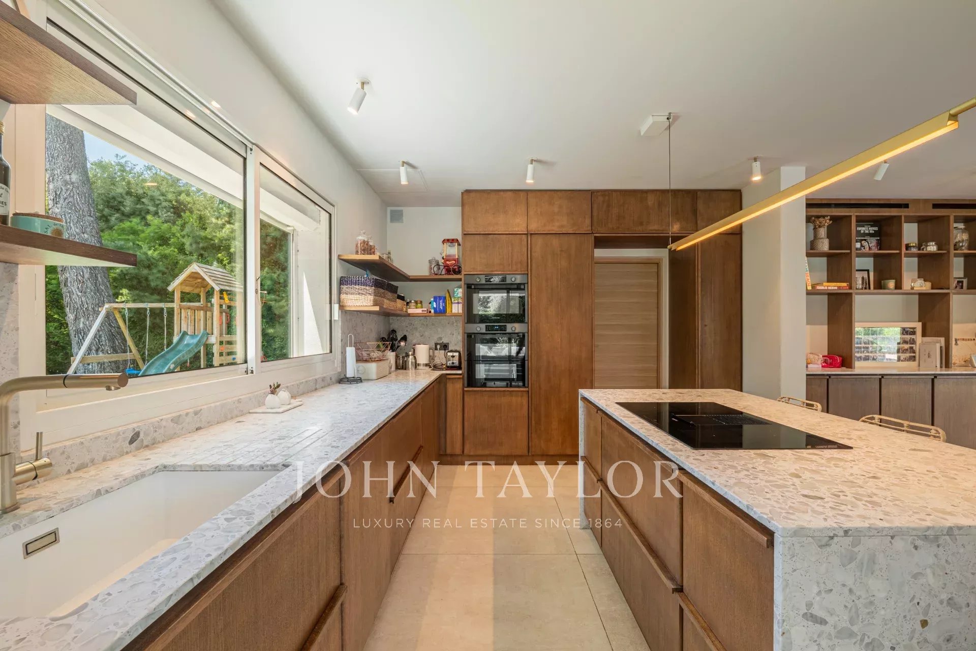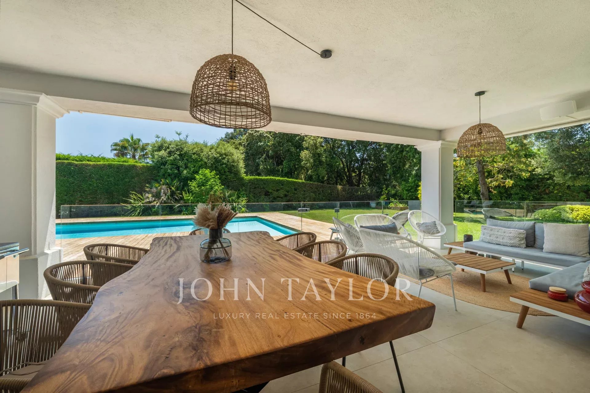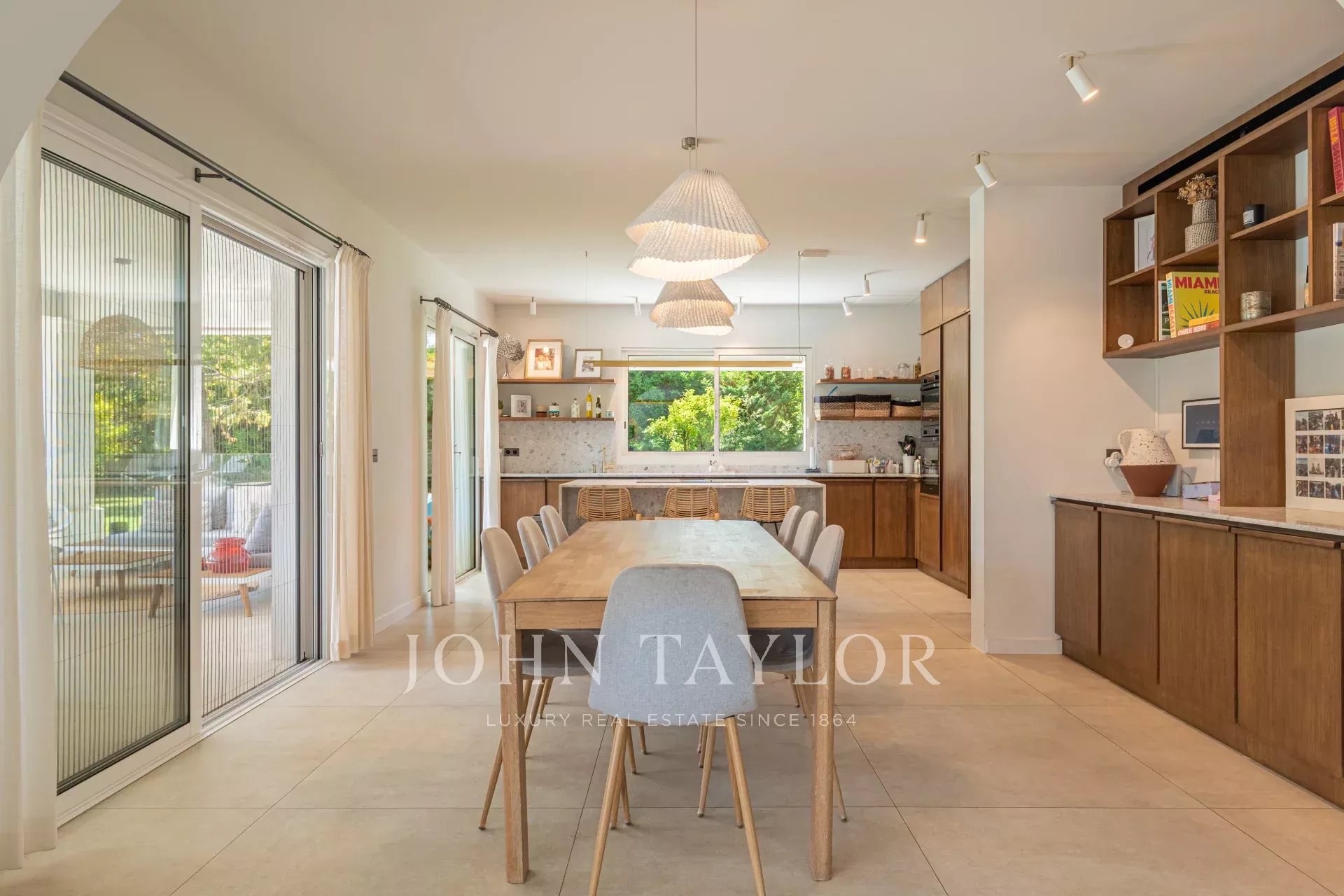 Вилла полностью отремонтирована и расположена на красивом ровном участке площадью более 2850 м². Она излучает теплую, элегантную и гостеприимную атмосферу.