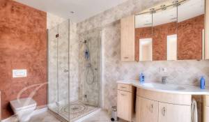 Наверху: 2 спальни с общей ванной комнатой, главная спальня с душевой комнатой и большой прилегающей террасой.