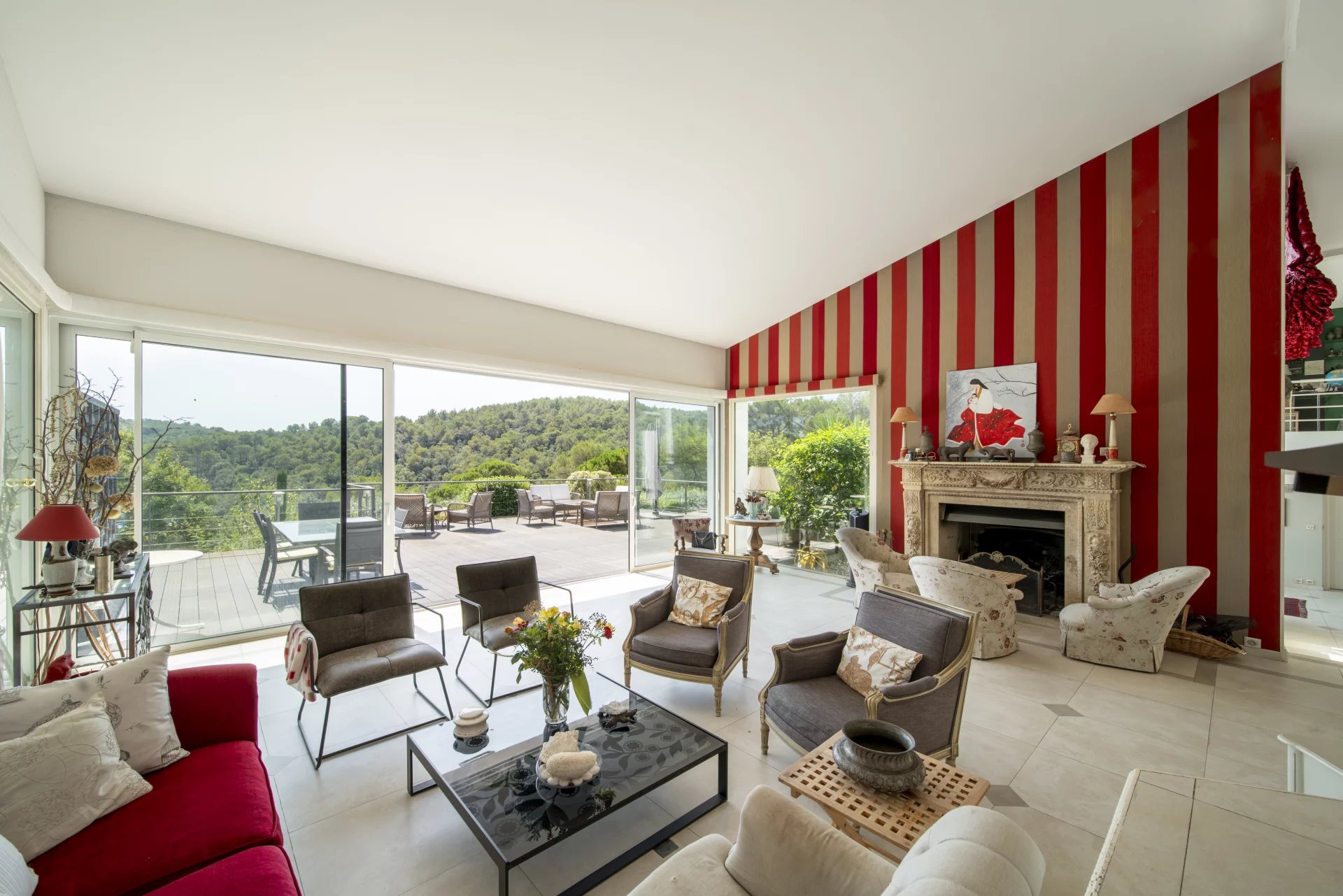 Этот исключительный архитектурный шедевр площадью 518 м², залитый естественным светом, предлагает захватывающий вид на окружающий лес в полном спокойствии. В главном доме пять просторных спален, а также дополнительная независимая квартира с одной спальней, идеально подходящая для гостей или расширенной семьи.