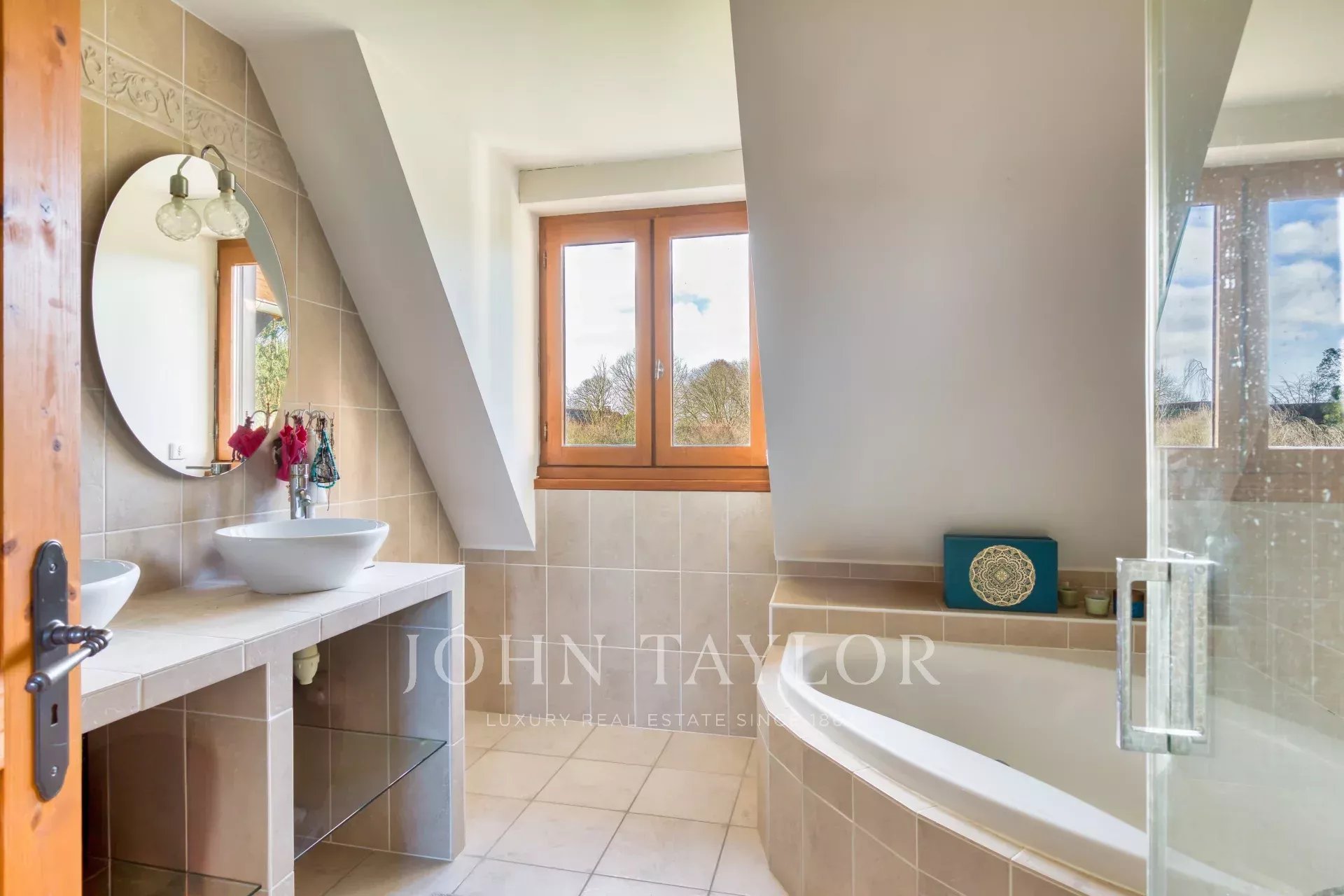 В Нормандии, в очень востребованном районе на высотах Онфлера, компания John Taylor представляет красивый дом в нормандском стиле, построенный в 2004 году на участке площадью около 9000 м2.