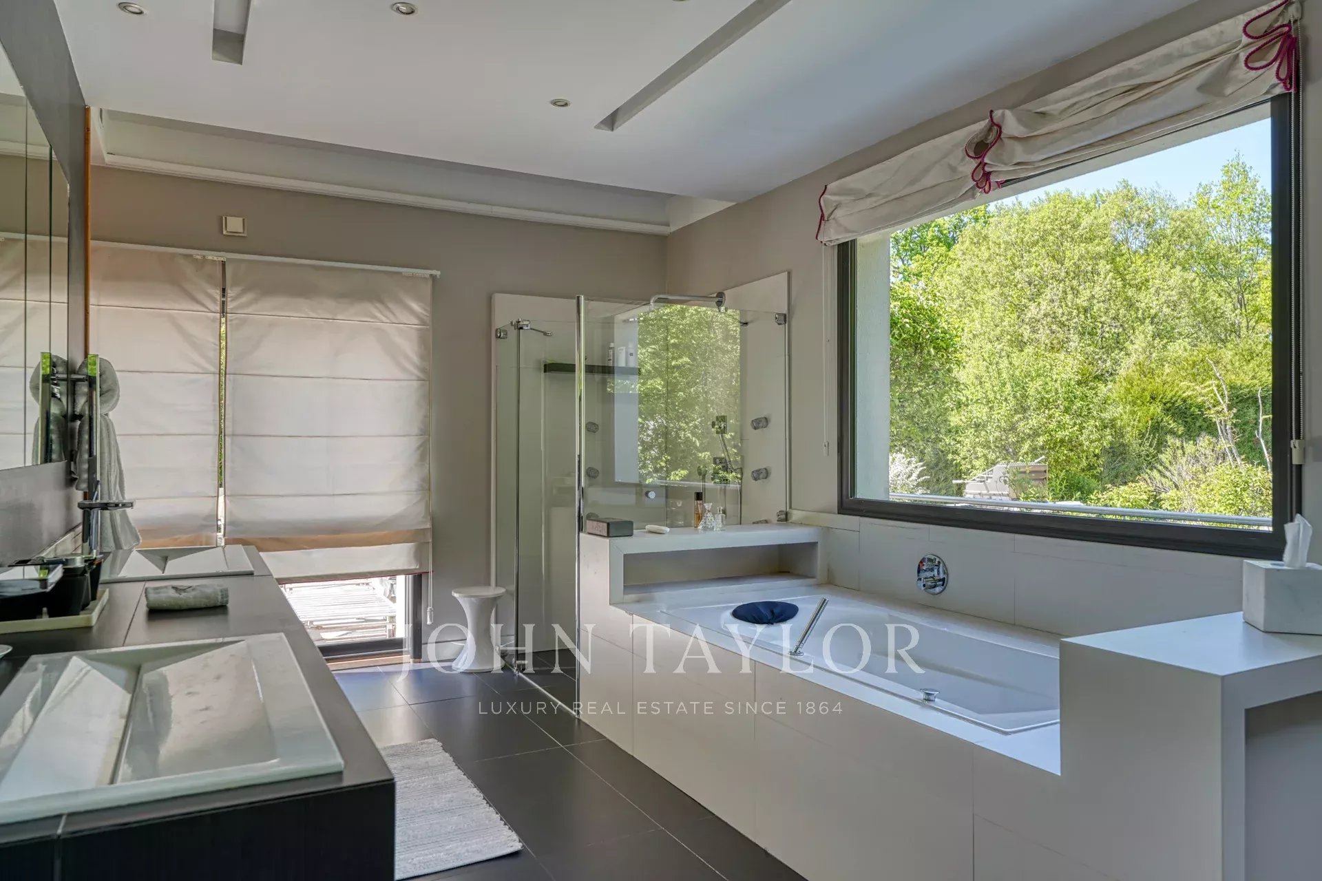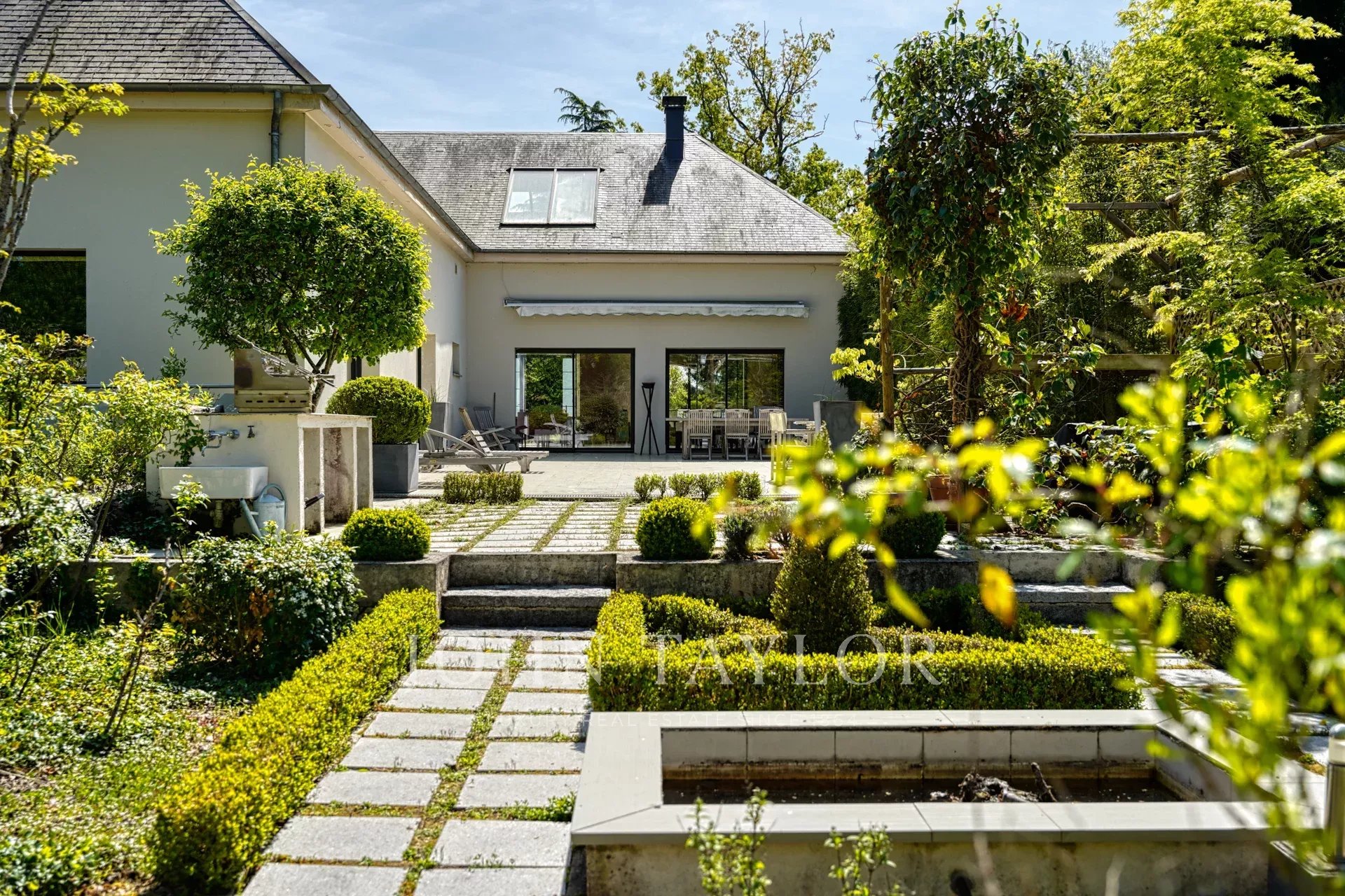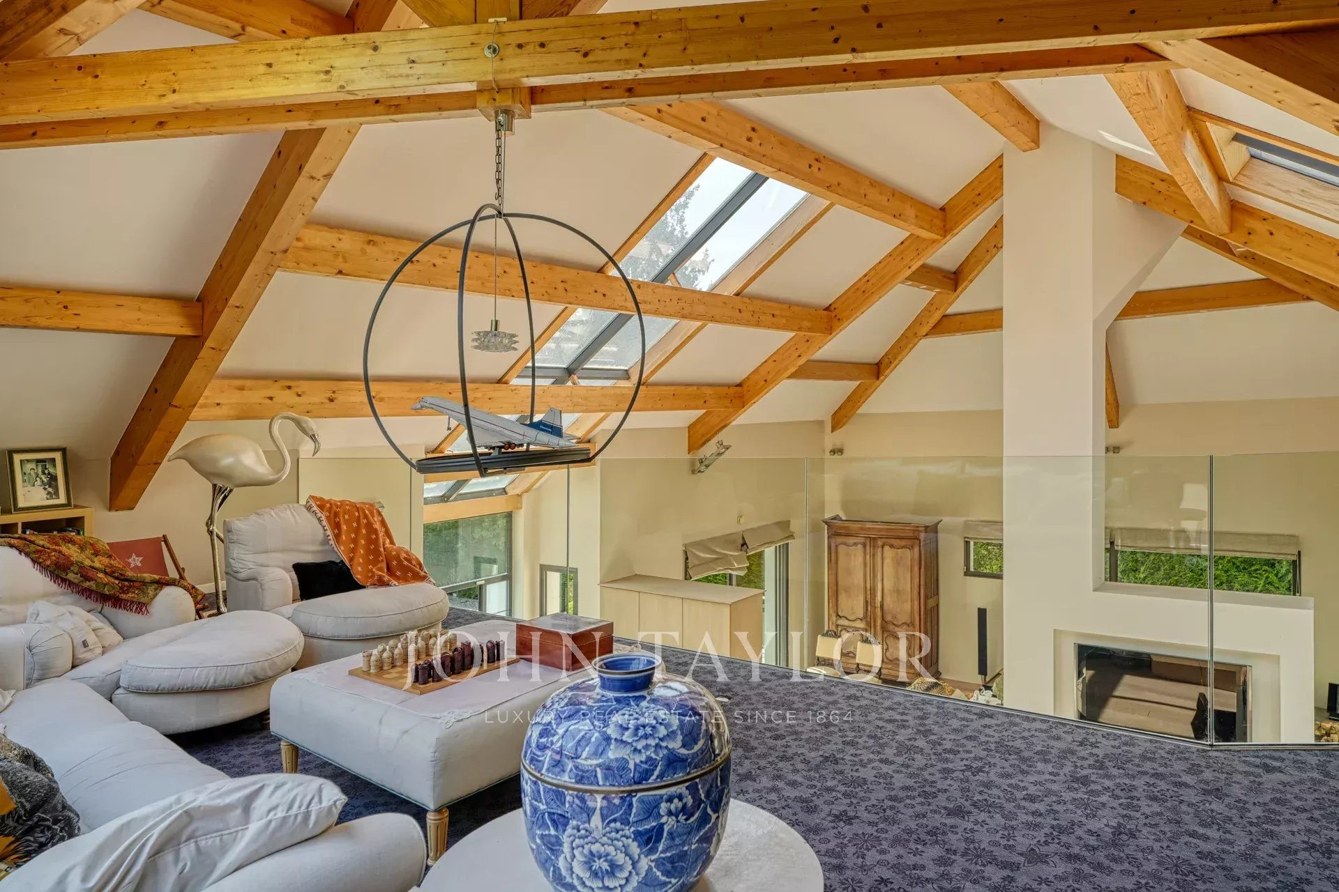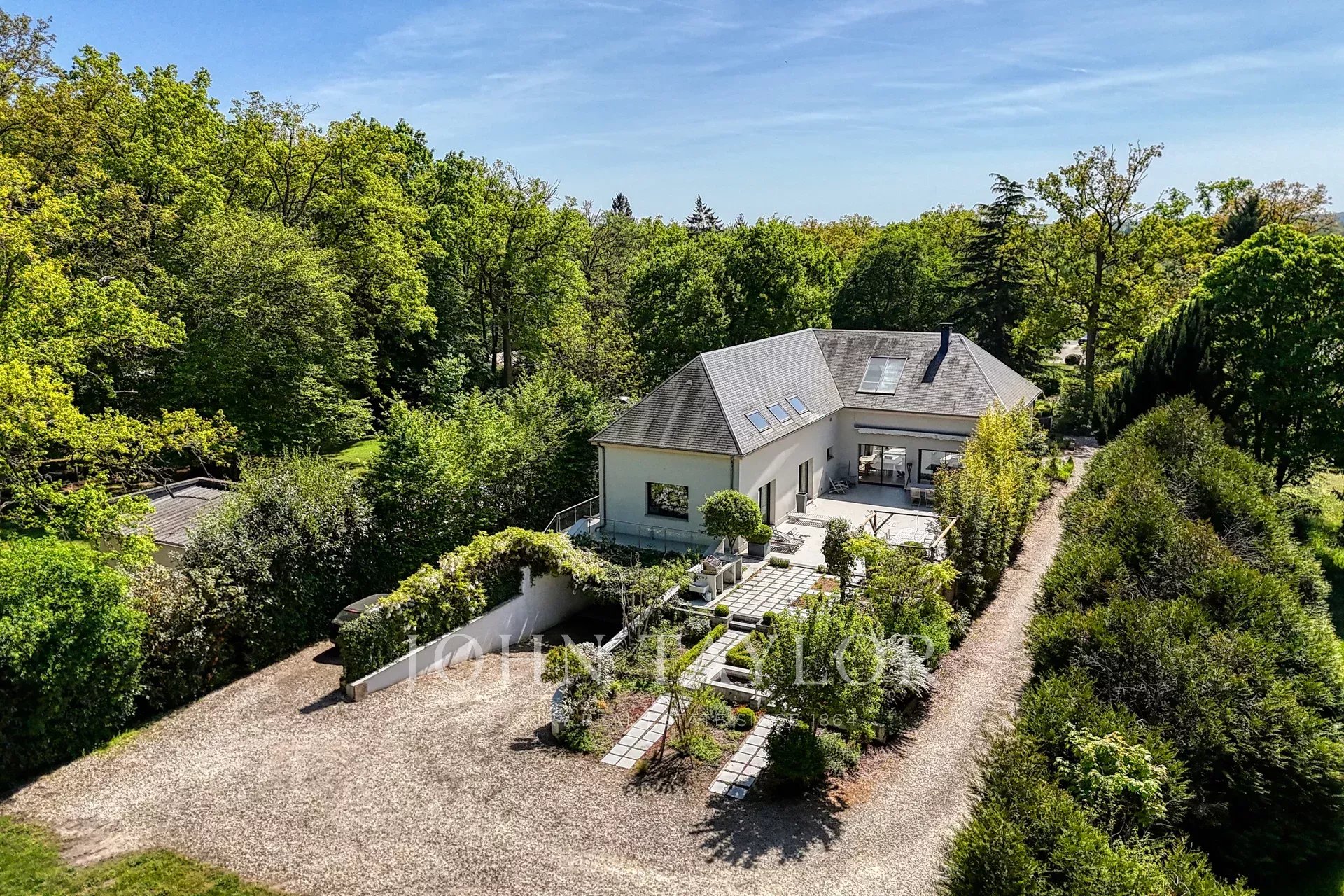 Эта элегантная современная вилла площадью 566 м² расположена в престижном и уединенном районе Ламорлее, Франция. Дом состоит из 7 просторных комнат, включая 4 светлые спальни, выполненные с использованием высококачественных материалов и современных технологий. Просторная гостиная с камином и панорамными окнами создает атмосферу уюта и открывает прекрасный вид на ухоженный сад.