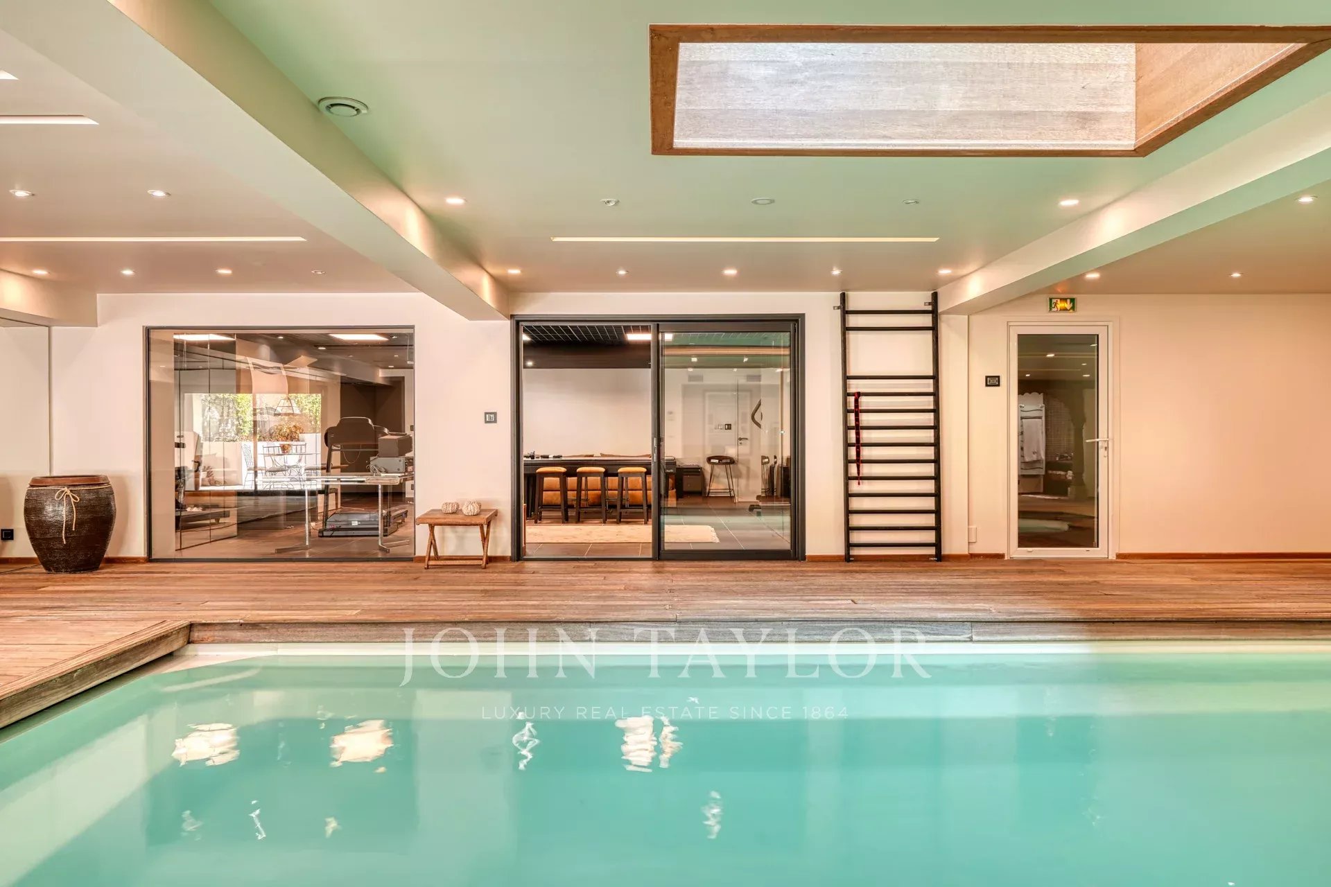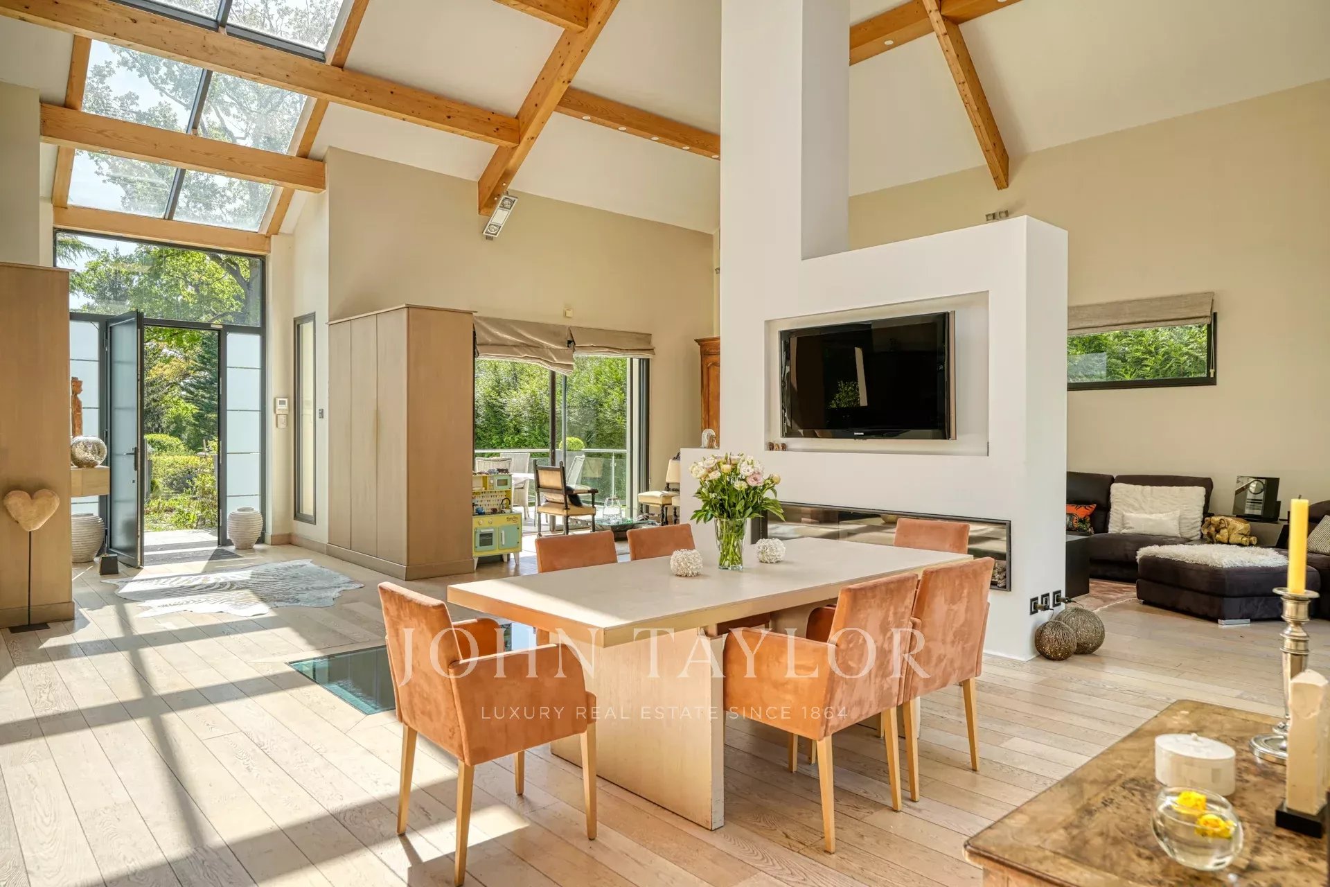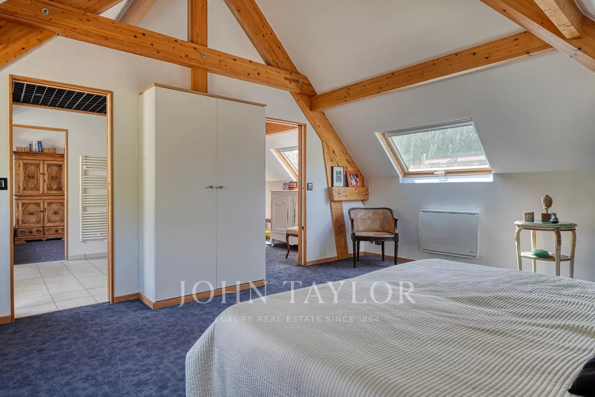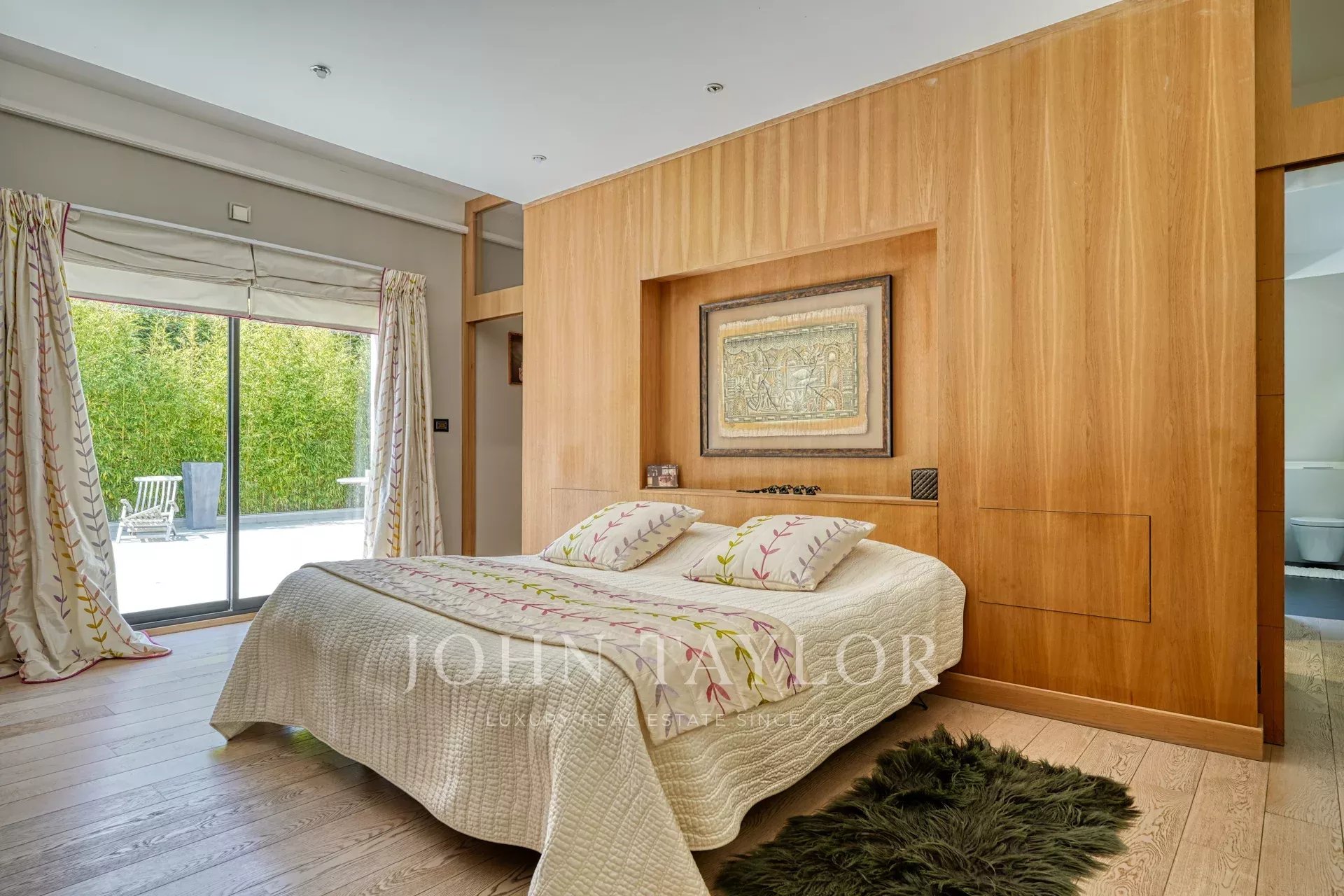 Эта элегантная современная вилла площадью 566 м² расположена в престижном и уединенном районе Ламорлее, Франция. Дом состоит из 7 просторных комнат, включая 4 светлые спальни, выполненные с использованием высококачественных материалов и современных технологий. Просторная гостиная с камином и панорамными окнами создает атмосферу уюта и открывает прекрасный вид на ухоженный сад.