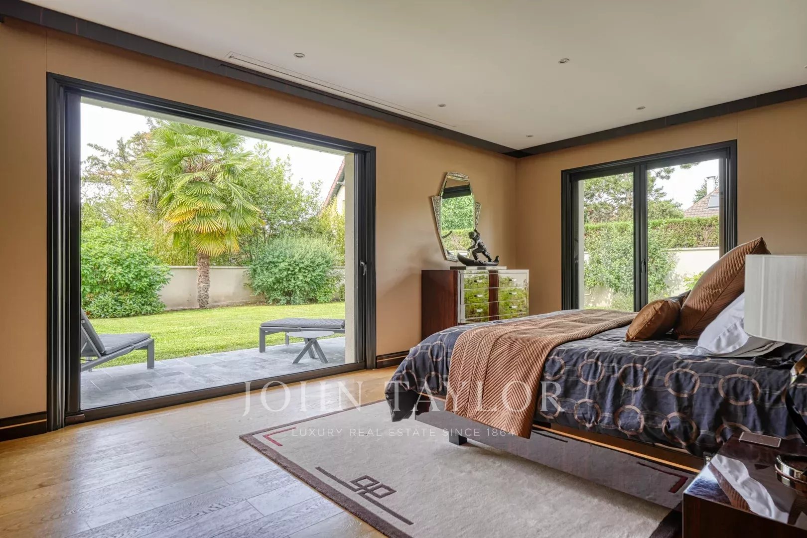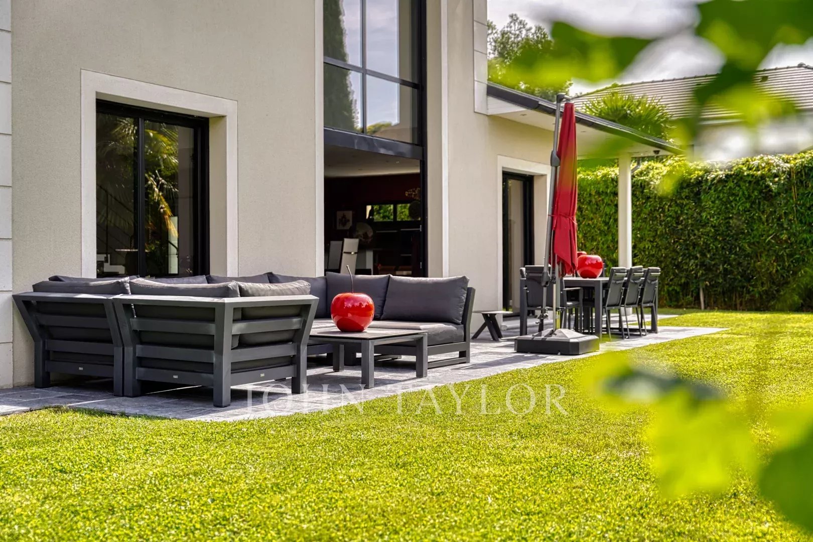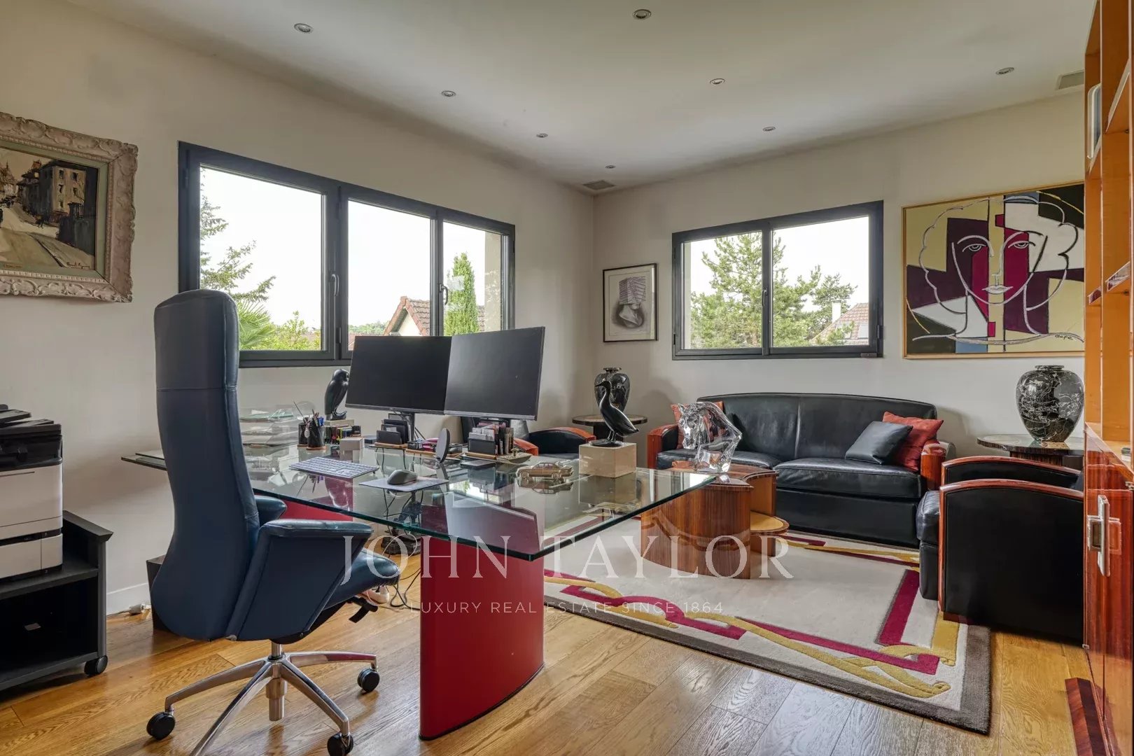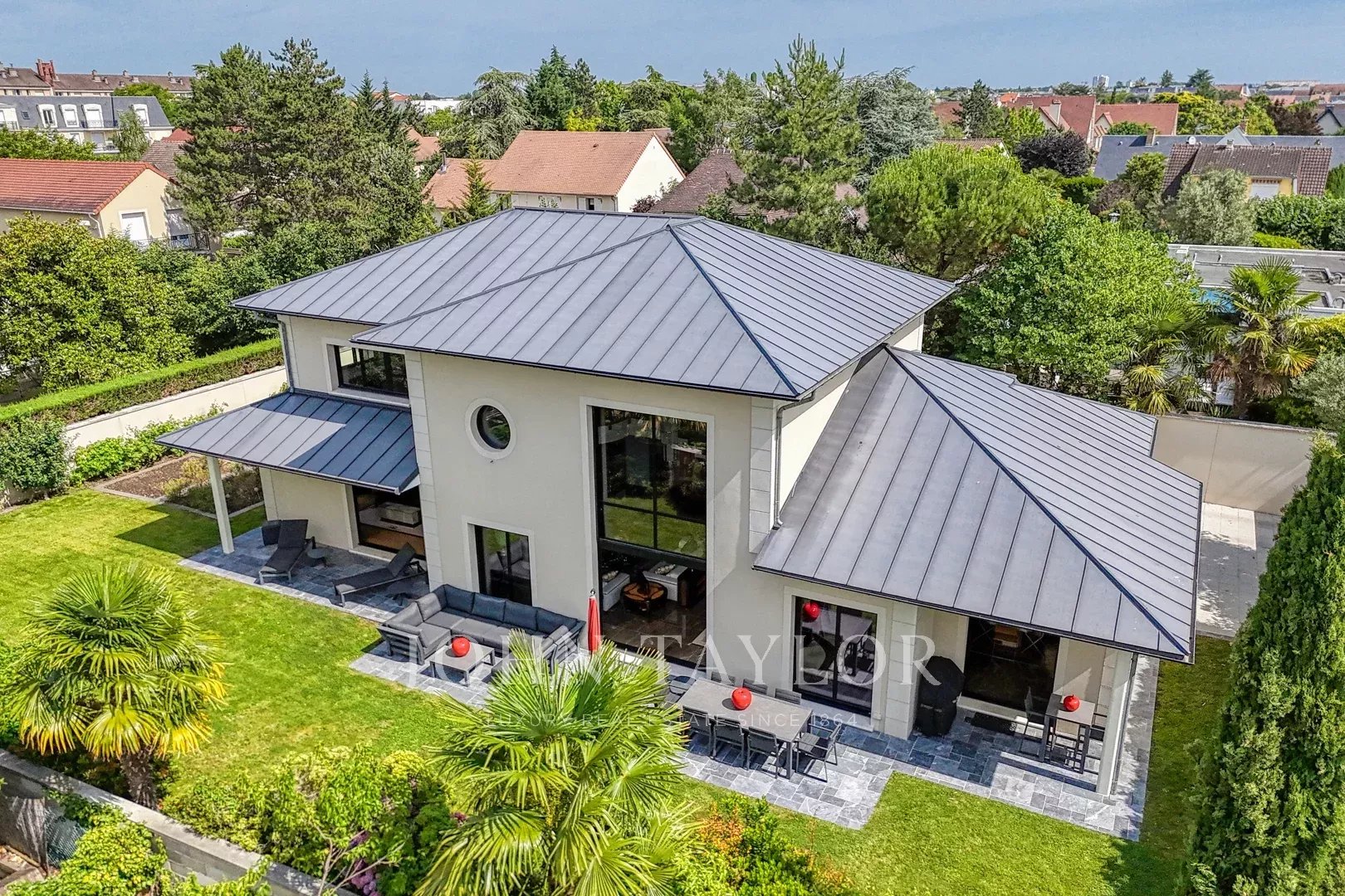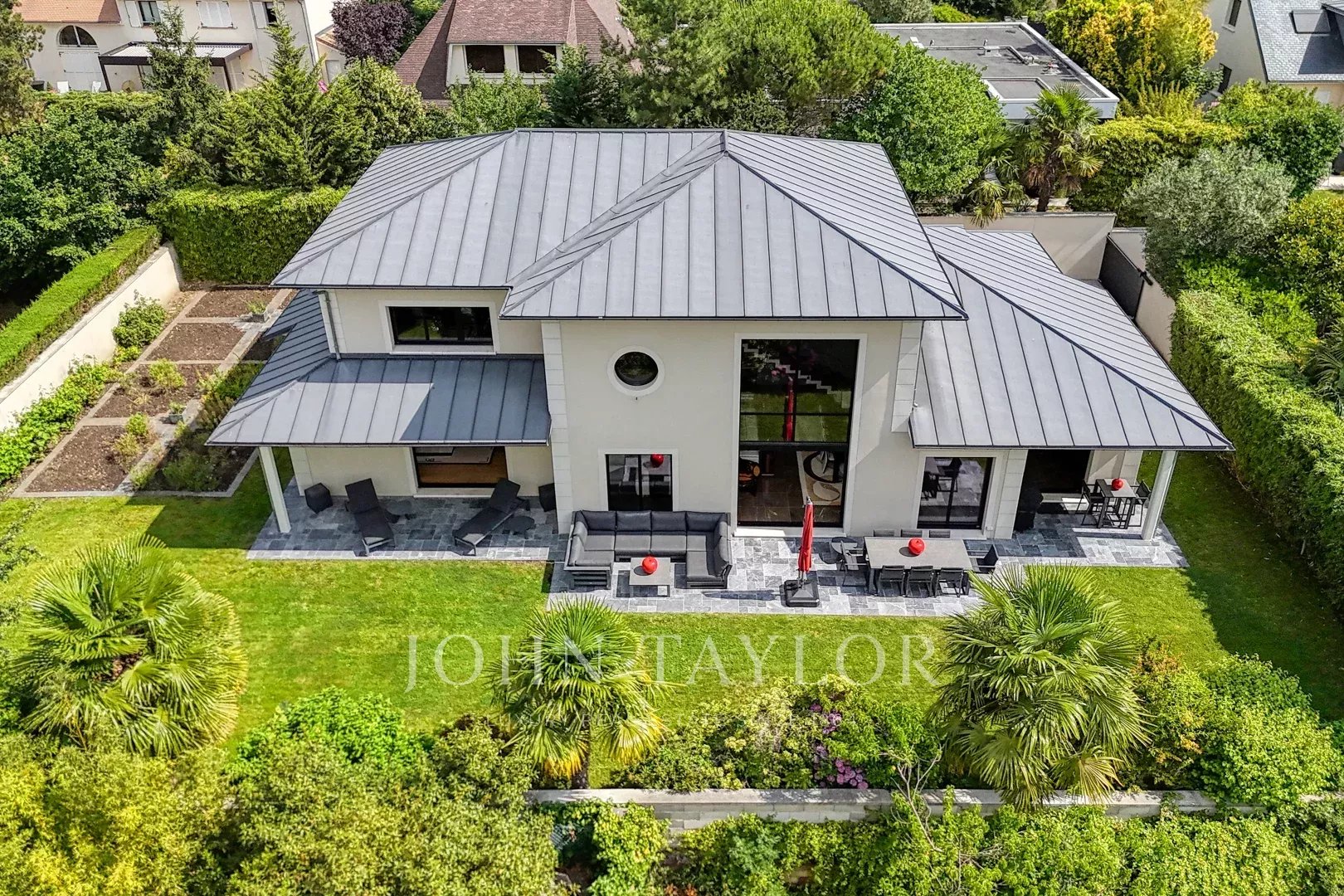 Идеально расположенный в тихом жилом районе Круасси-сюр-Сен, недалеко от Британской школы, Джон Тейлор предлагает вам великолепный современный дом, построенный в 2009 году, светлый и прекрасно экспонированный, построенный на участке площадью 984 м2.