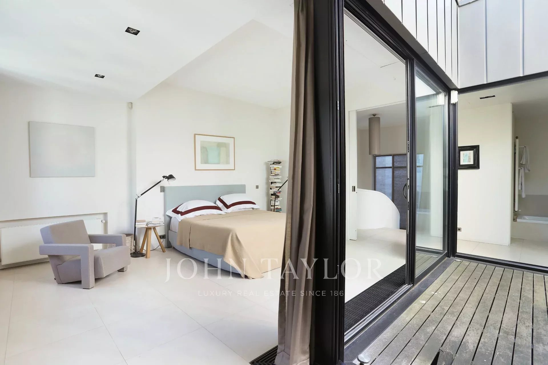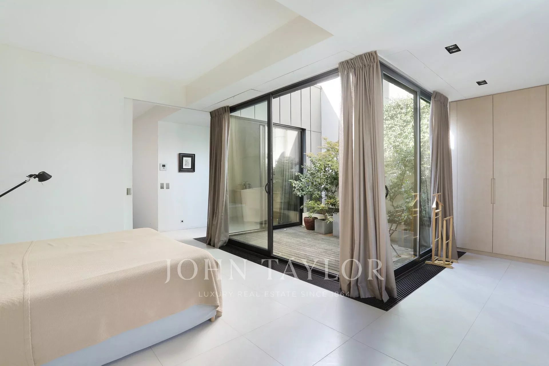- На верхнем этаже находится мастер-люкс, где царит поистине безмятежная атмосфера: зимний сад выходит на террасу с деревьями, что является редкой привилегией в самом сердце Парижа.