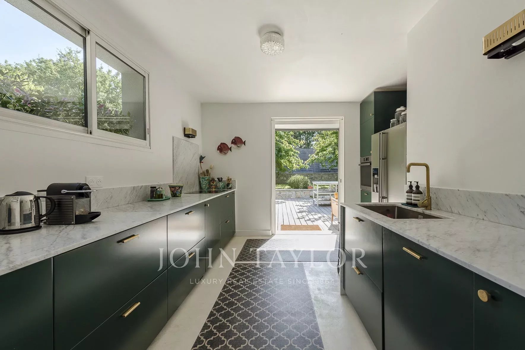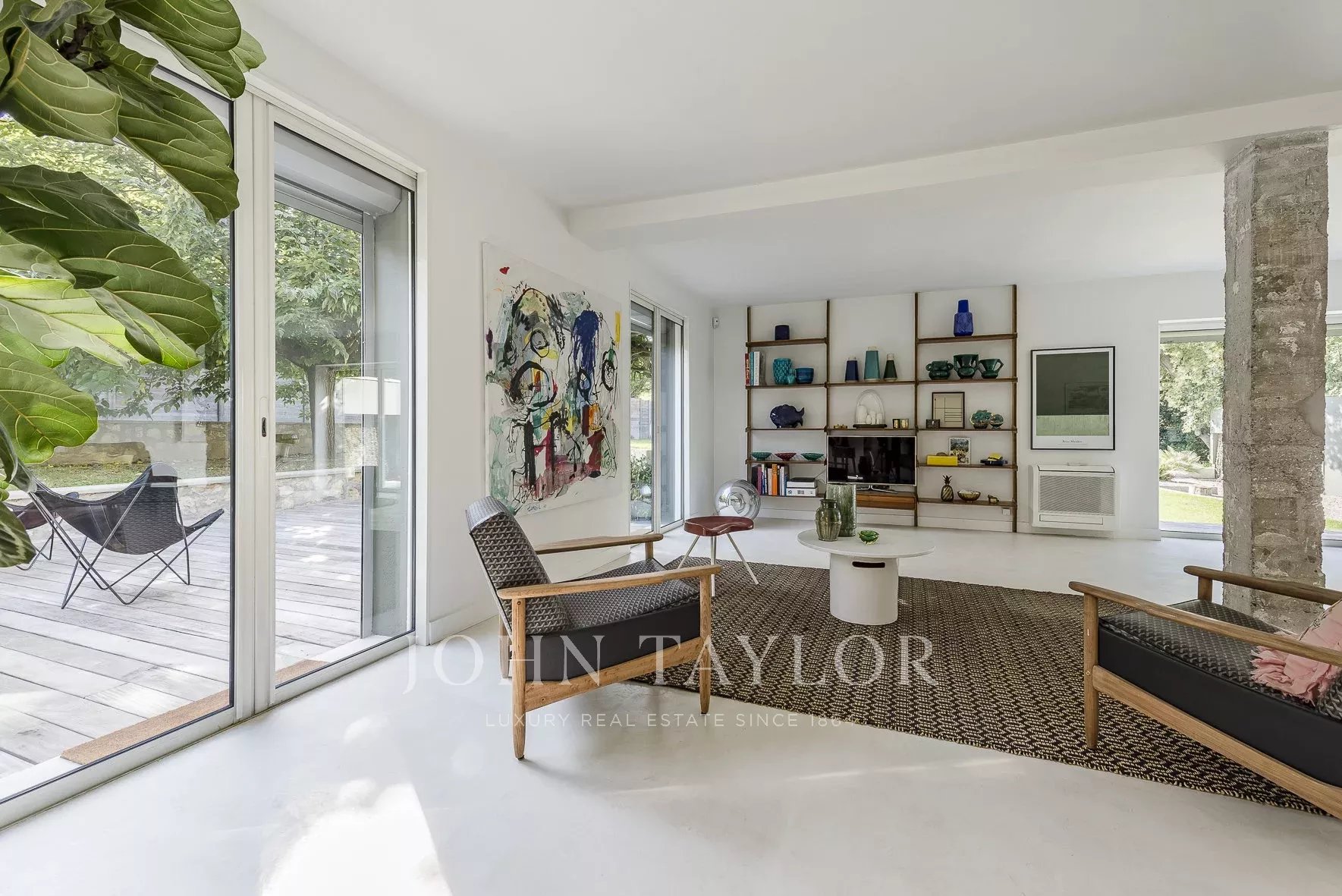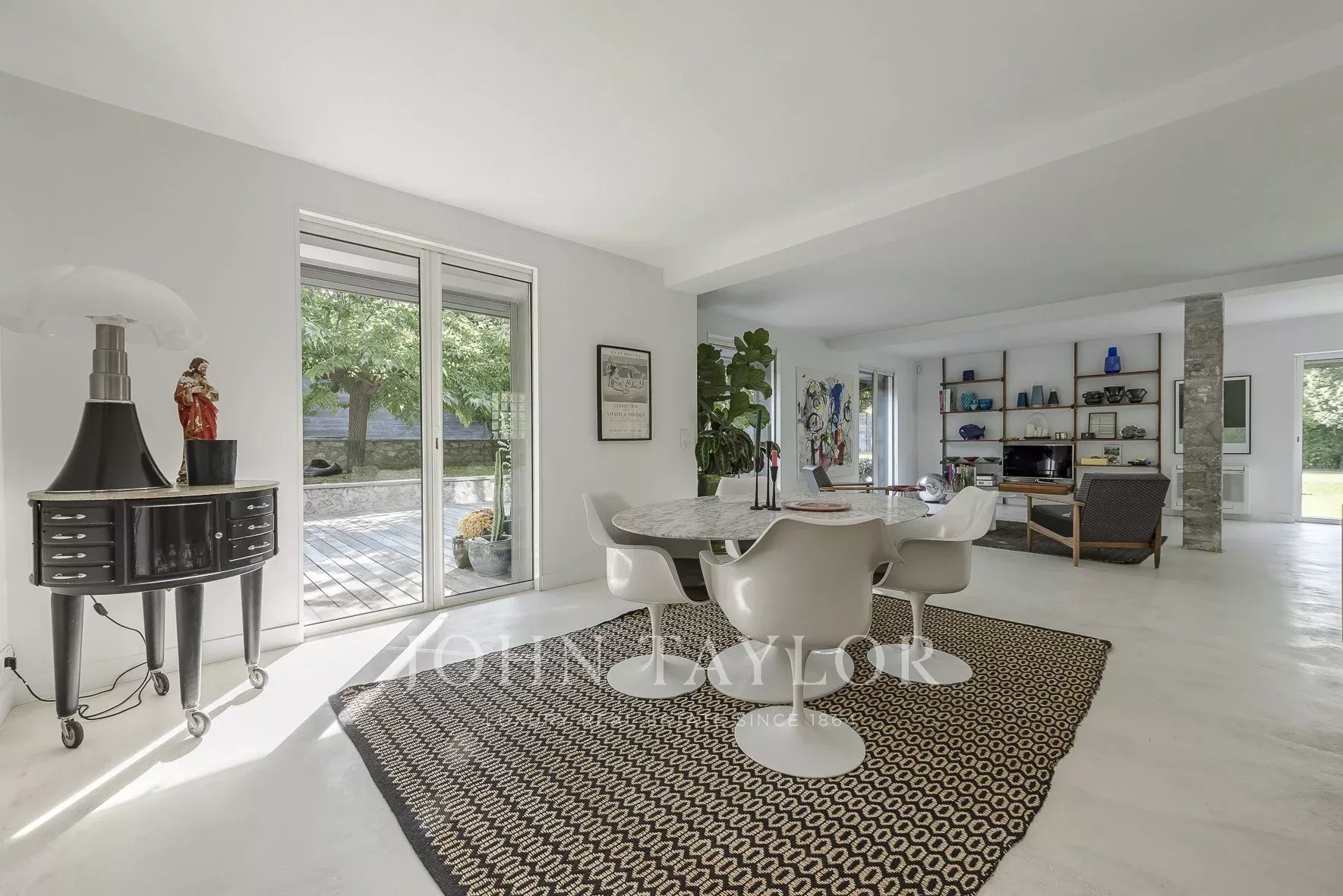 Подвал с бельевой комнатой, мансарда, которую можно переоборудовать, и флигель площадью 70 м² с офисом, студией и тренажерным залом завершают этот исключительный особняк.