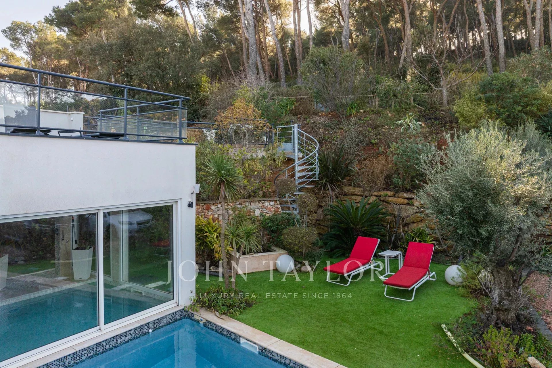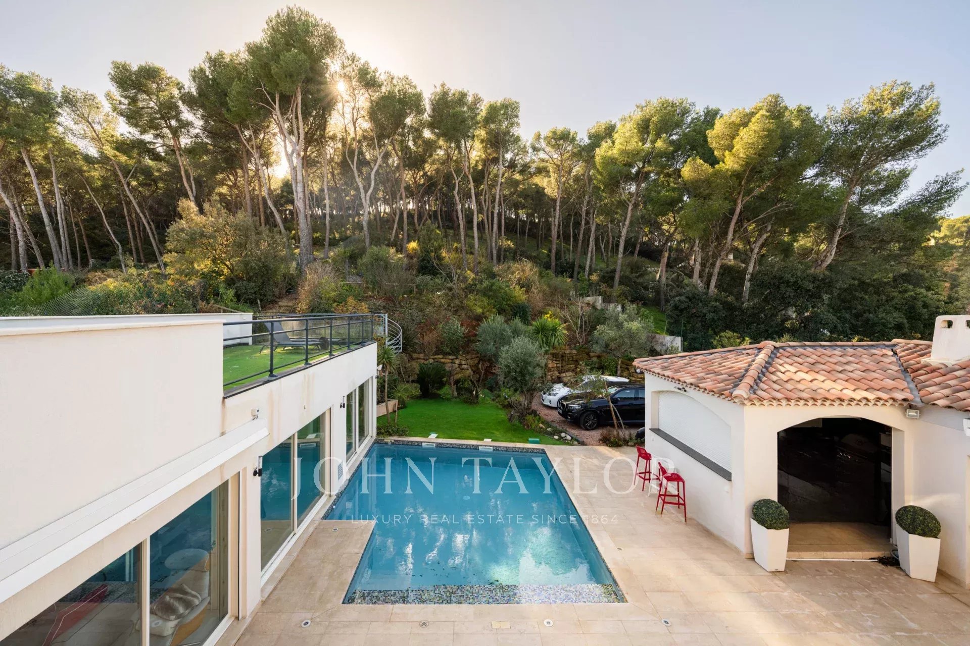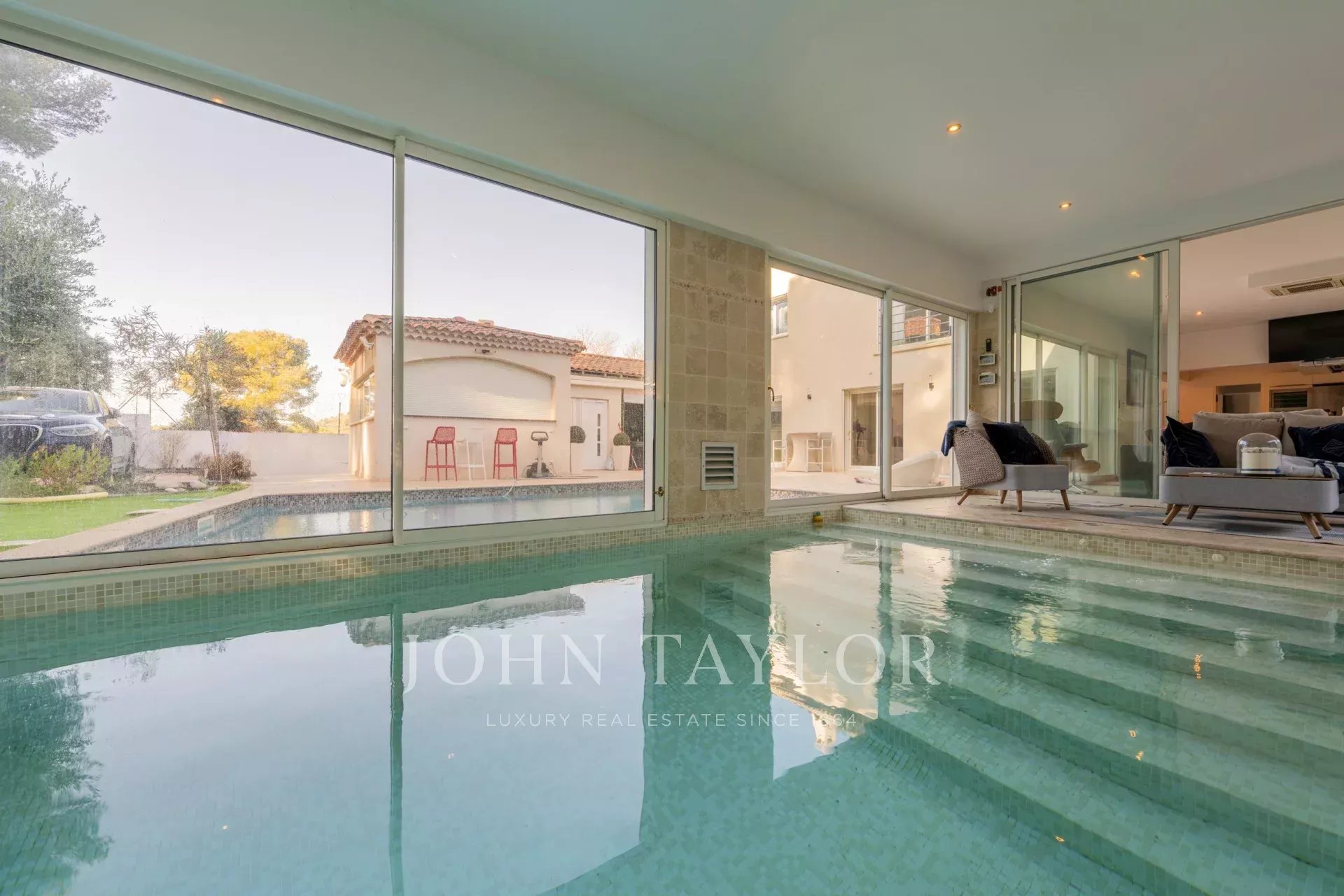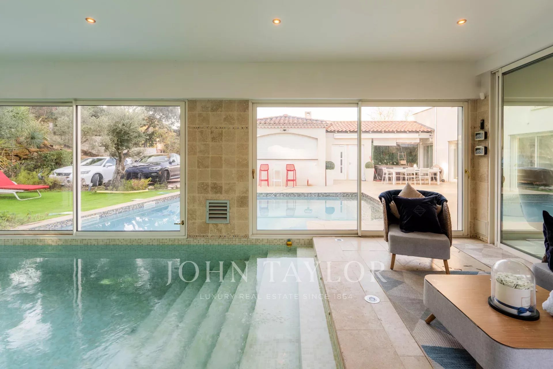 Расположенный на территории площадью 2 000 м² с ландшафтным дизайном, этот дом предлагает исключительный стиль жизни, дополненный двумя бассейнами с подогревом - крытым и открытым - и оздоровительной зоной со спа. Домик у бассейна, полностью оборудованный летней кухней, душем и туалетом, а также площадка для игры в петанк приглашают вас расслабиться и насладиться общением.