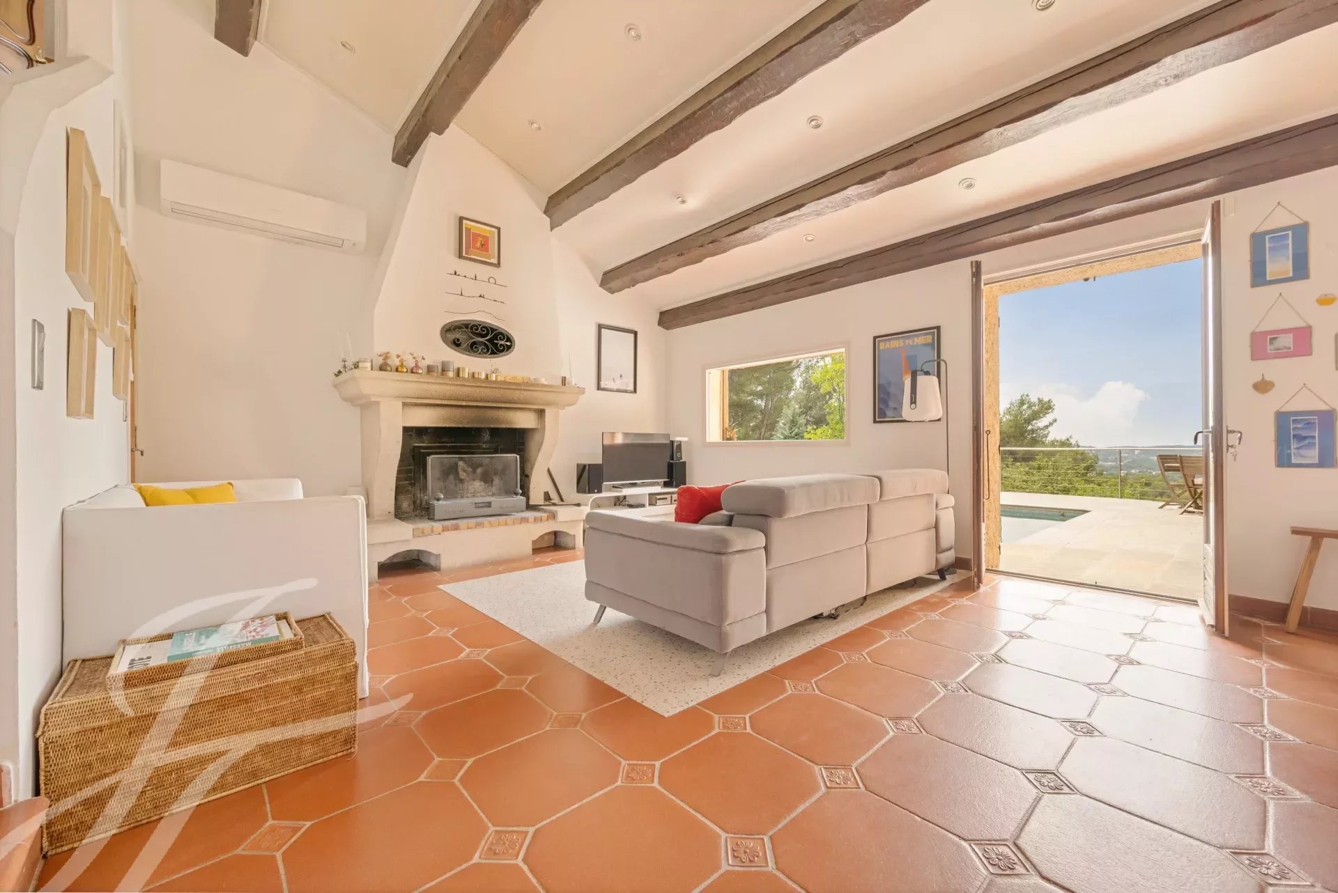 Исключительное природное окружение участка дополняется множеством открытых площадок, включая большую террасу, бассейн с подвижным дном и домиком для бассейна, теннисный корт, площадку для игры в петанк, огород и фруктовый сад.