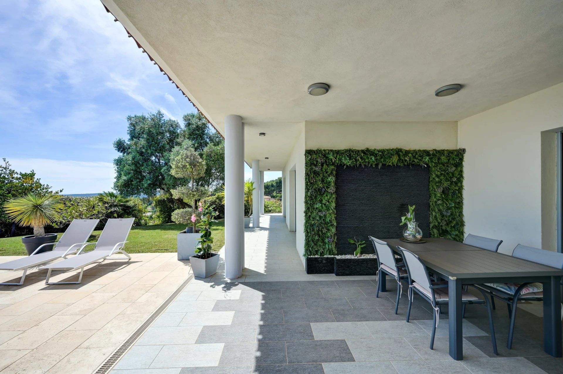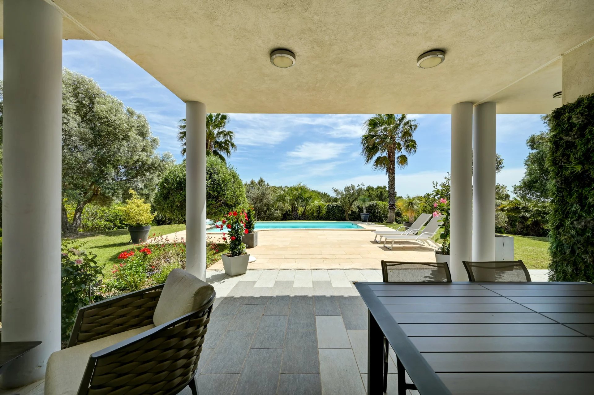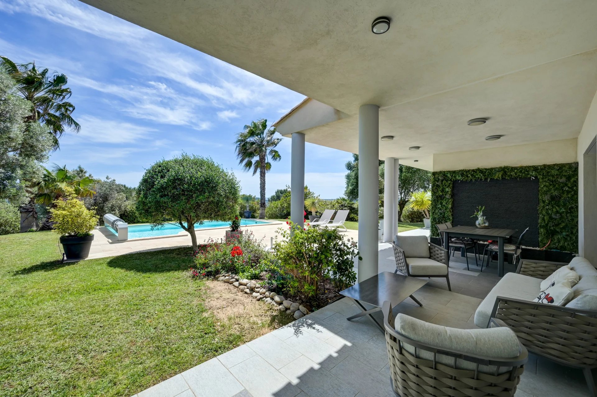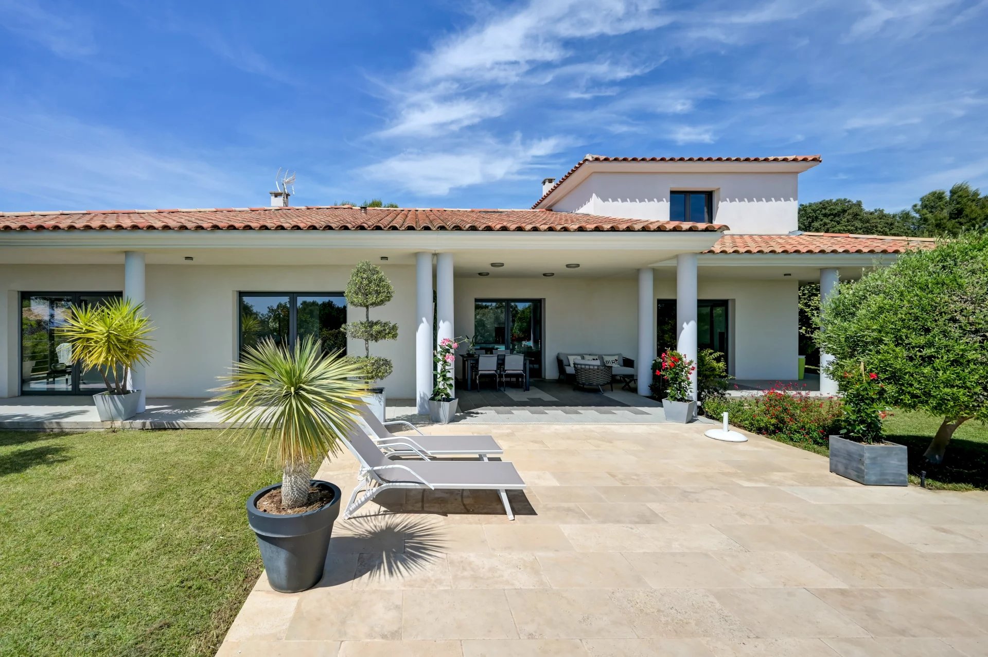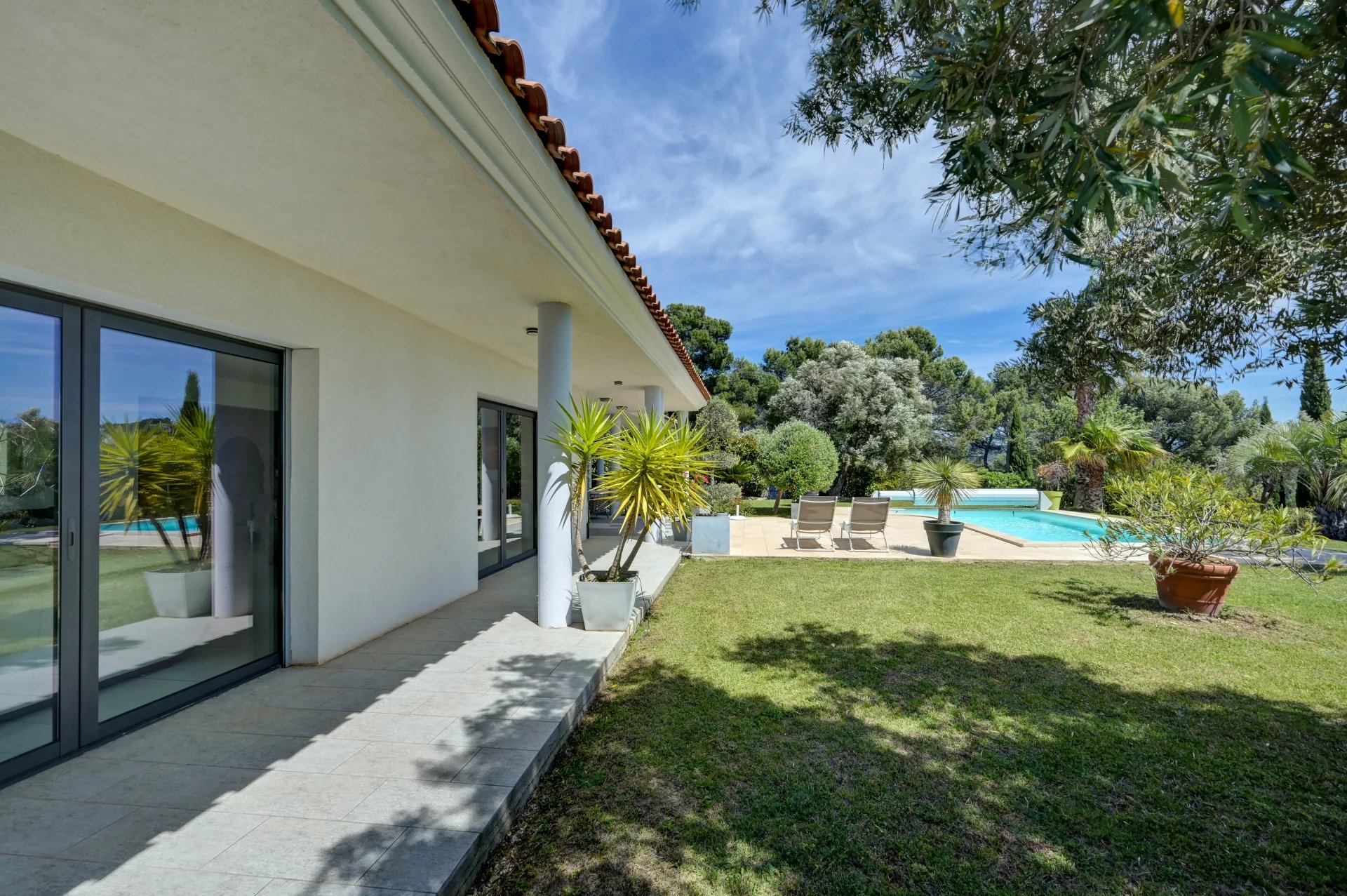 Этот дом площадью 280 м², расположенный на территории площадью 2 000 м² с ландшафтным дизайном, может похвастаться элегантной архитектурой, просторными объемами и первоклассным оснащением. На одном уровне с главной виллой расположена просторная, наполненная светом гостиная с большими картинными окнами, выходящими на террасу, в сад и к бассейну. Полностью оборудованная кухня открытой планировки гармонично вписывается в это пространство.