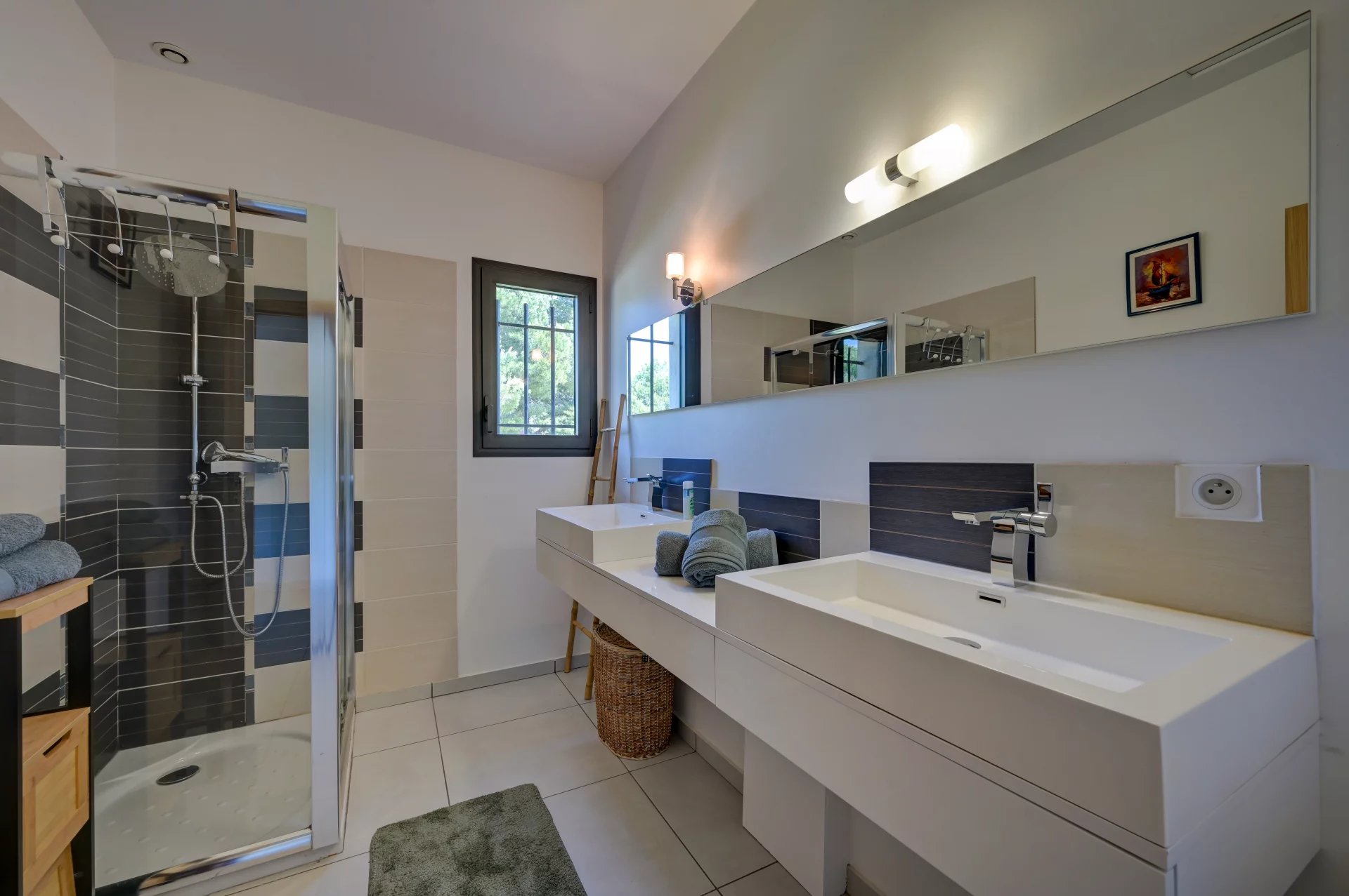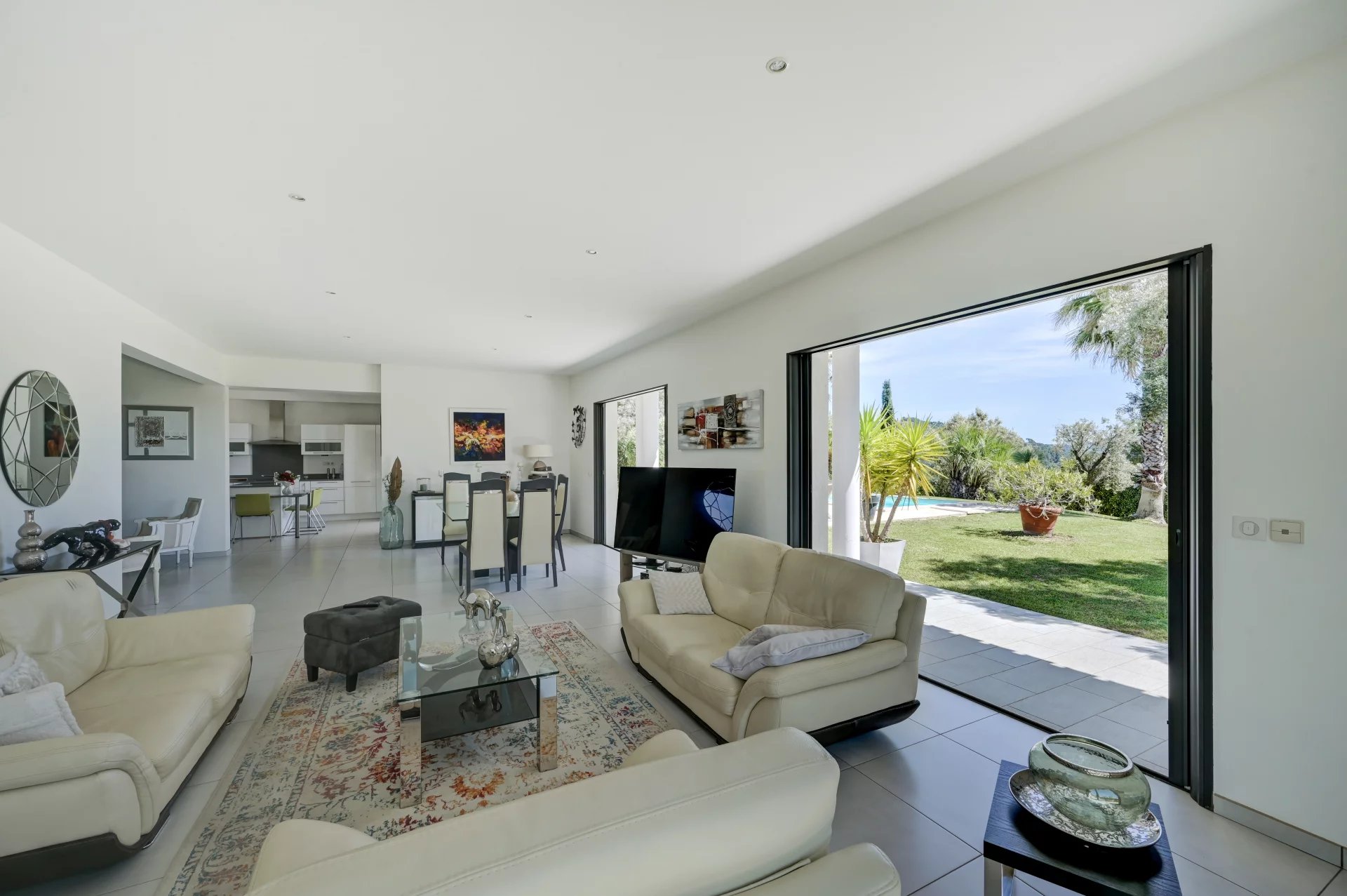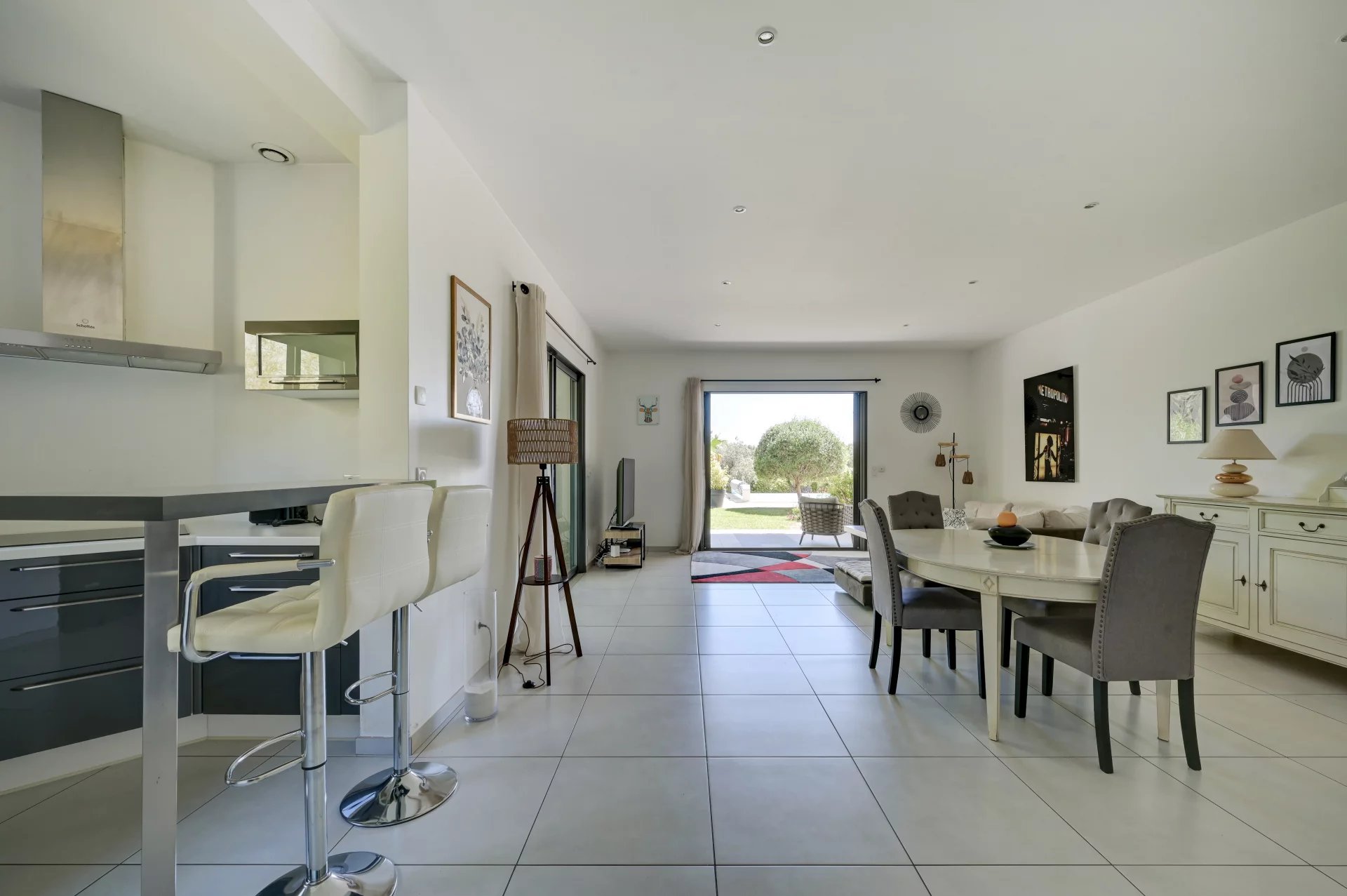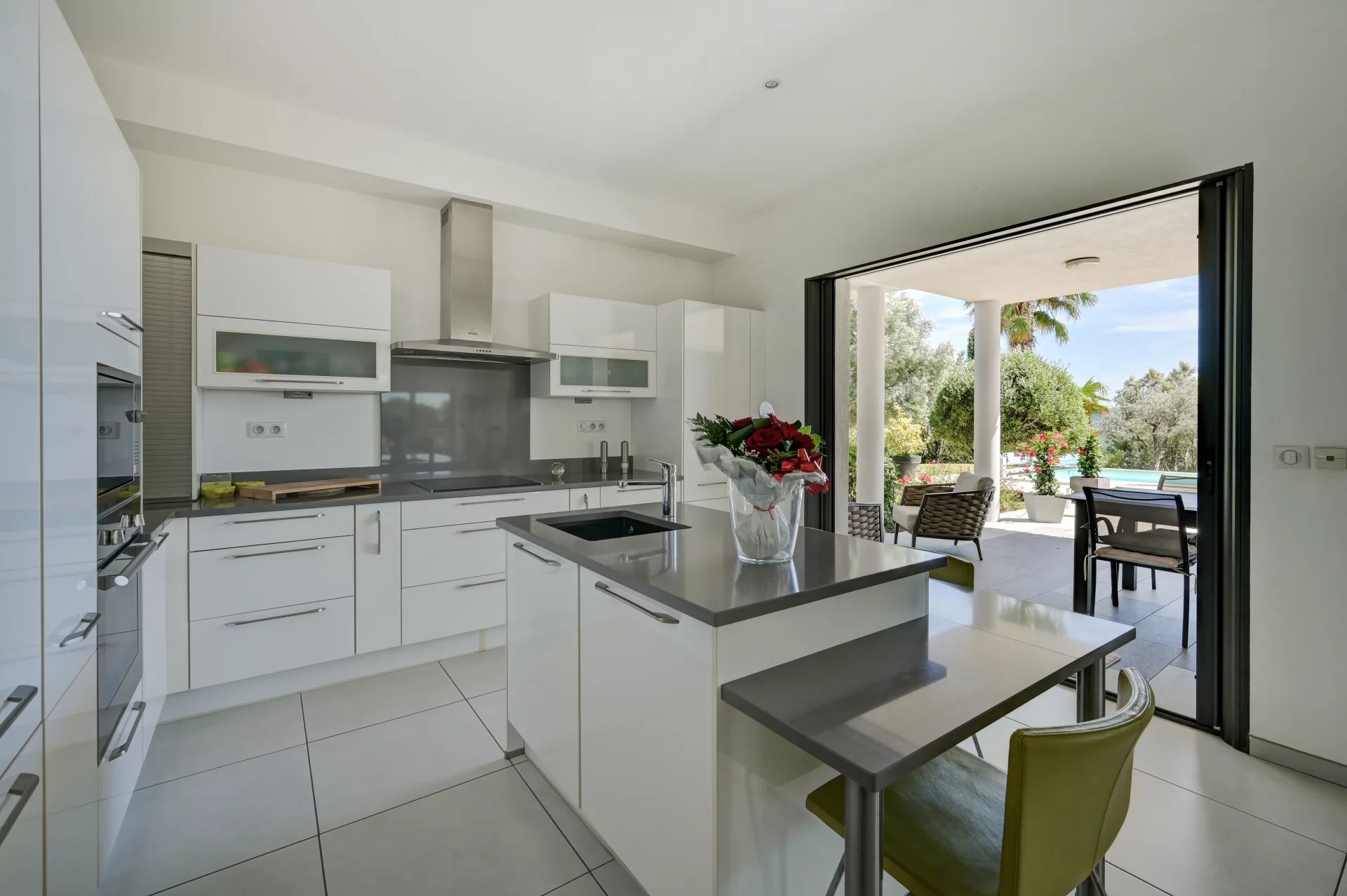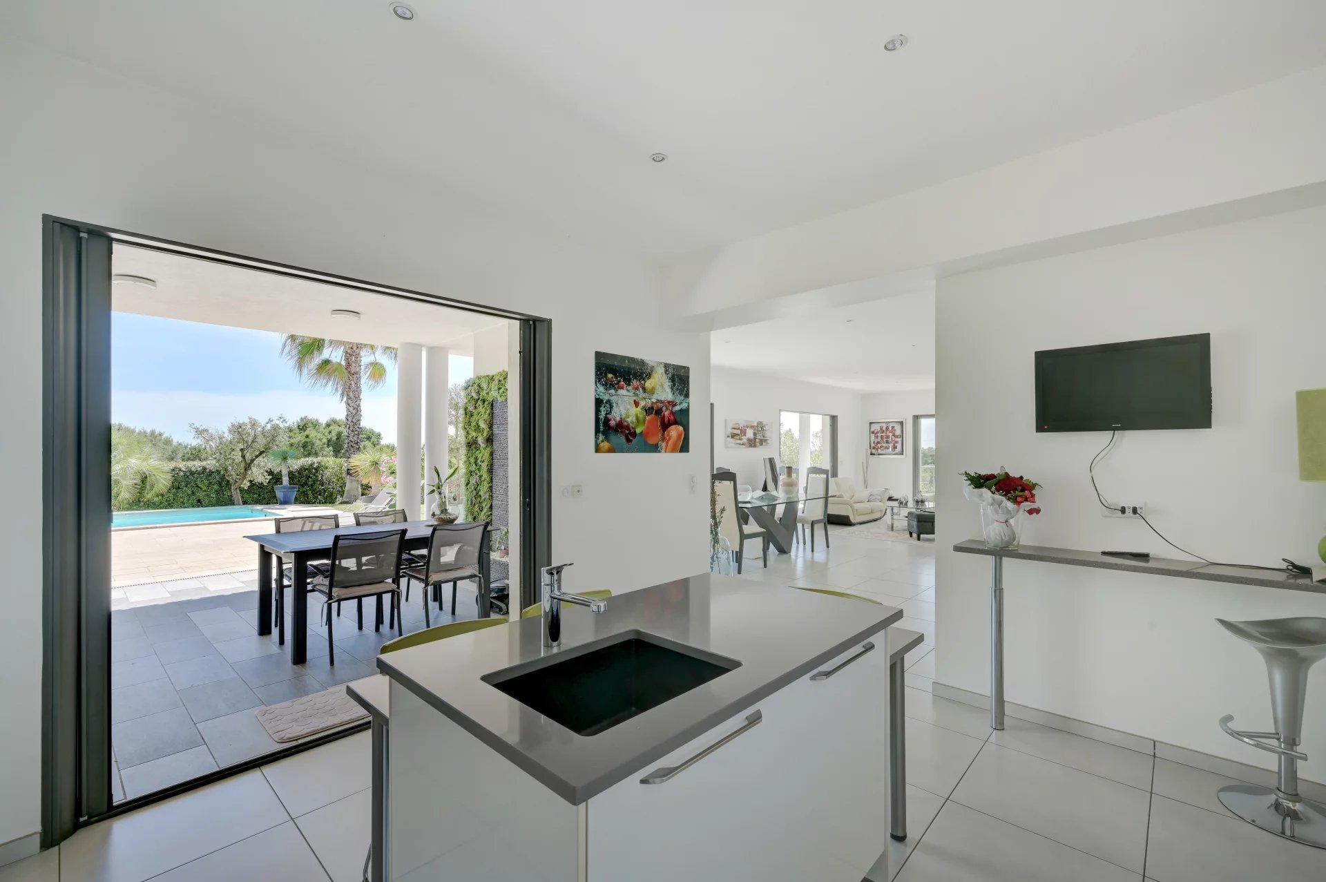 Этот дом площадью 280 м², расположенный на территории площадью 2 000 м² с ландшафтным дизайном, может похвастаться элегантной архитектурой, просторными объемами и первоклассным оснащением. На одном уровне с главной виллой расположена просторная, наполненная светом гостиная с большими картинными окнами, выходящими на террасу, в сад и к бассейну. Полностью оборудованная кухня открытой планировки гармонично вписывается в это пространство.