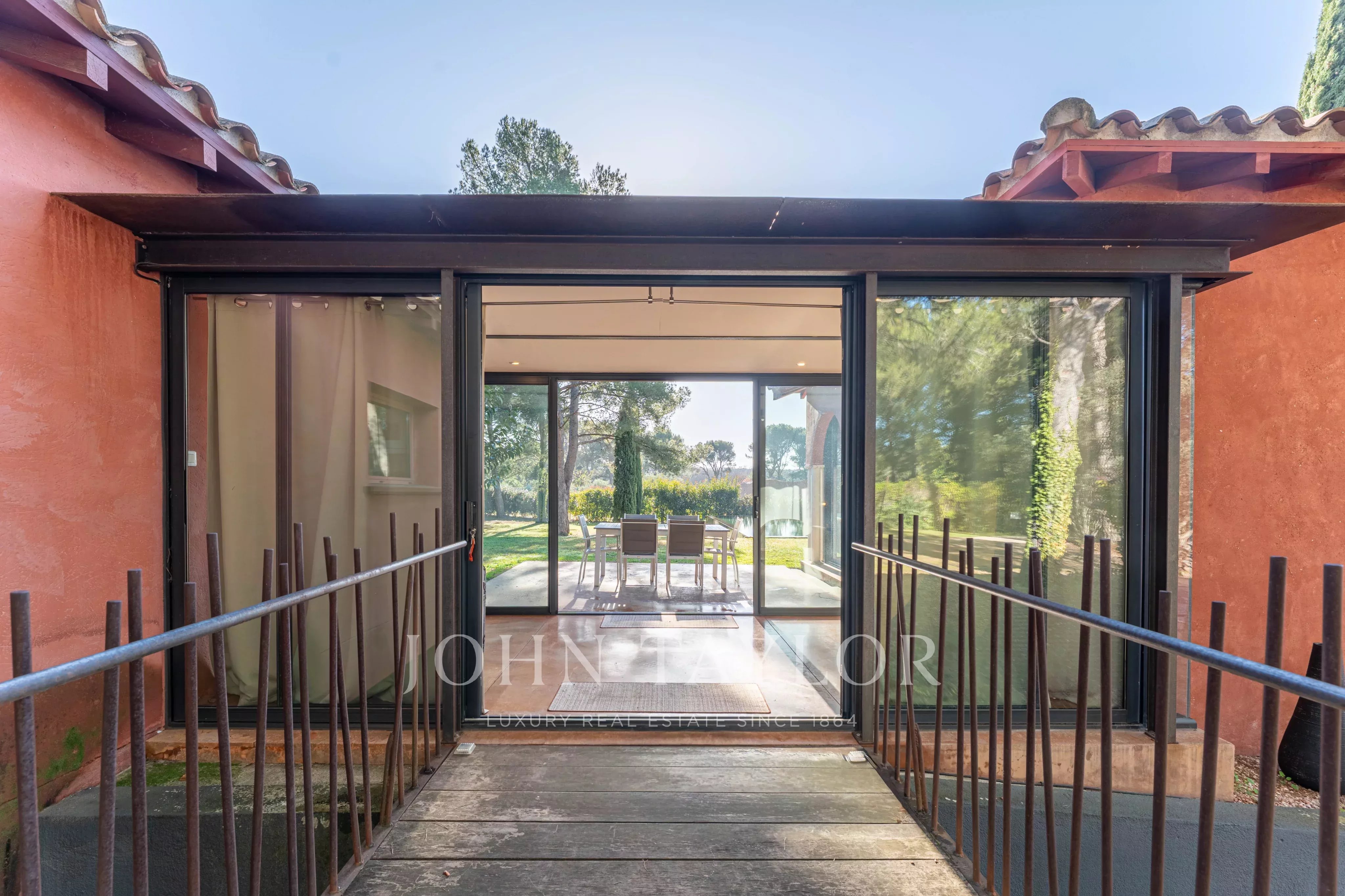 Снаружи, в саду с тщательным ландшафтным дизайном, расположен роскошный бассейн 12 x 7 м. Это настоящее приглашение к отдыху и общению в спокойной, лиственной обстановке.