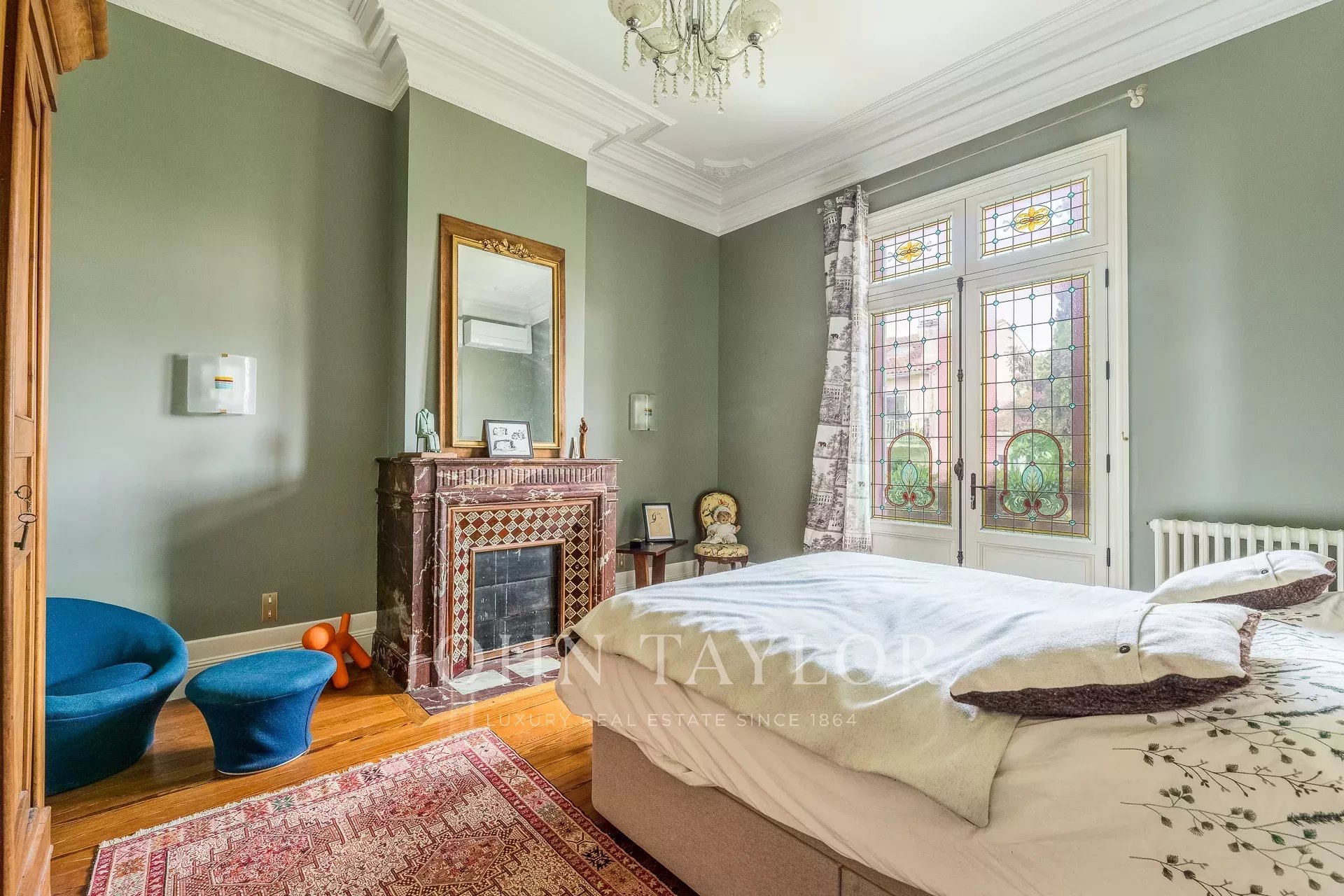 Богатая старинными элементами - паркетными полами из массива дерева, мраморными каминами, лепниной и большой высотой потолков - эта резиденция гармонично сочетает в себе очарование прошлого и современный комфорт.