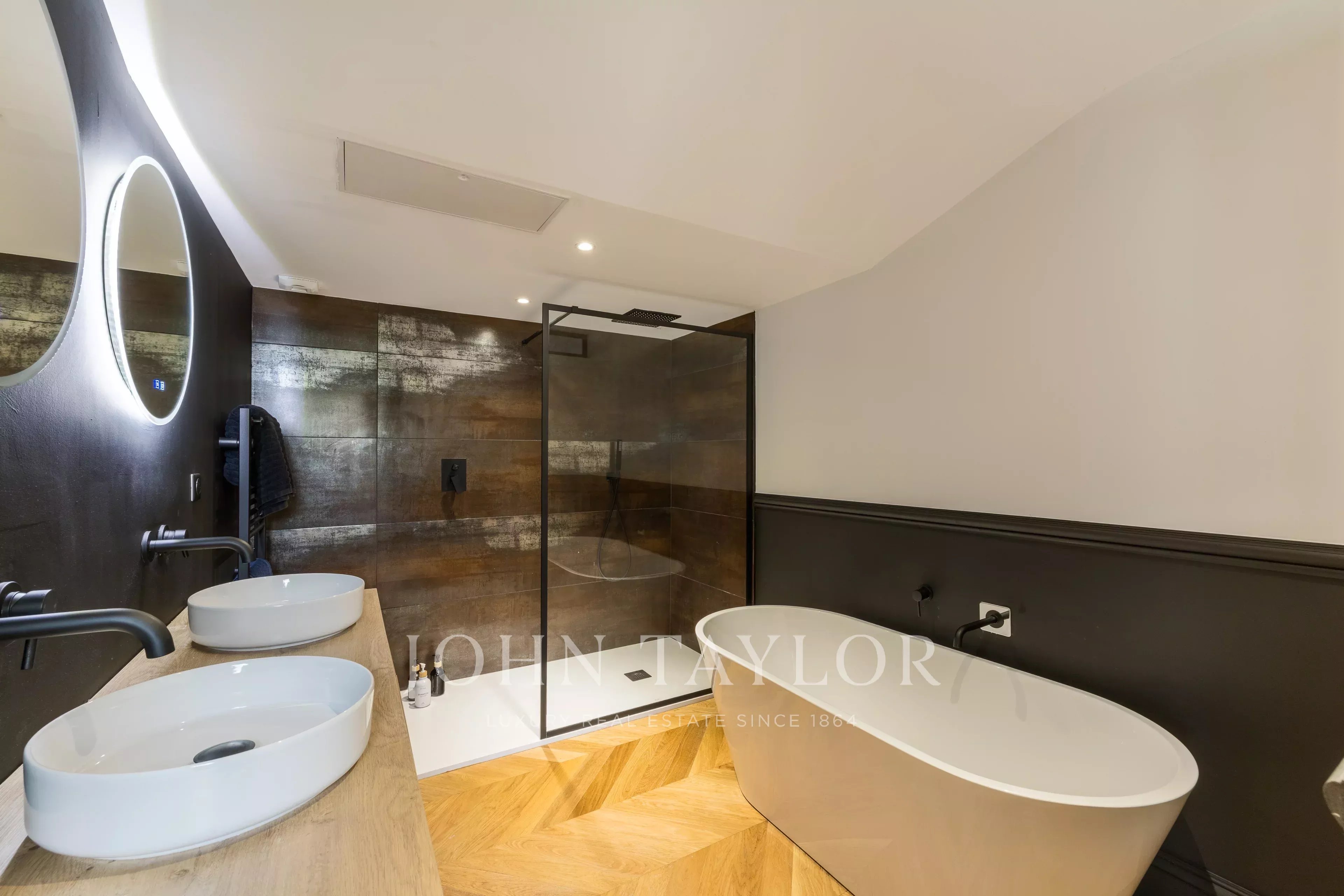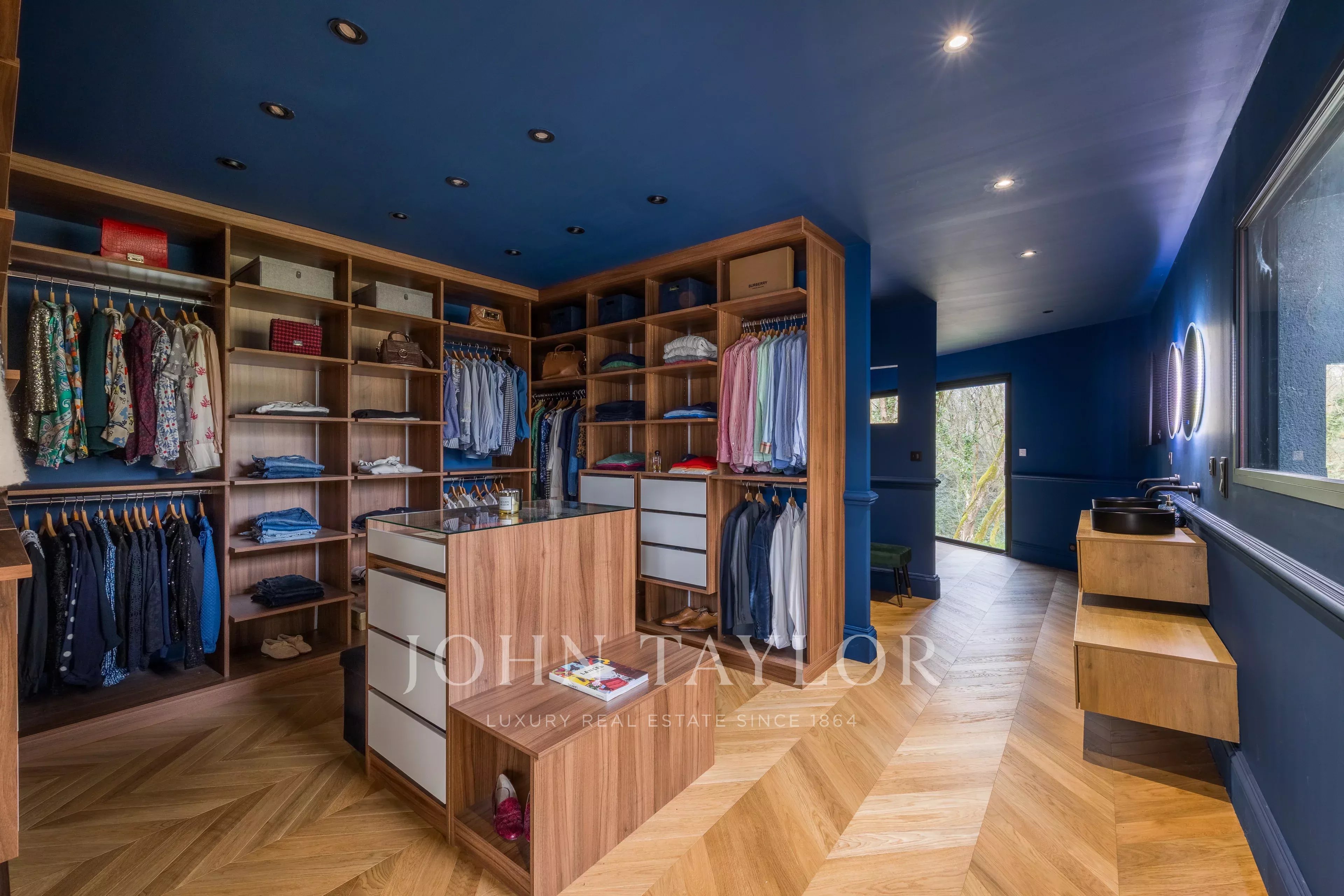 - Элегантная спальня площадью 40 м² с большой гардеробной и изысканной душевой комнатой,