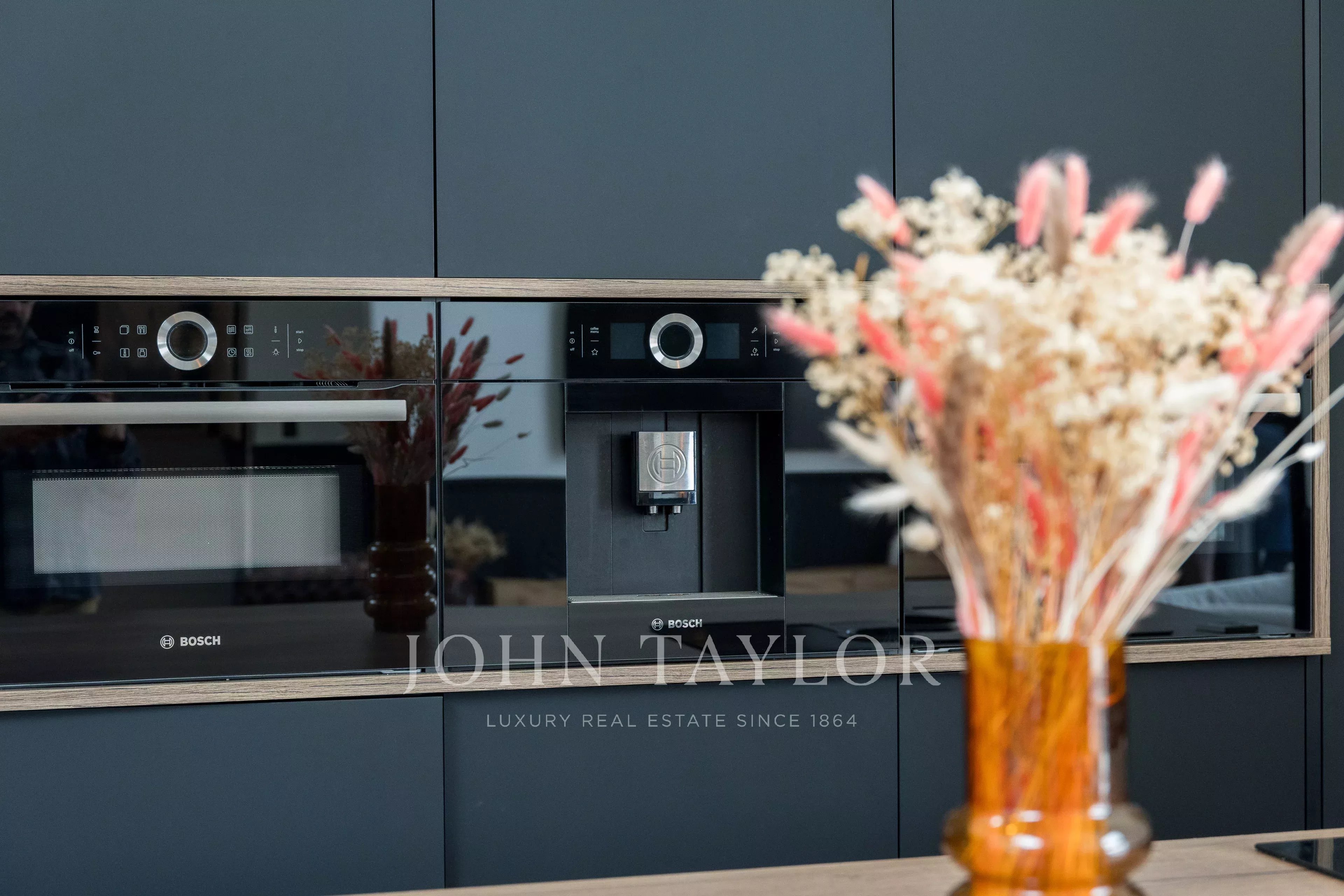 Кухня открытой планировки с современными линиями оснащена самым современным оборудованием, сочетающим в себе эстетику и практичность.
