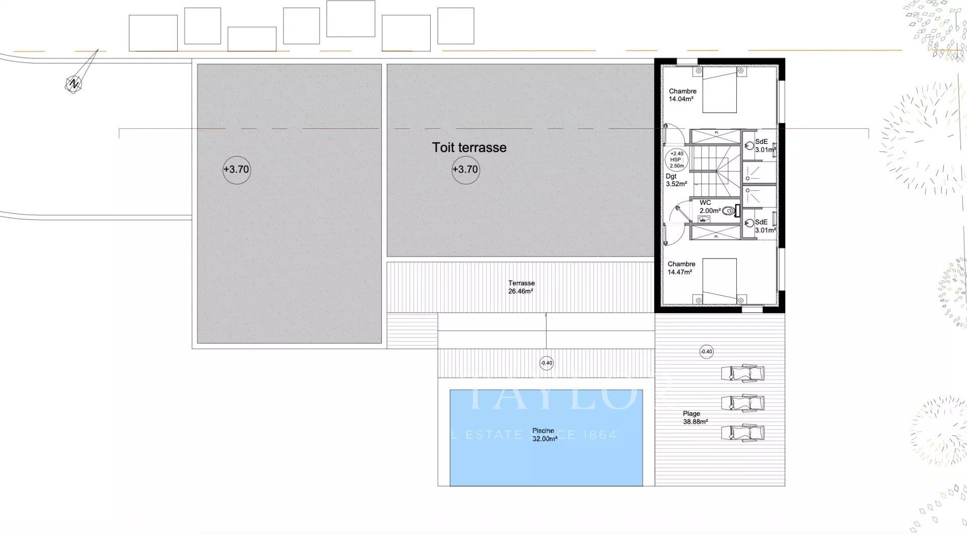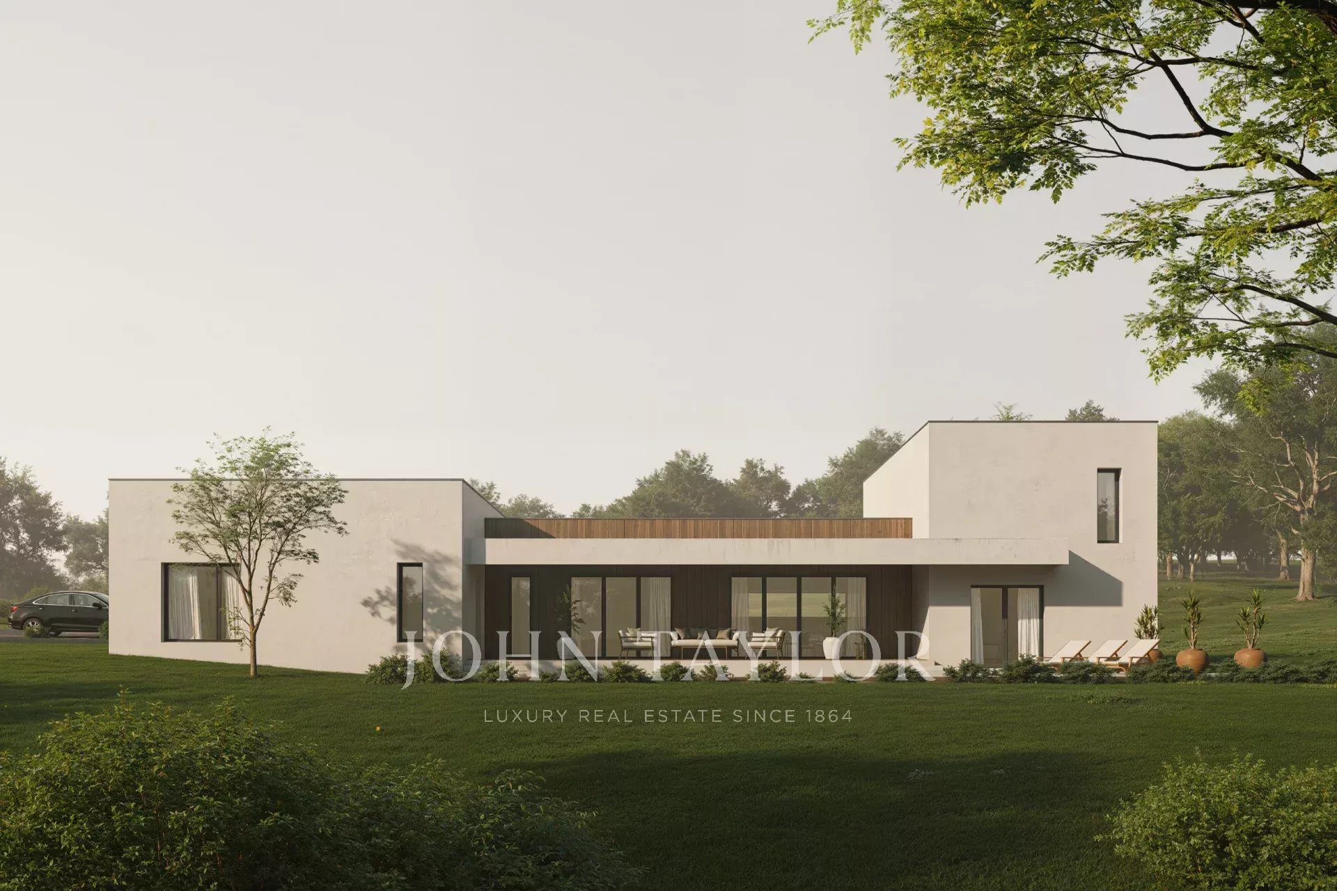 С участка площадью 2 500 м², расположенного в стороне от главной дороги, открывается непрерывный вид на охраняемый лесной массив, что обеспечивает будущему дому спокойствие и уединение. Здание площадью 220 м² выходит на юго-запад, что позволяет в полной мере использовать естественное освещение в течение всего дня.