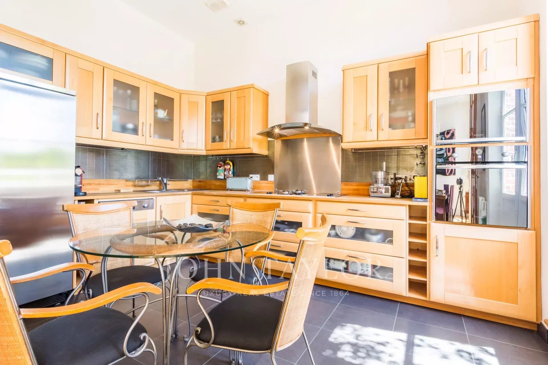 Из кухни и столовой также открывается беспрепятственный вид, что позволит вам наслаждаться обедом, любуясь захватывающим видом. Идиллическая обстановка Довиля только и ждет, чтобы вы воплотили свои мечты о побеге в реальность.