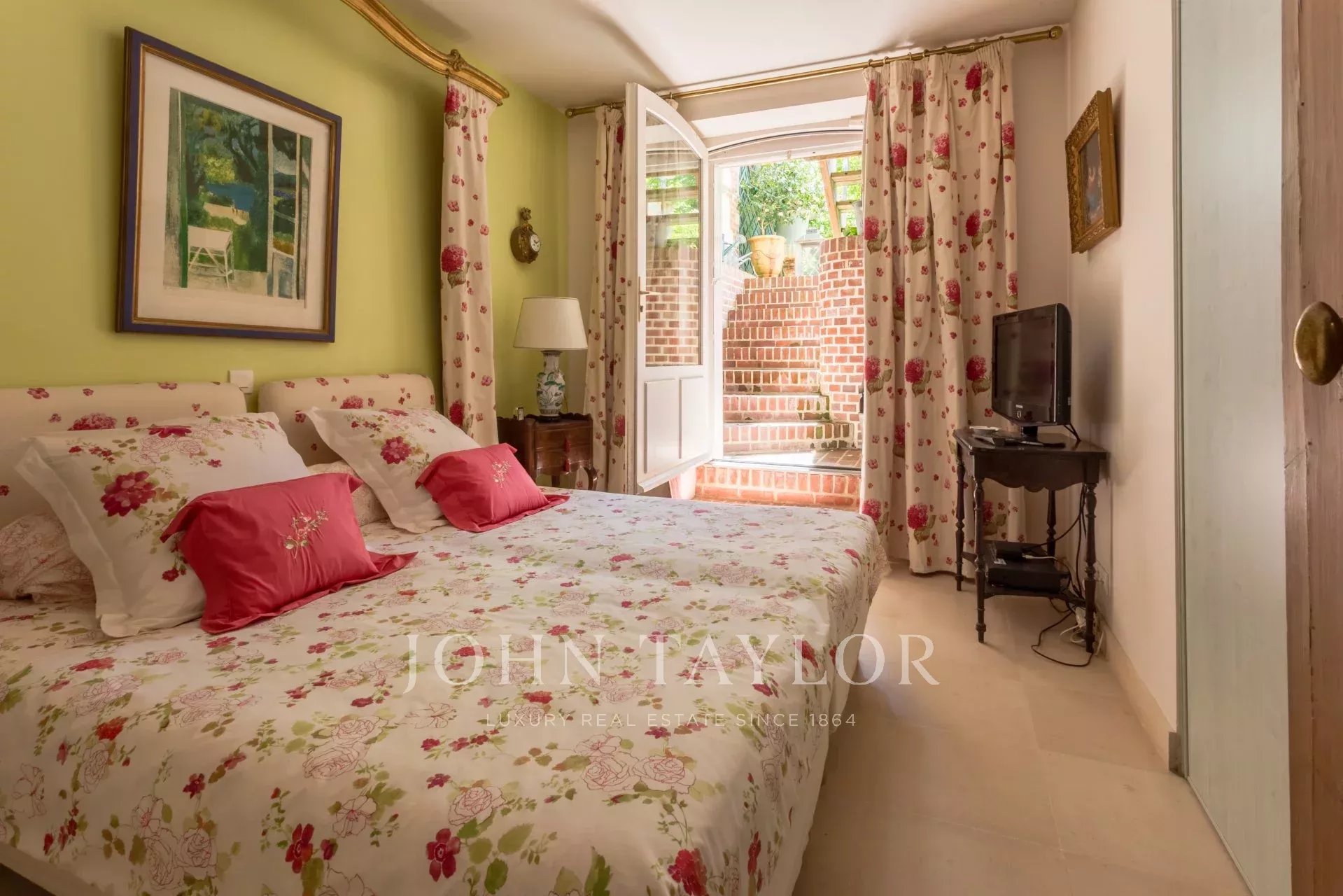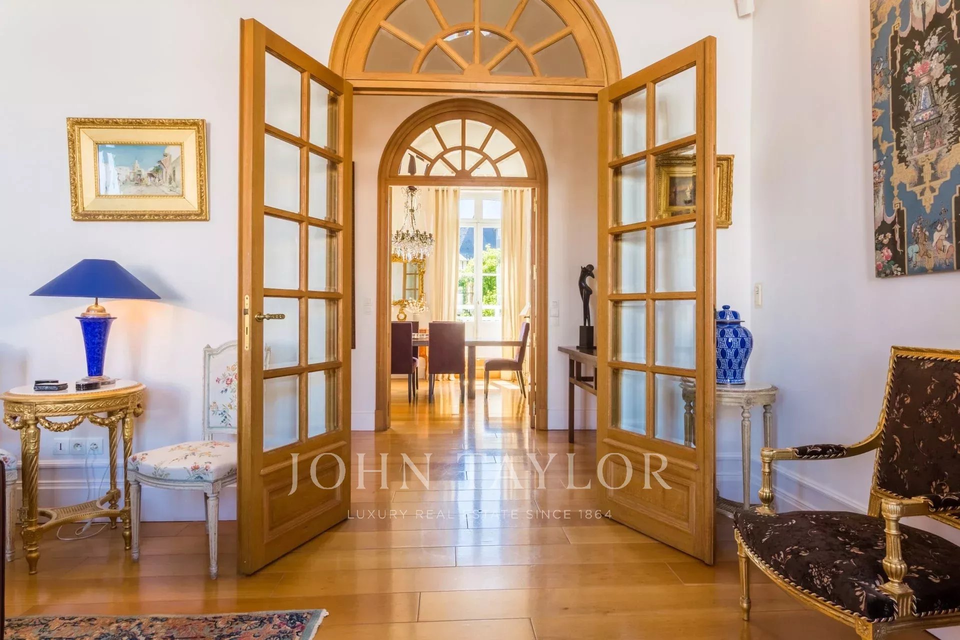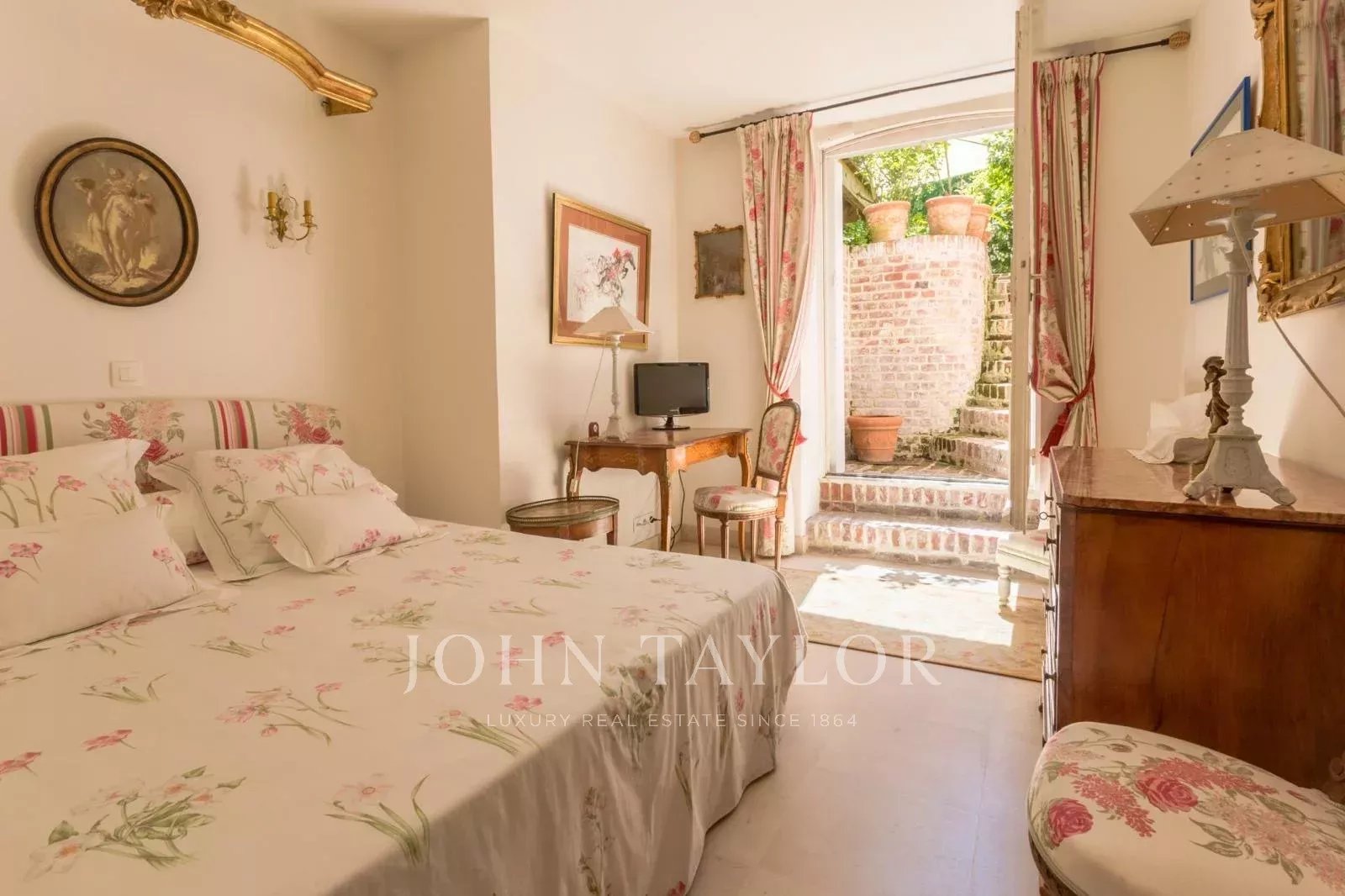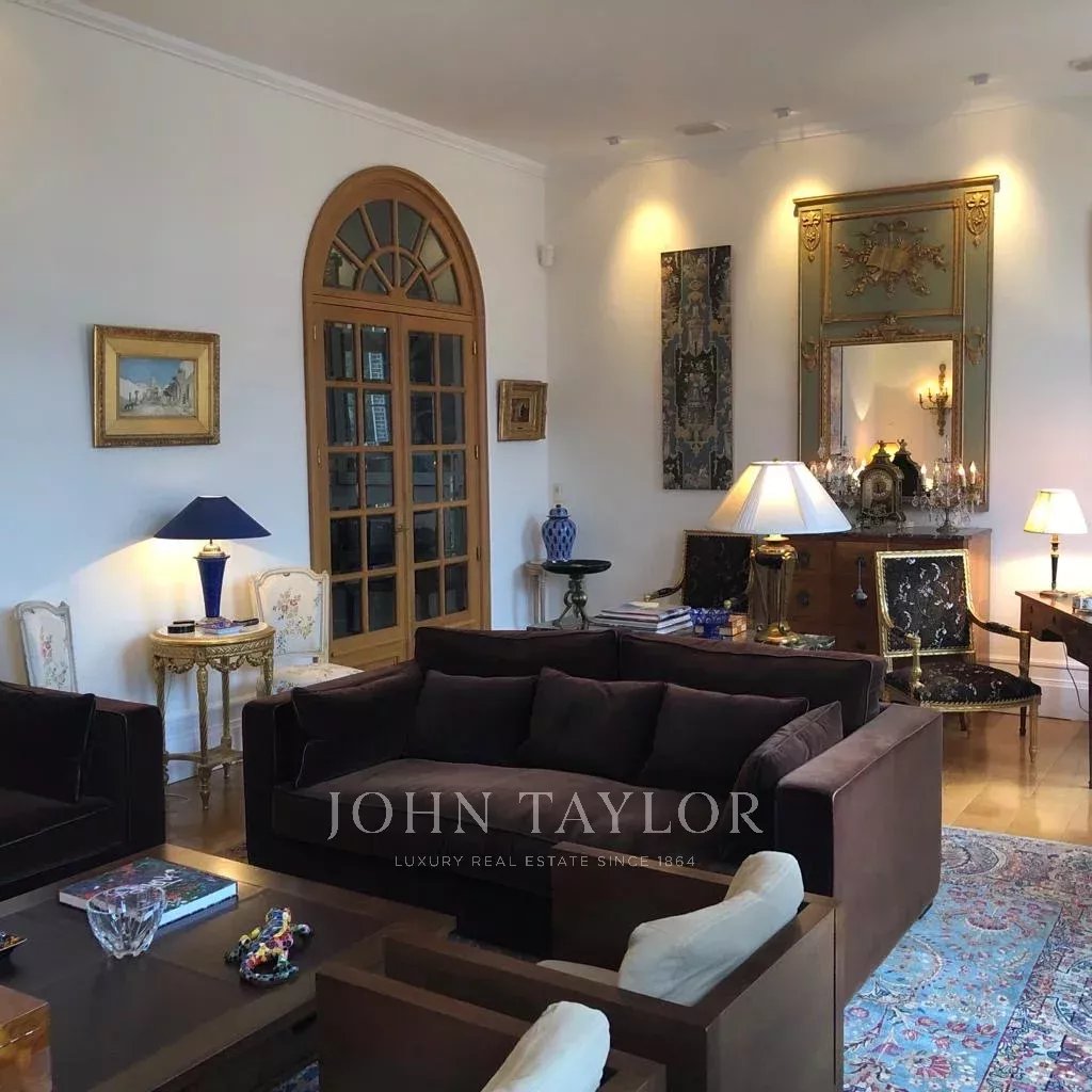Гостиная с ее роскошной мебелью и изысканным декором приглашает вас расслабиться и насладиться компанией друзей. Большие французские окна выходят в сад площадью 180 кв. м, который был с любовью благоустроен, и из которого открываются захватывающие виды на окрестности. Внутренняя планировка была разработана таким образом, чтобы сочетать комфорт и практичность.