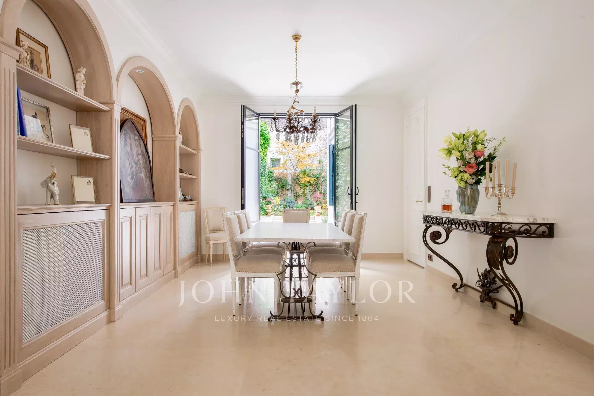 ВИКТОР ГЮГО - СЕНТ-ЖАМС. Этот таунхаус в стиле Belle Époque (1890-е годы), отреставрированный в современном стиле с сохранением возрожденного стиля Людовика XIII, расположен на тихой и спокойной улице в 16-м округе и предлагает 306 м² жилой площади для всей семьи и выходящий на юг сад с террасой общей площадью почти 100 м².