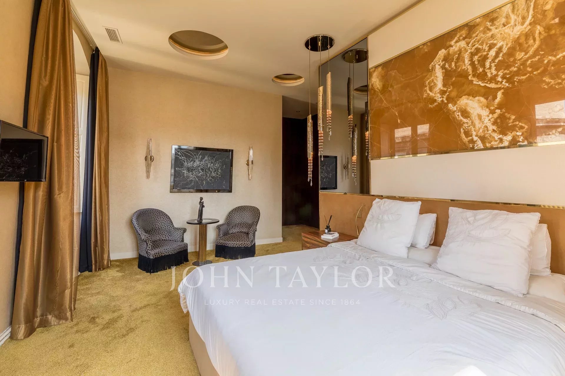 На верхнем этаже расположены четыре спальни, включая главную спальню с видом на памятник Жирондинам.