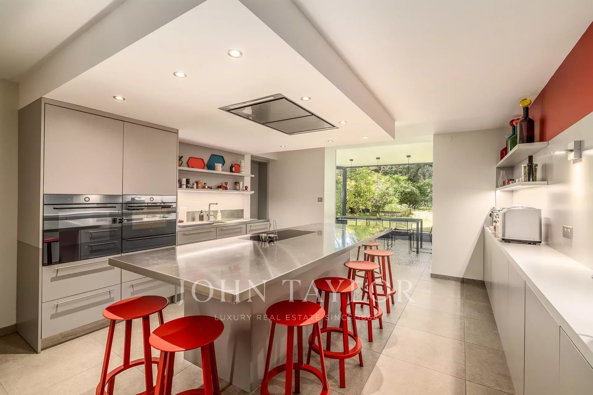 Как только вы входите в дом, очаровательный сад у входа задает тон. На уровне сада находится просторная, наполненная светом кухня-столовая, выходящая в сад площадью 250 м², засаженный деревьями, - тихая гавань в самом сердце города.