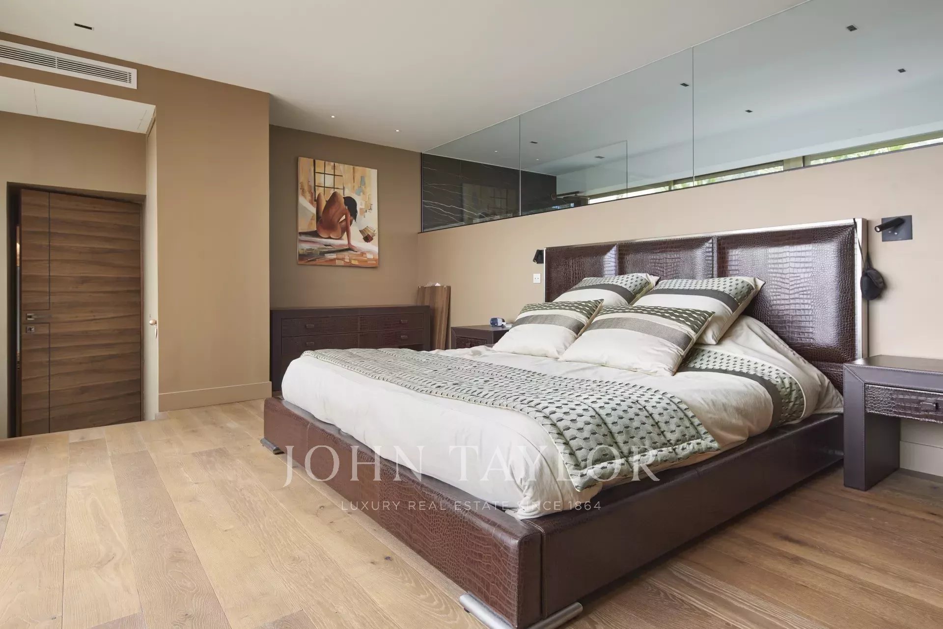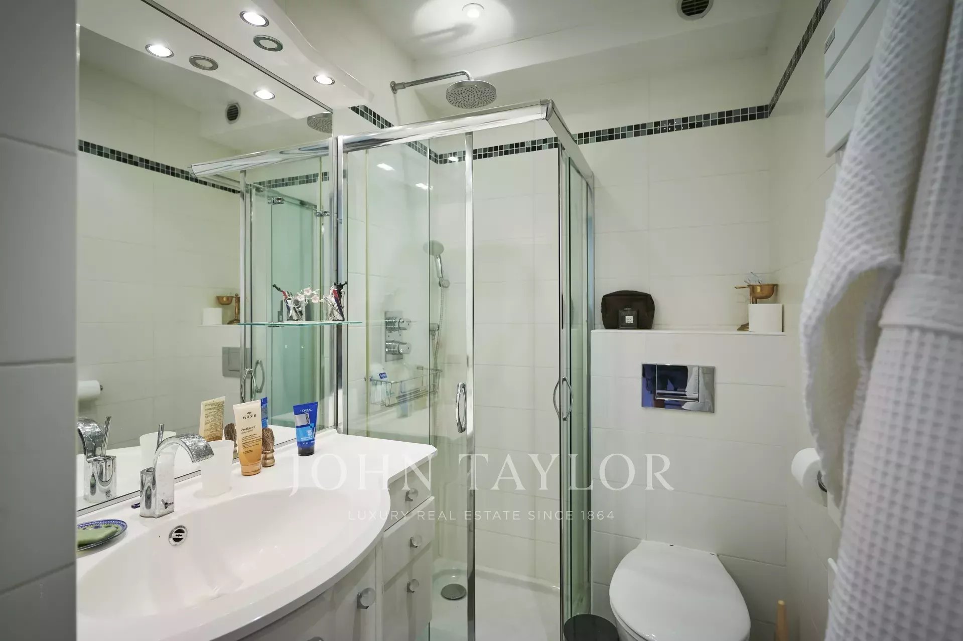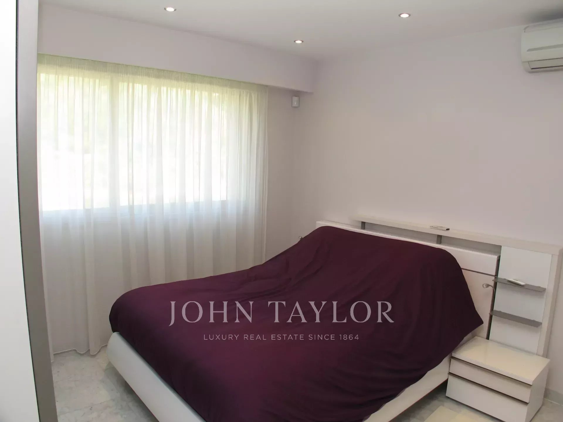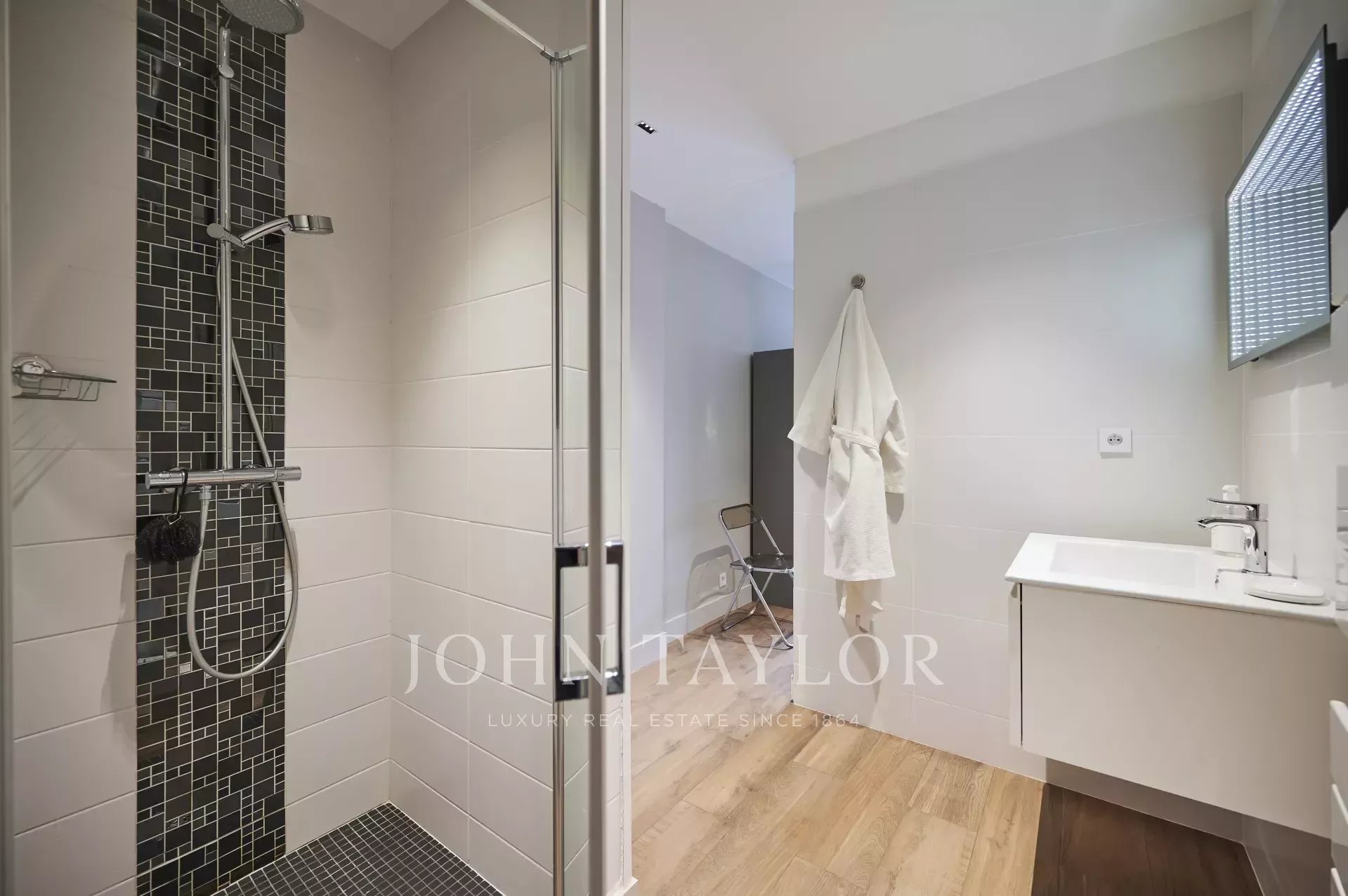 Эта красивая квартира площадью 180 м2 с кондиционером и террасой площадью 80 м2 с великолепным видом на море, Леринские острова и Каннский залив расположена в роскошной резиденции на возвышенности Канн, в районе Basse Californie.