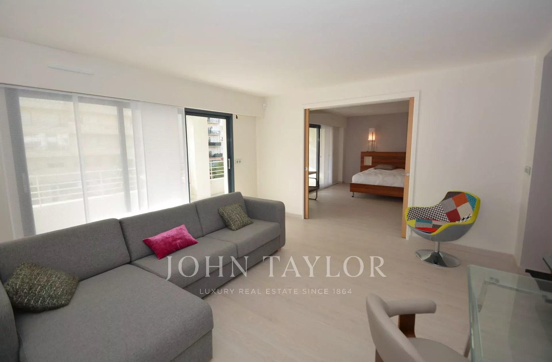 Красивая, современная, полностью кондиционированная квартира на 2 этаже резиденции в центре Канн, недалеко от набережной Круазетт и ее пляжей, рядом с Дворцом фестивалей.