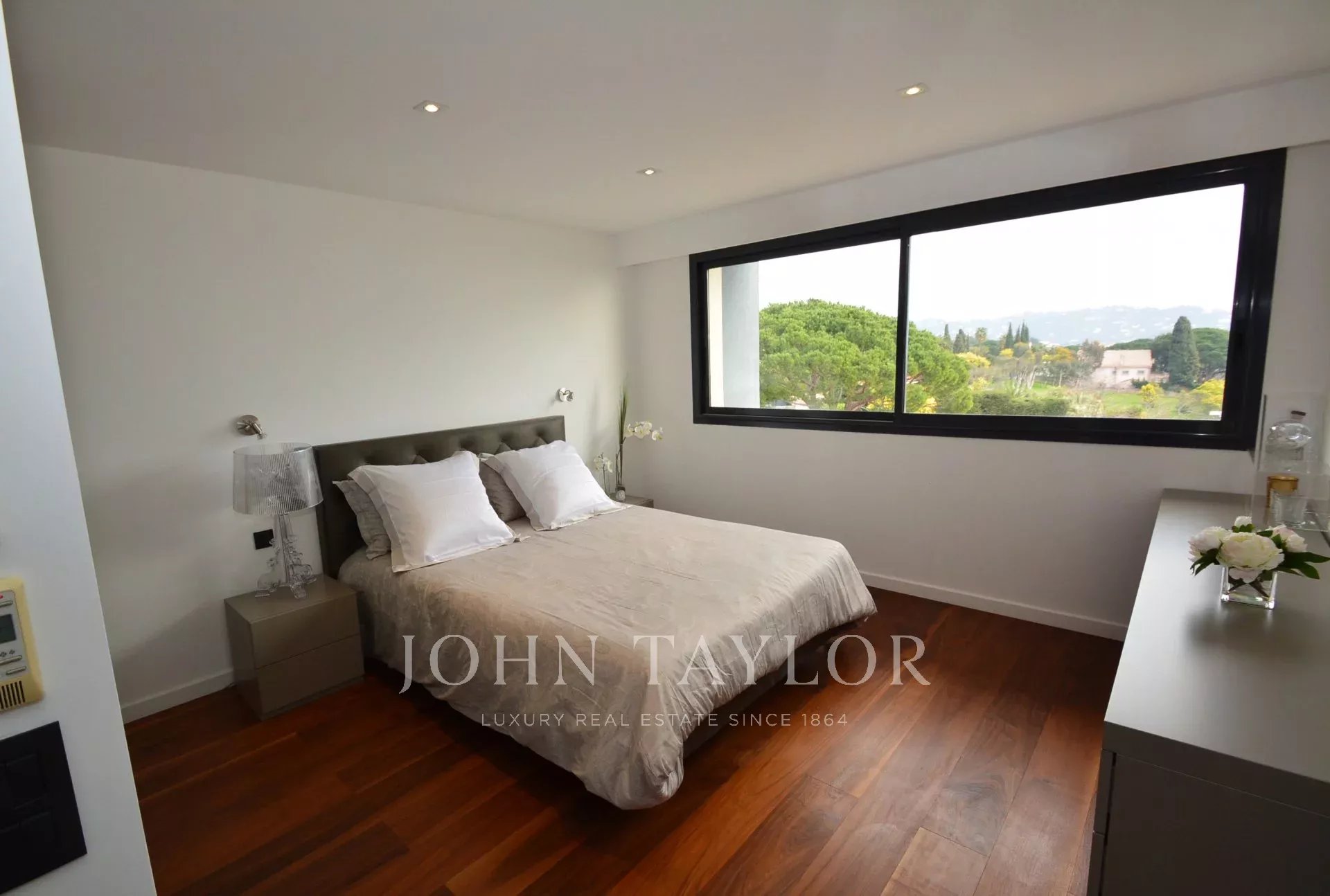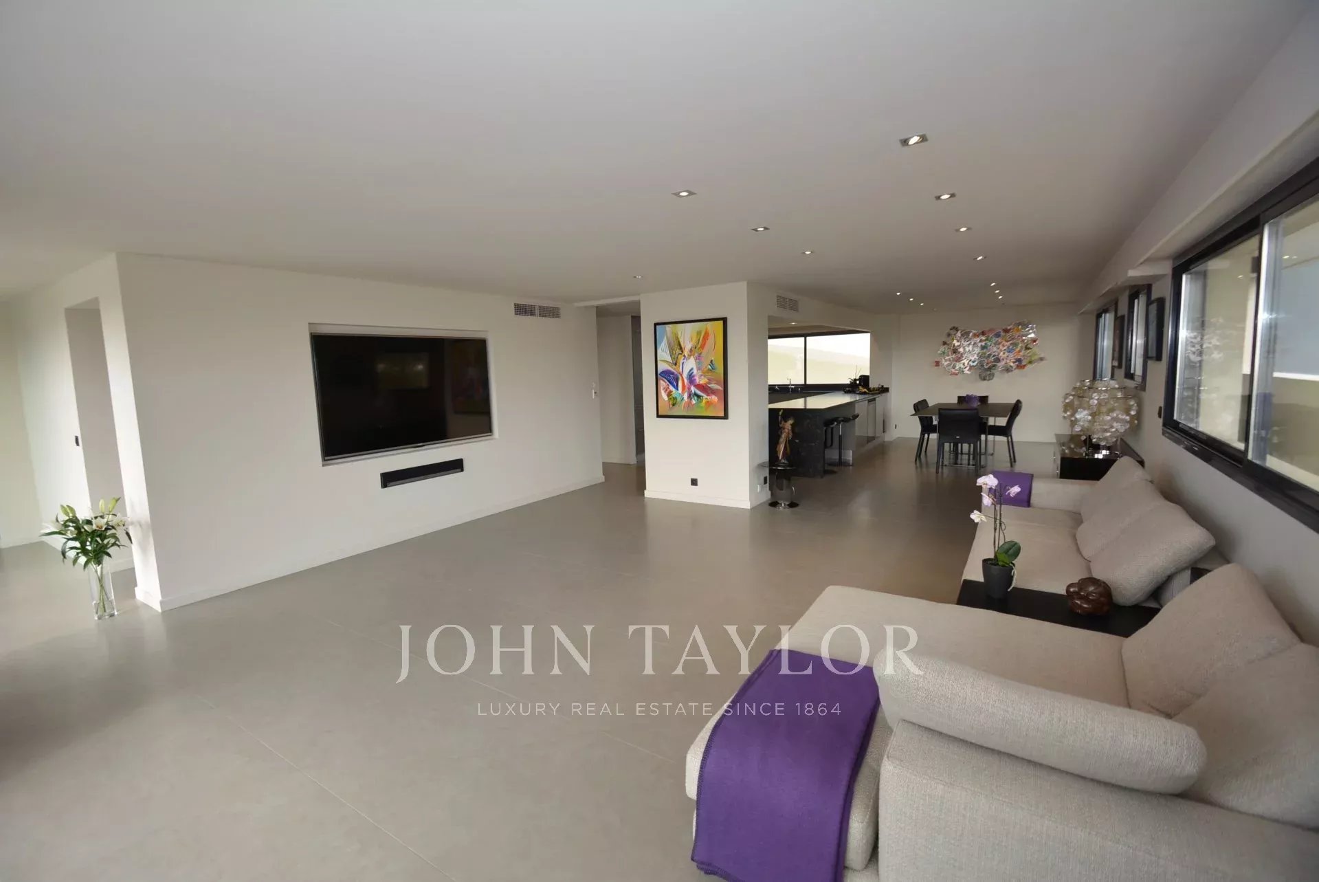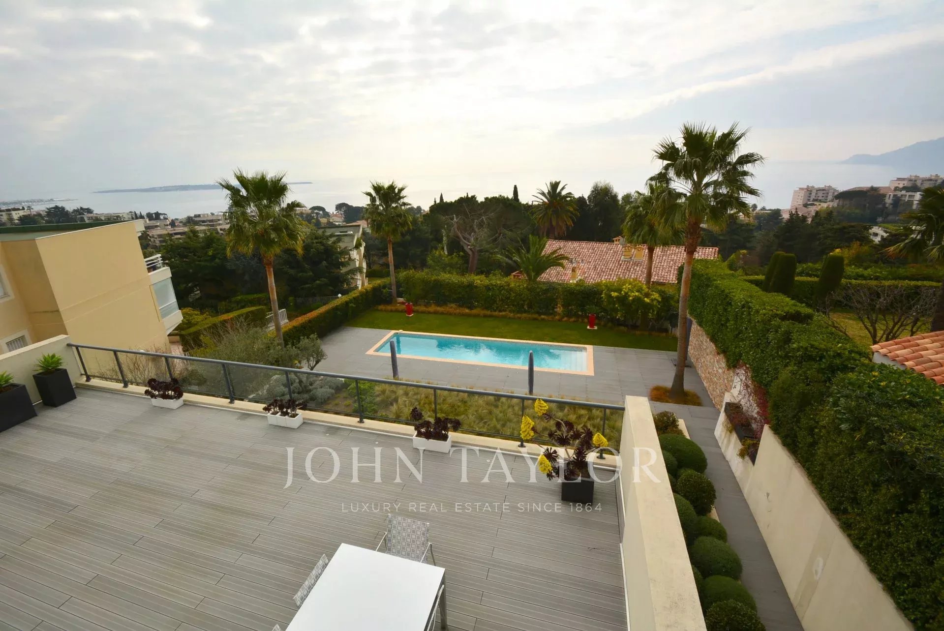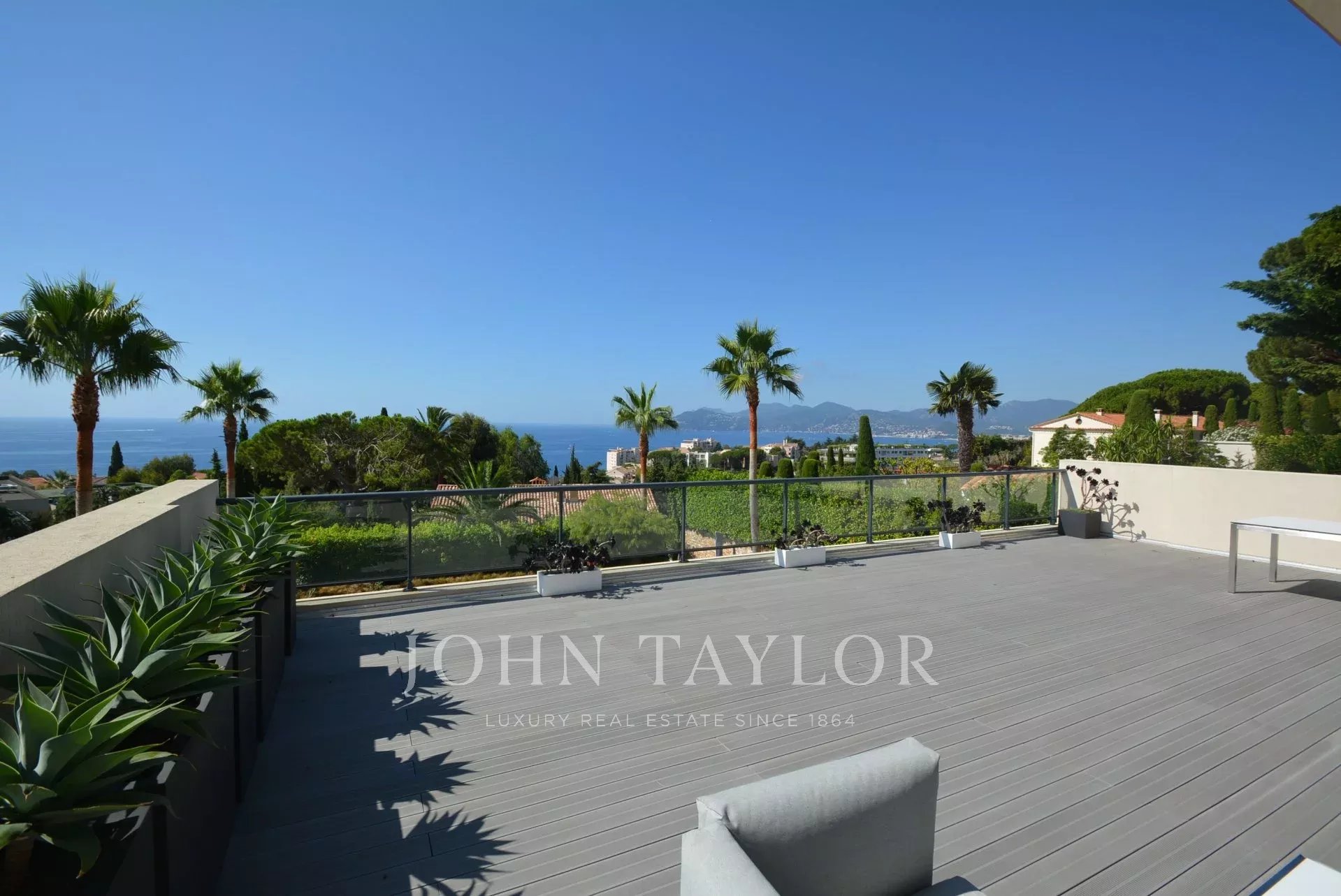 Район "CROIX DES GARDES", в десяти минутах от центра Канн и Дворца фестивалей, с великолепным видом на Каннский залив, Леринские острова и Эстерель, полностью кондиционированная квартира на верхнем этаже резиденции из 3 квартир с садом и подогреваемым бассейном.
