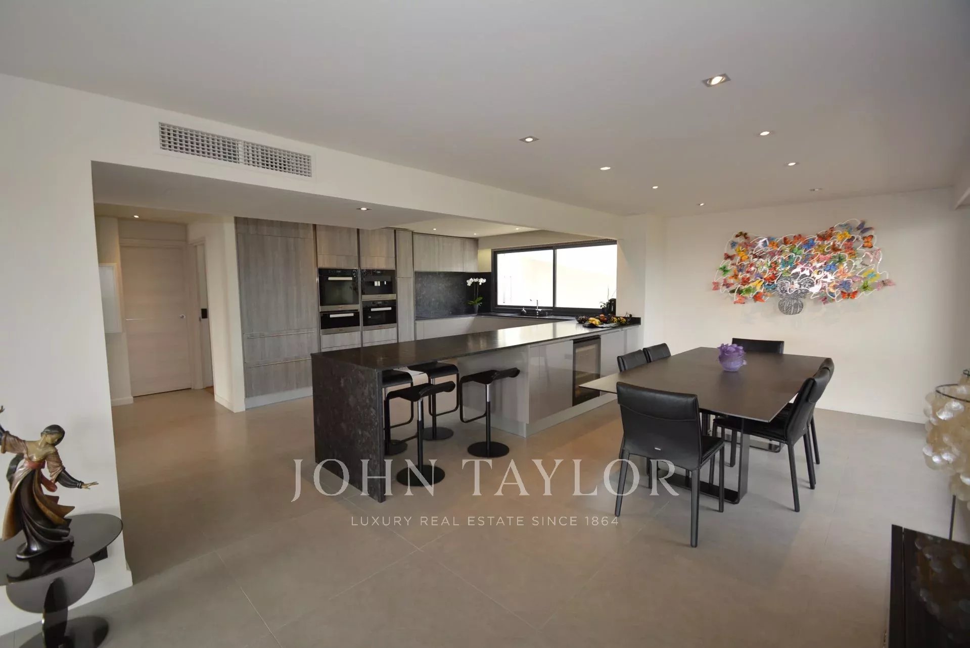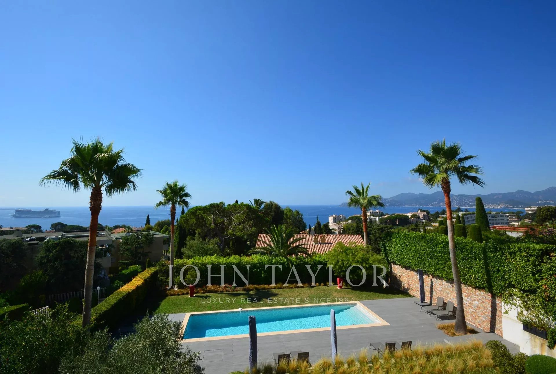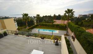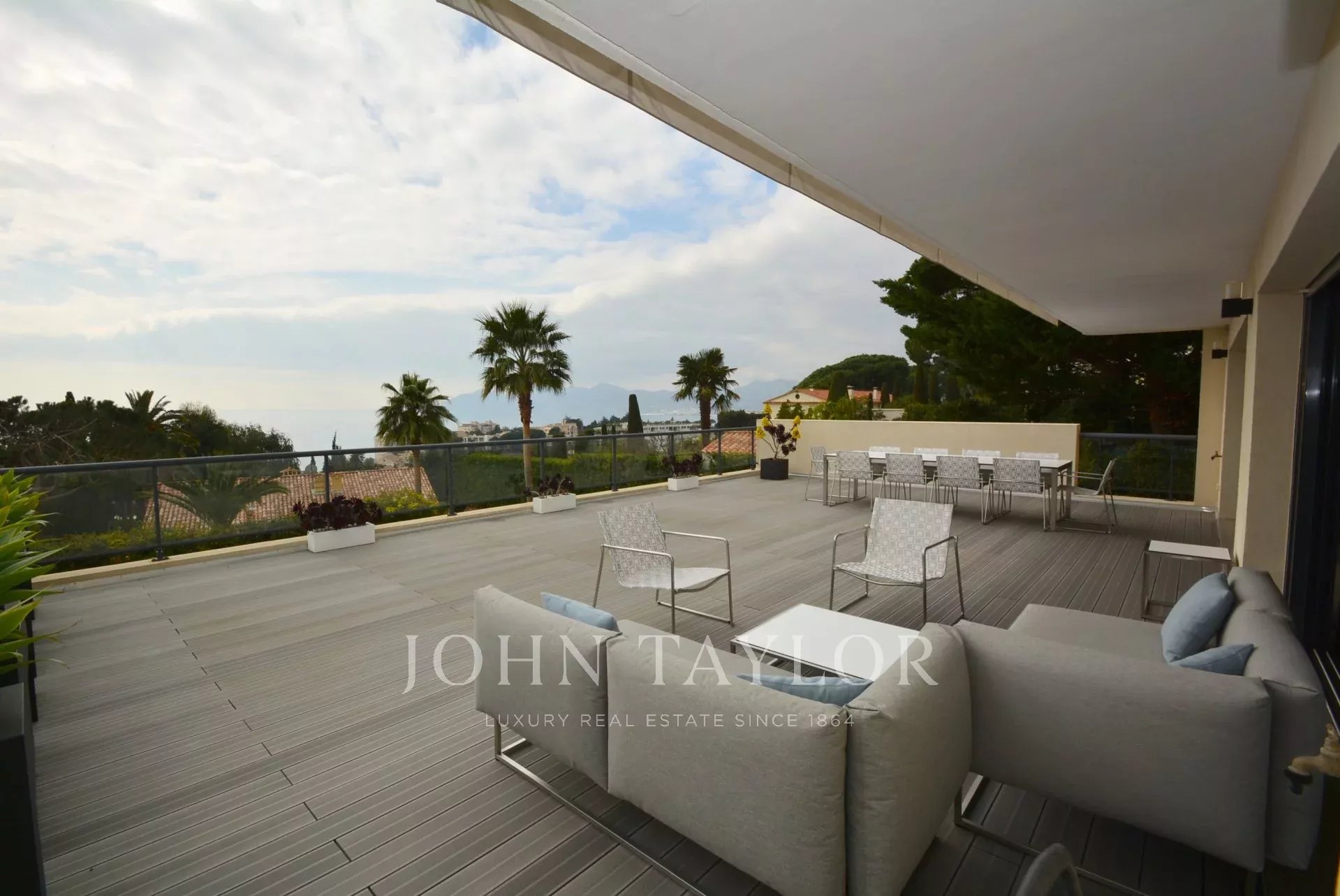 Район "CROIX DES GARDES", в десяти минутах от центра Канн и Дворца фестивалей, с великолепным видом на Каннский залив, Леринские острова и Эстерель, полностью кондиционированная квартира на верхнем этаже резиденции из 3 квартир с садом и подогреваемым бассейном.