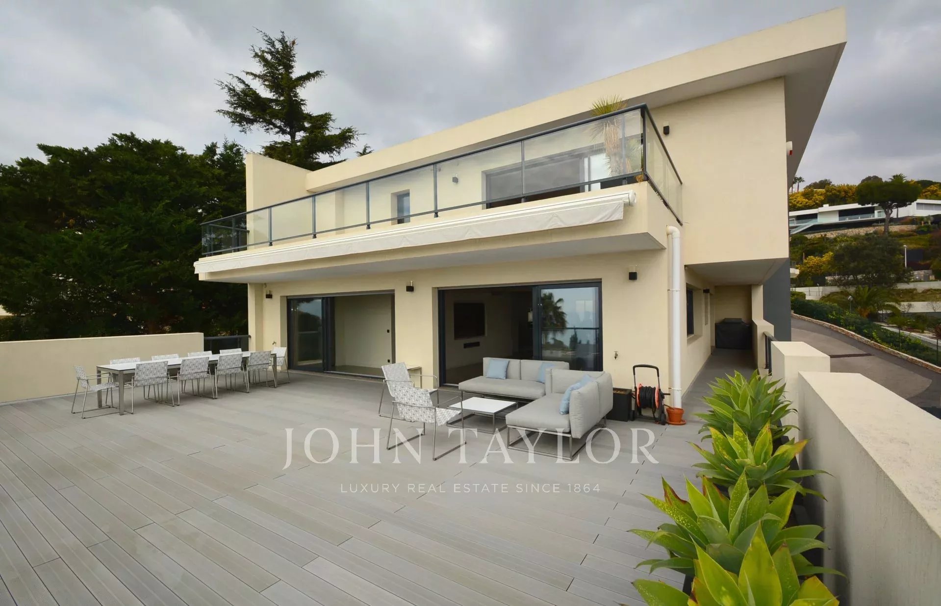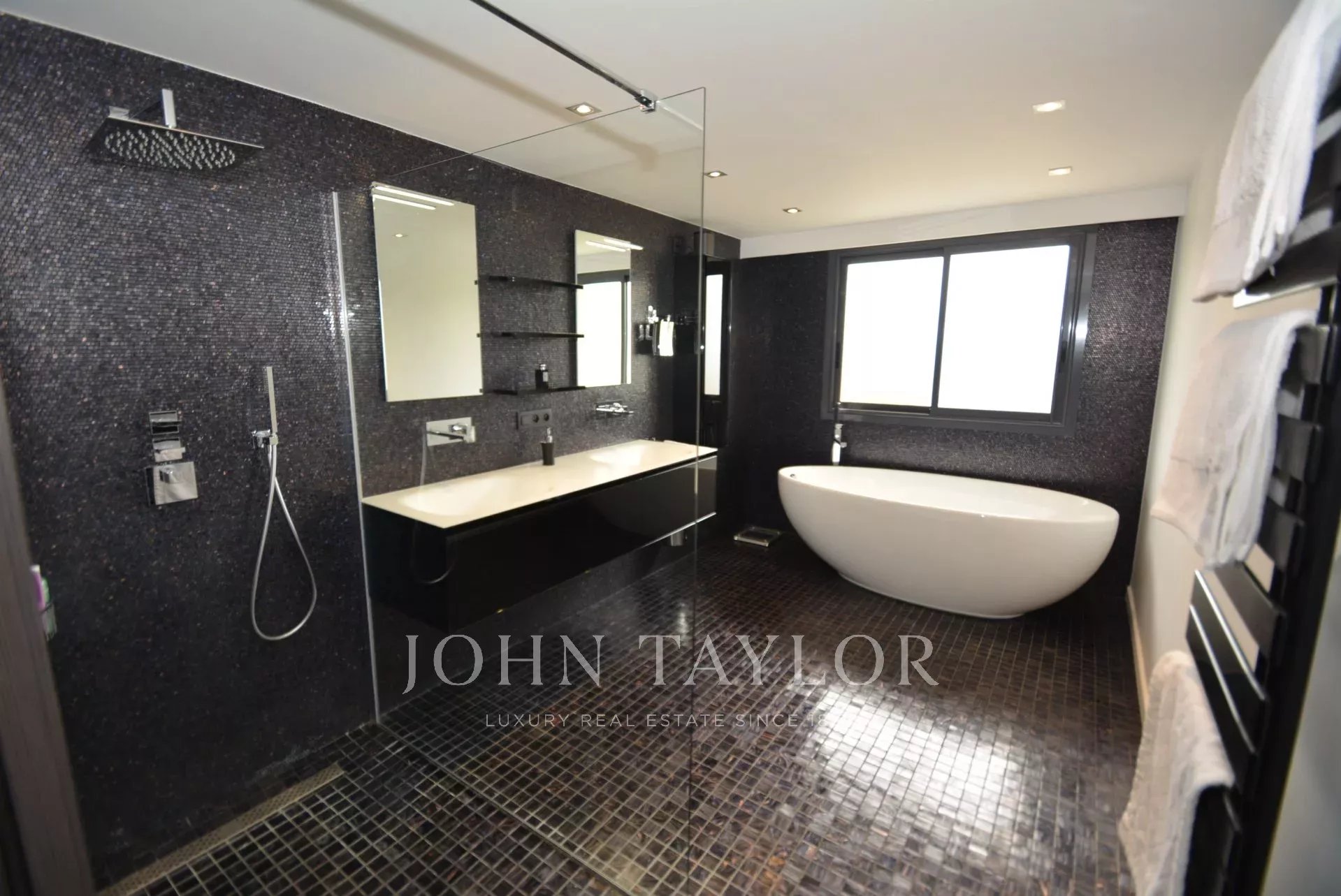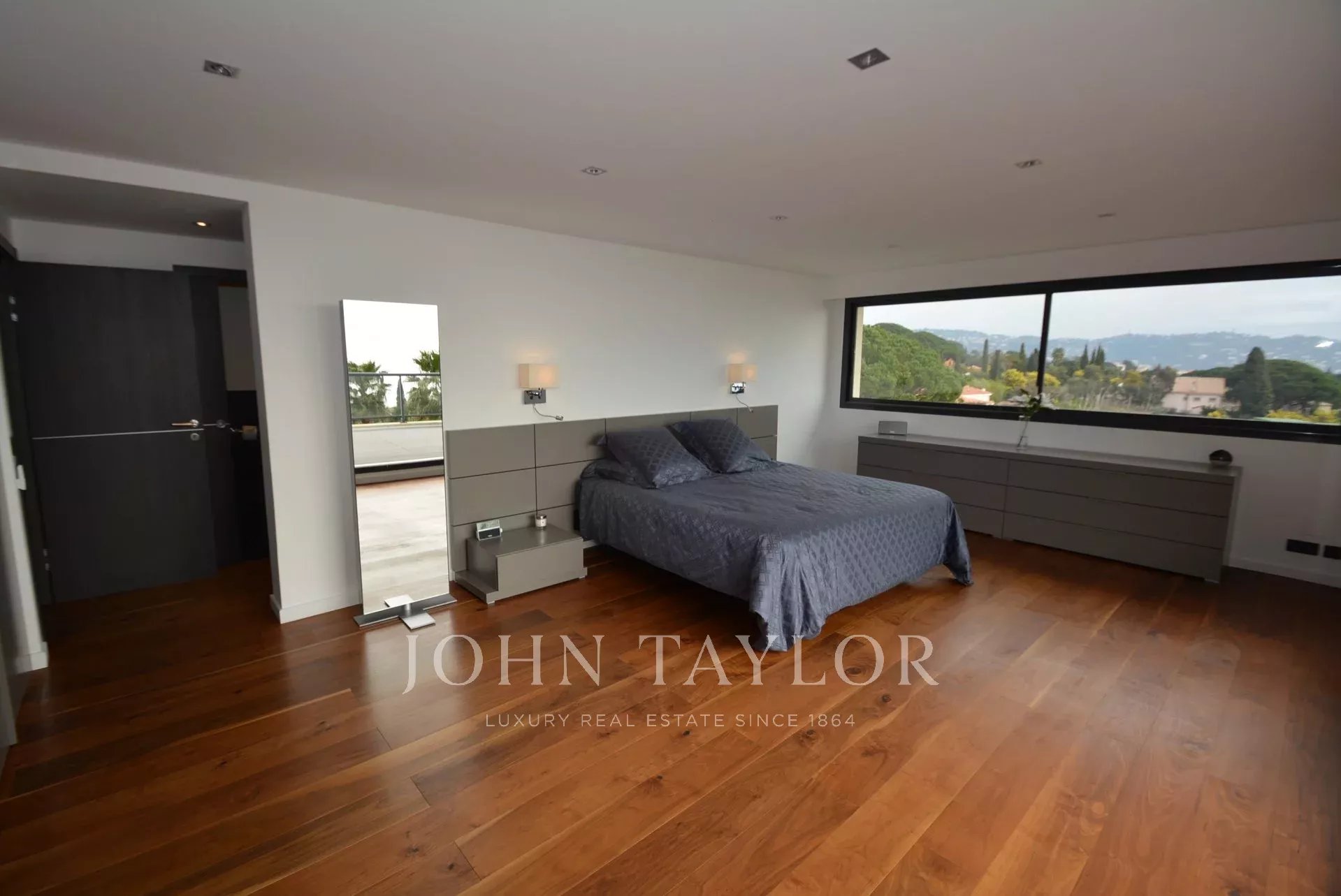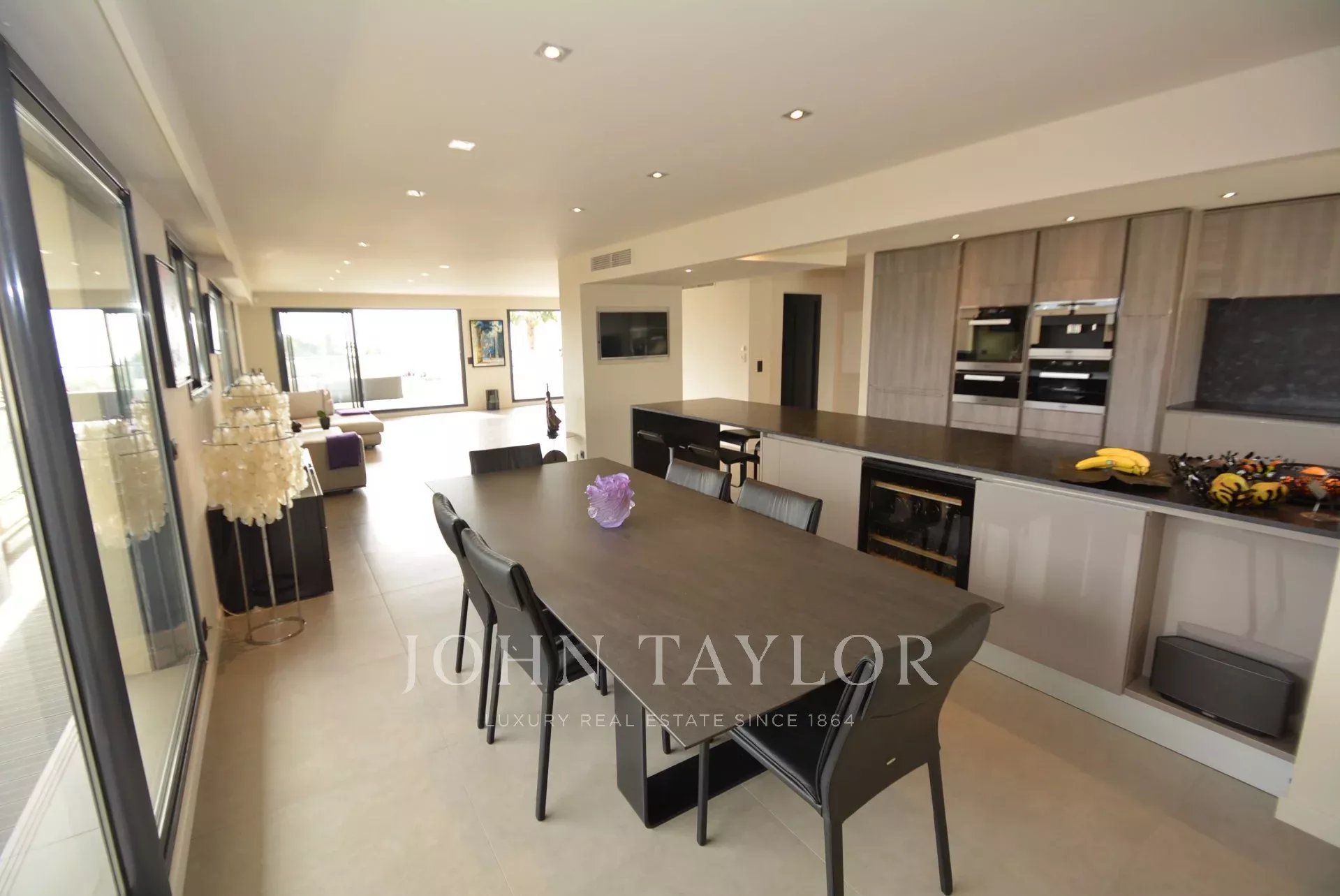 Район "CROIX DES GARDES", в десяти минутах от центра Канн и Дворца фестивалей, с великолепным видом на Каннский залив, Леринские острова и Эстерель, полностью кондиционированная квартира на верхнем этаже резиденции из 3 квартир с садом и подогреваемым бассейном.