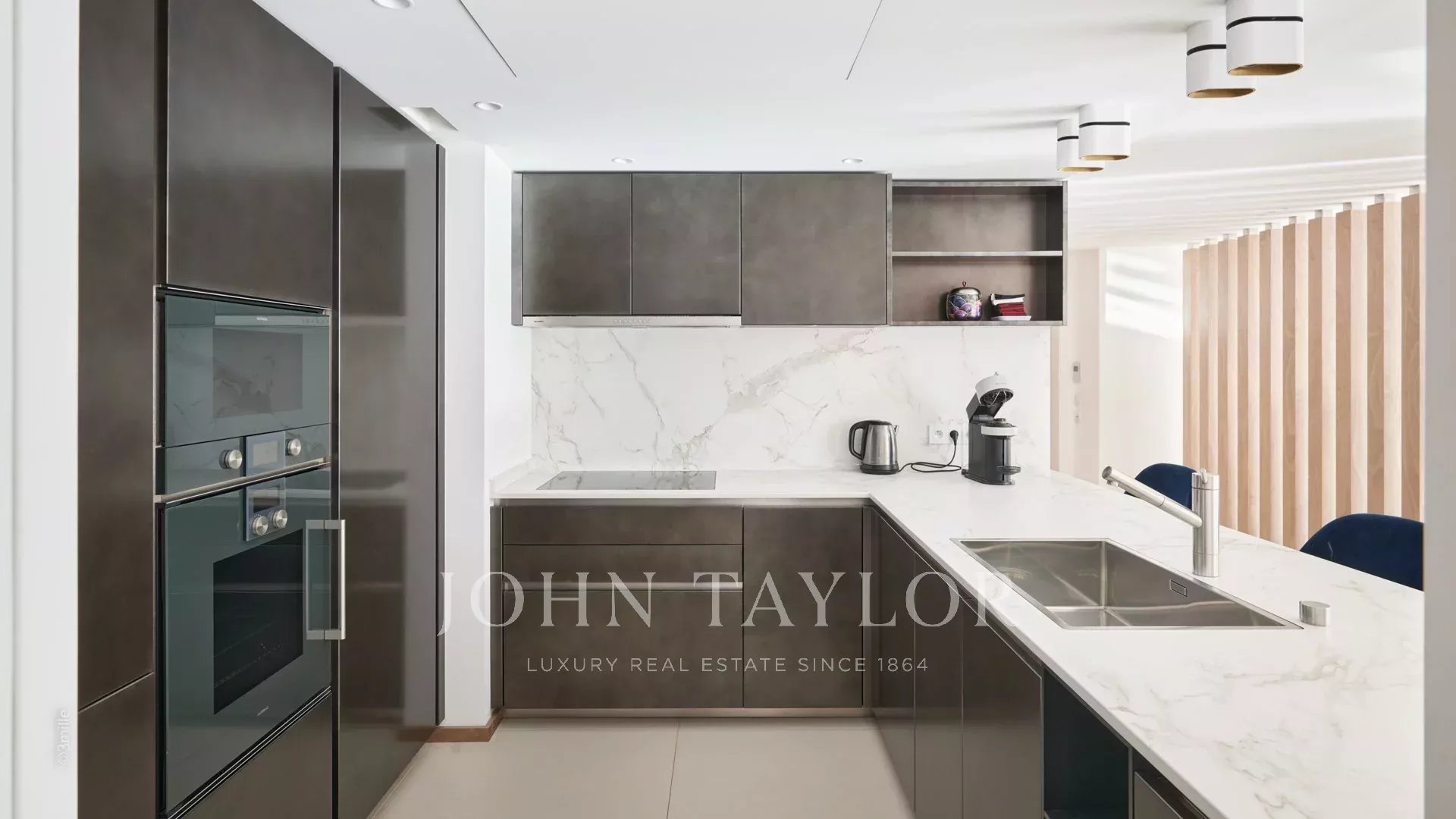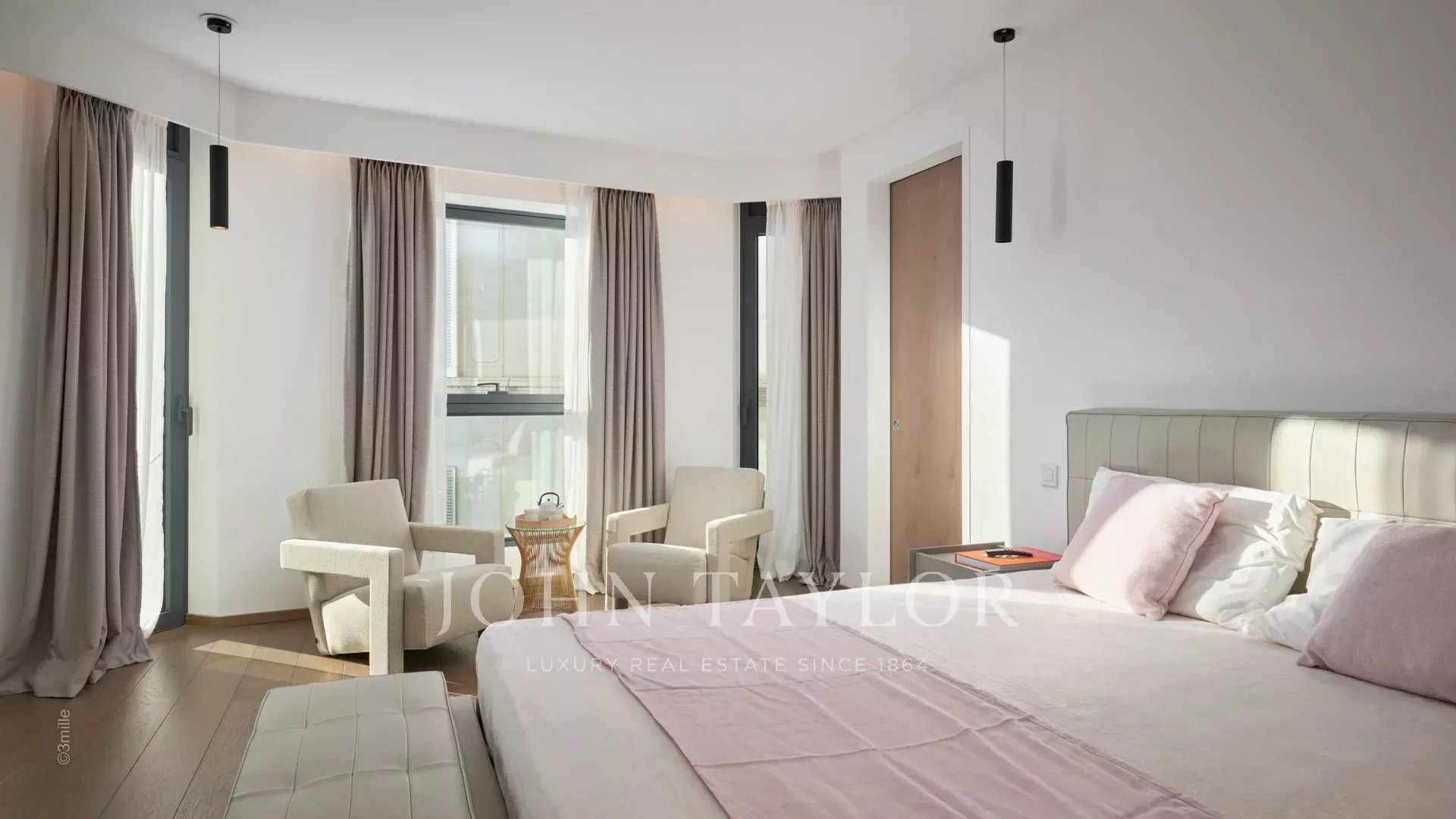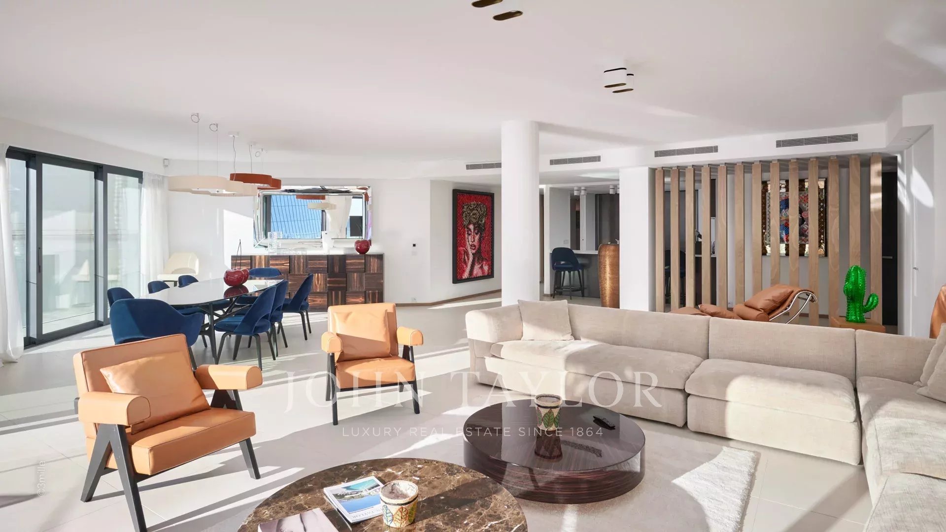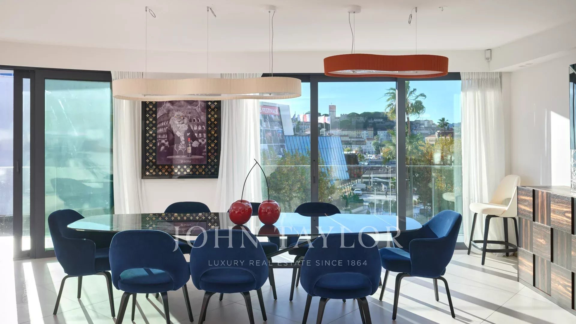 Эта великолепная квартира площадью 231 м² расположена на 4-м этаже престижной резиденции напротив Дворца фестивалей и имеет террасу площадью 25 м2.