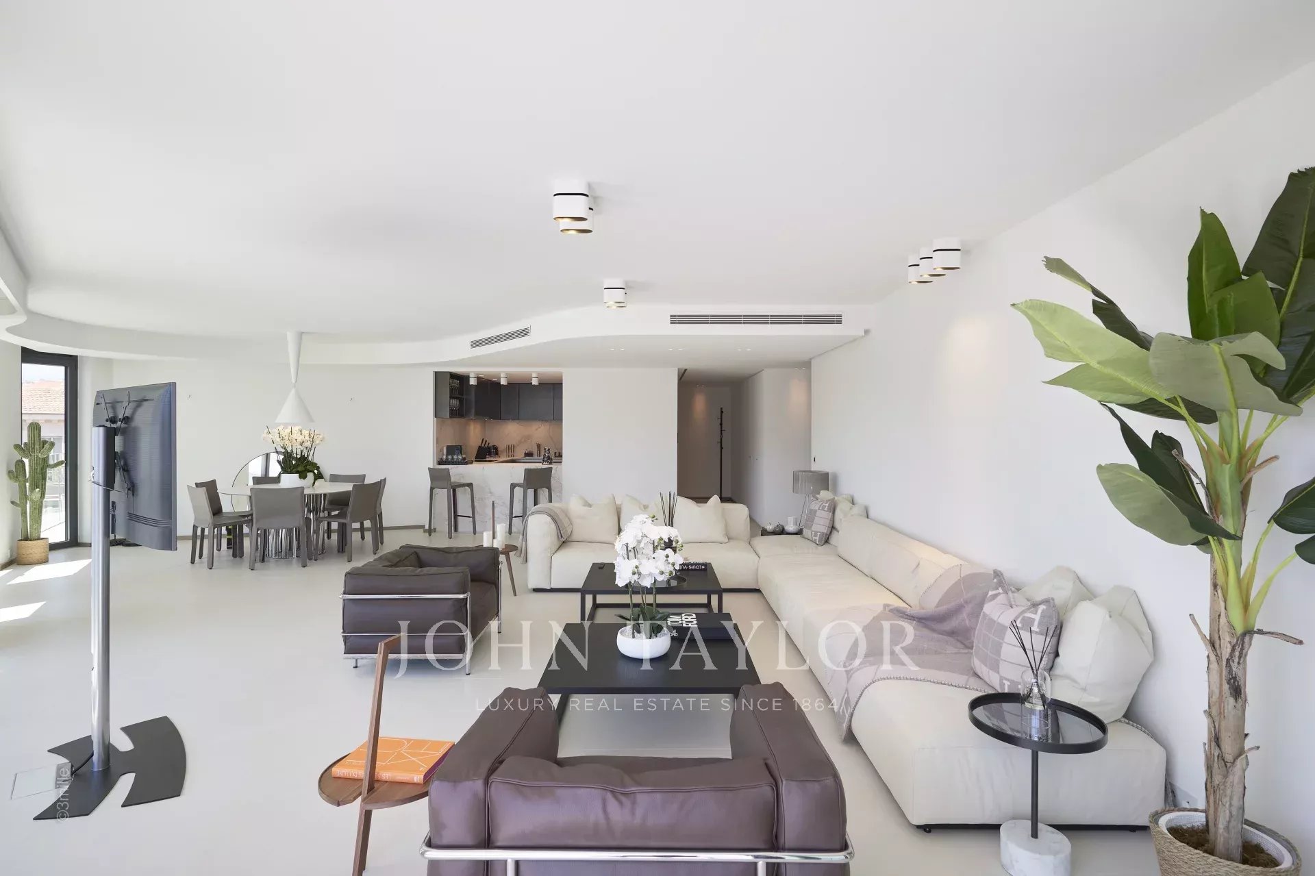 - большая светлая гостиная с полностью оборудованной кухней открытого плана