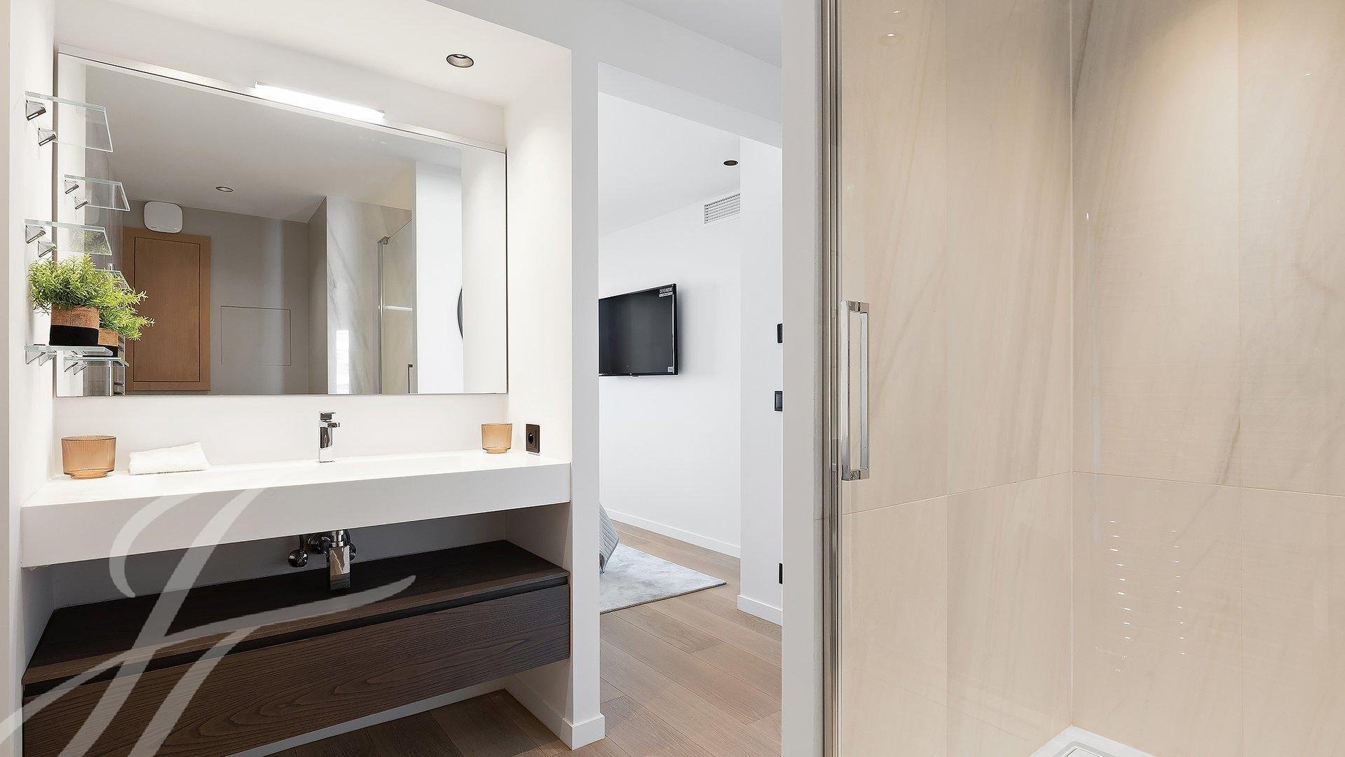 Три спальни с ванными комнатами, телевизором, гардеробной и душевой комнатой (две с ванными комнатами)