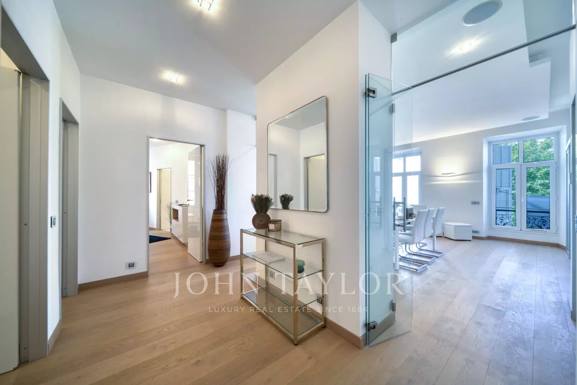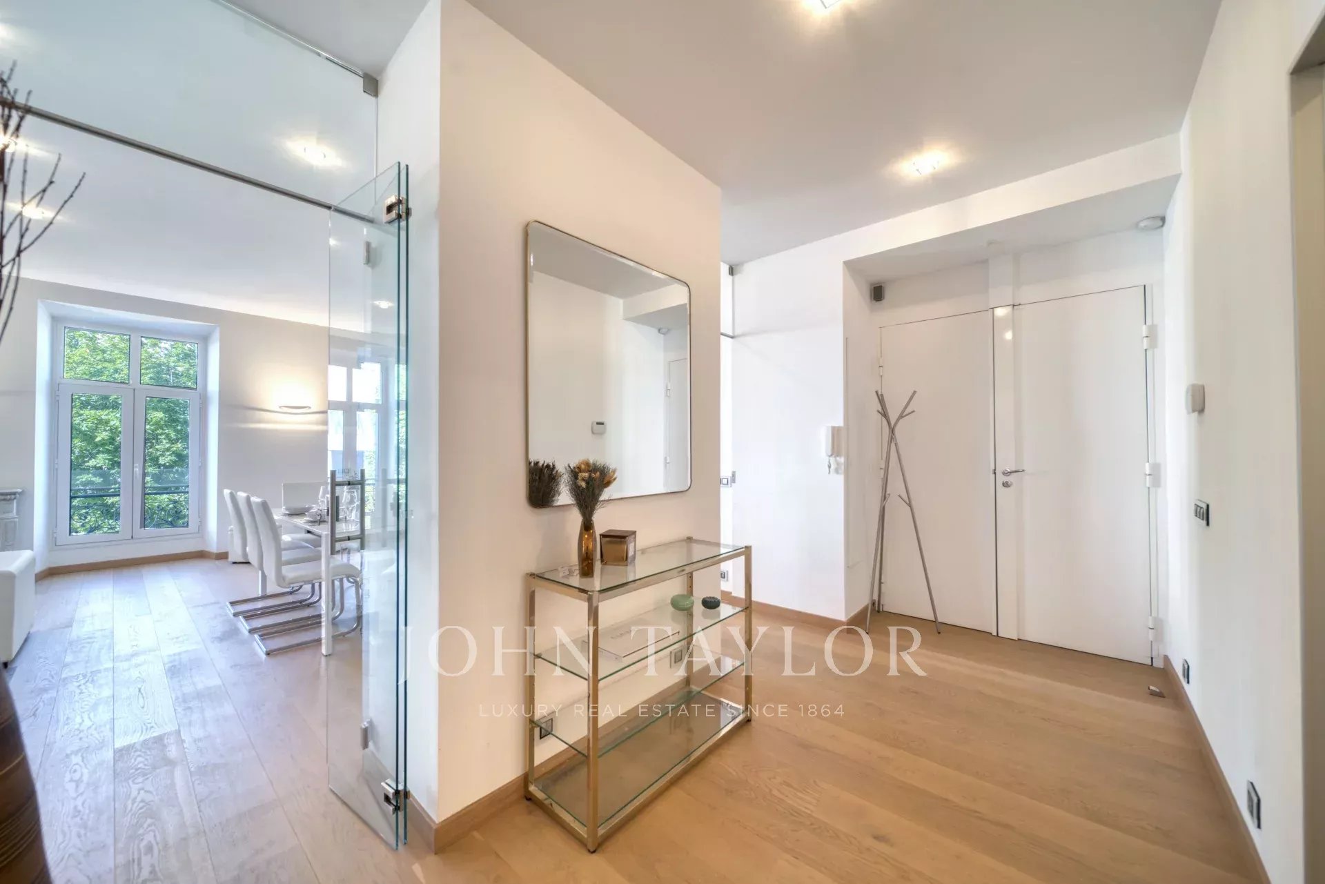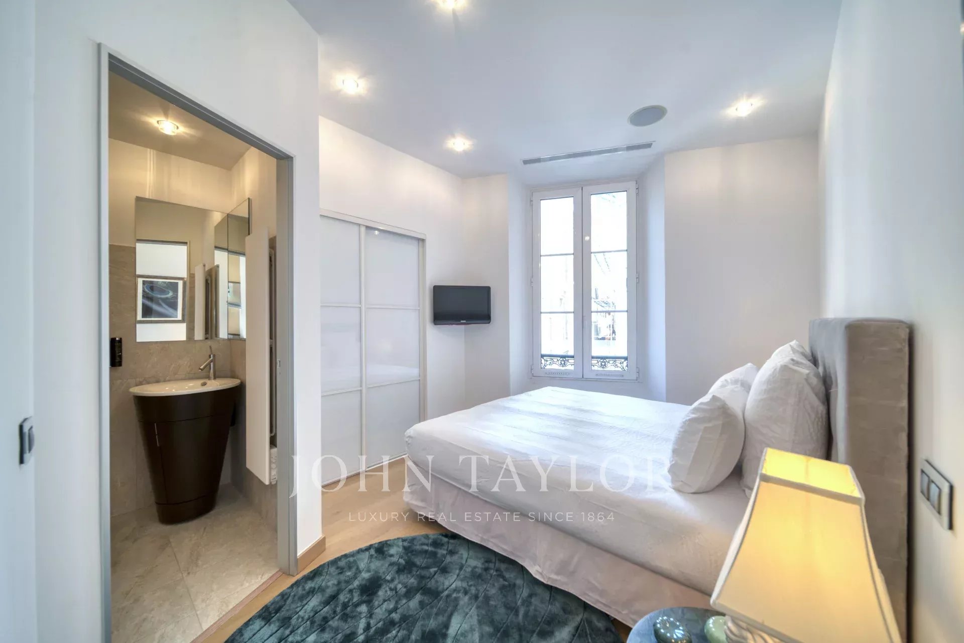 На 2 этаже здания среднего класса, напротив Дворца фестивалей и пляжей Круазетт, недалеко от улицы Антиб, рынка Форвиль и старого города Канн "Ле Сюке", полностью отремонтированная современная квартира с кондиционером и жилой площадью 141 м2:
