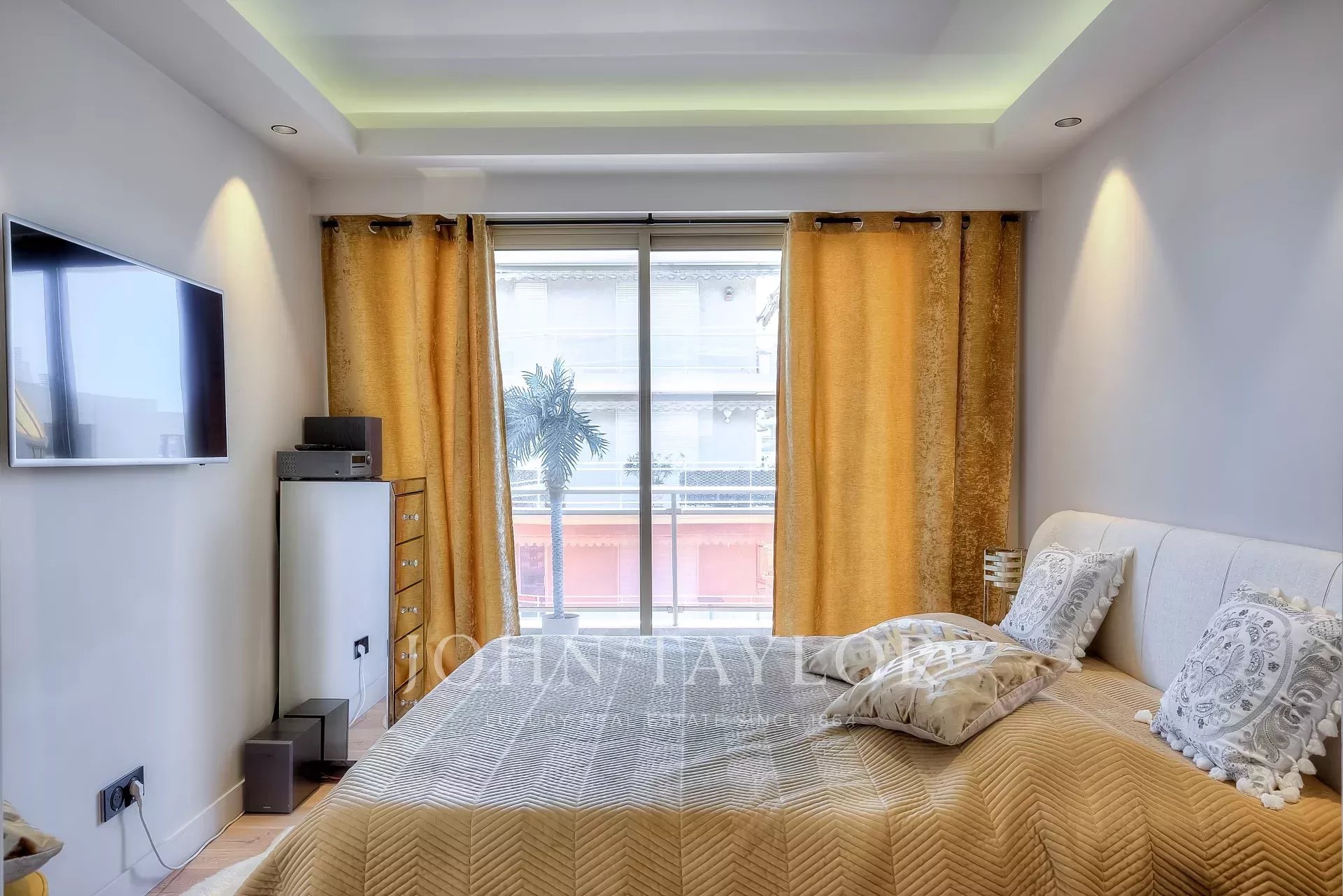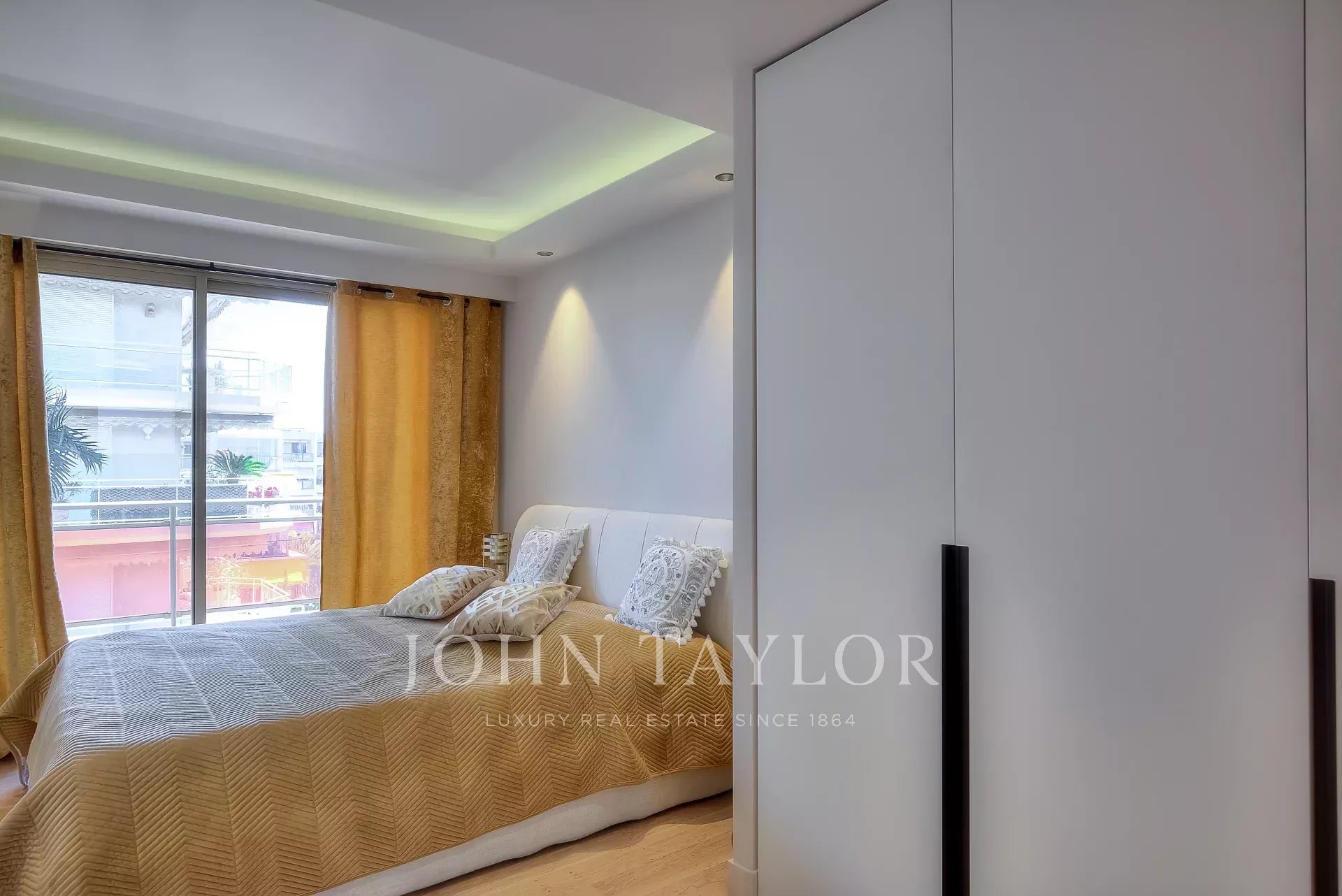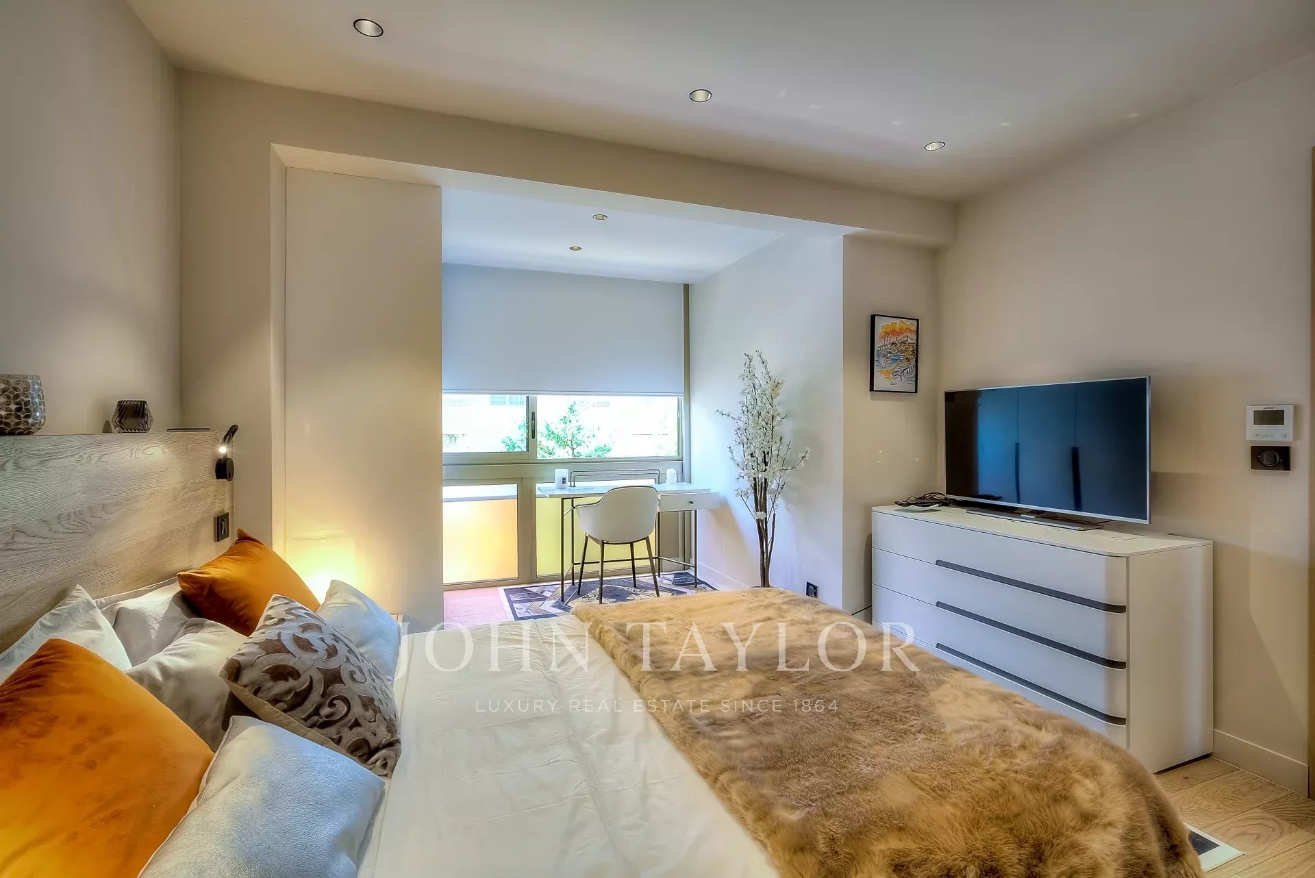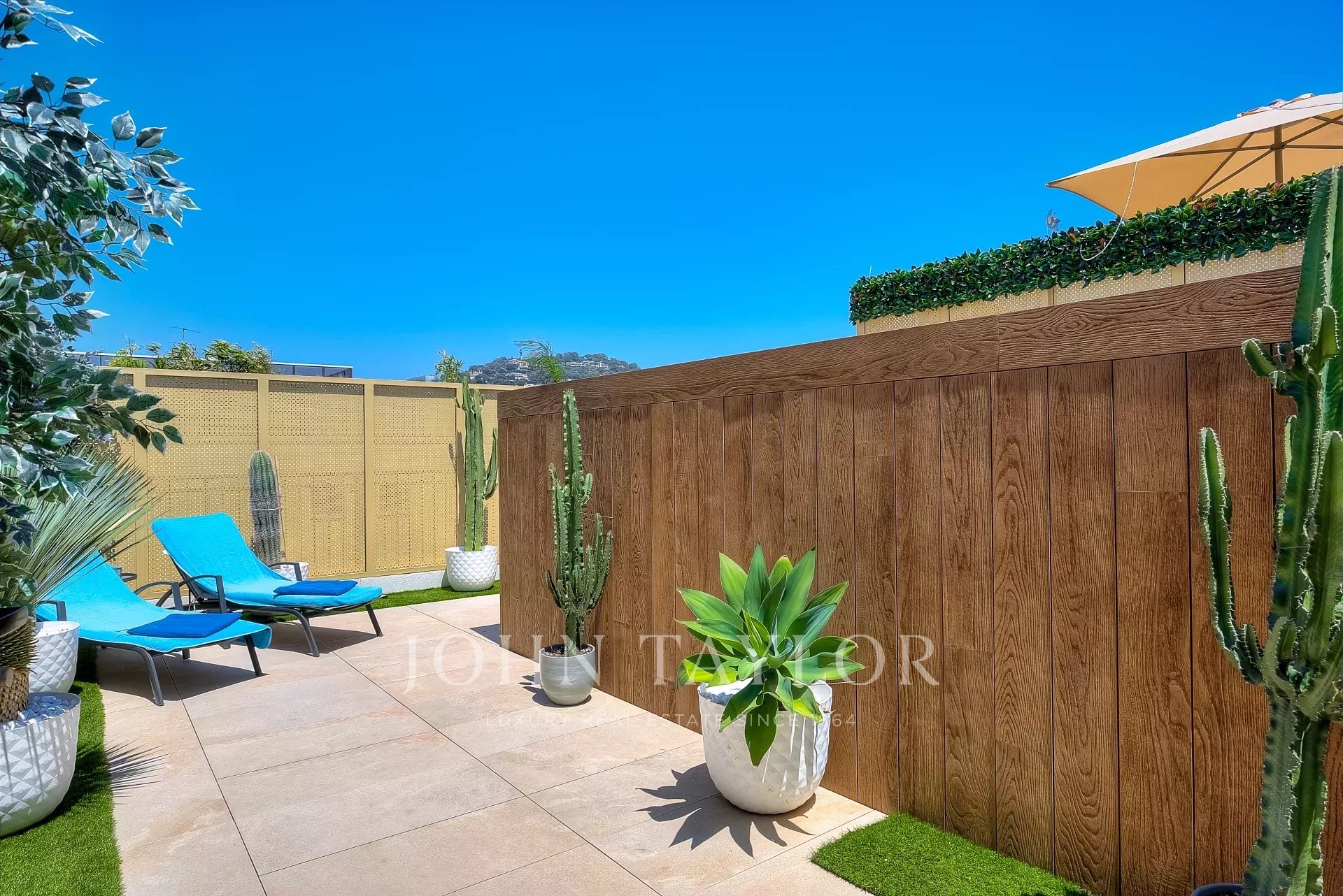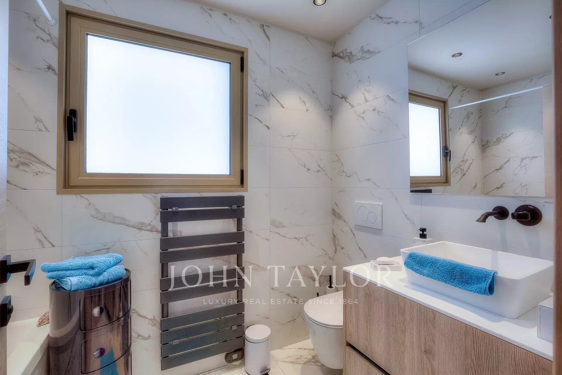 В роскошной резиденции, во 2-м ряду набережной Круазетт, превосходная современная квартира площадью 100 м2 с террасой на крыше площадью 176 м2 с частным бассейном (5,5 м x 3 м), шезлонгами, гостиной, обеденной зоной и летней кухней с барбекю.