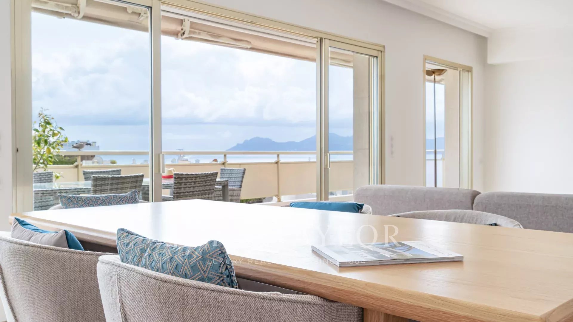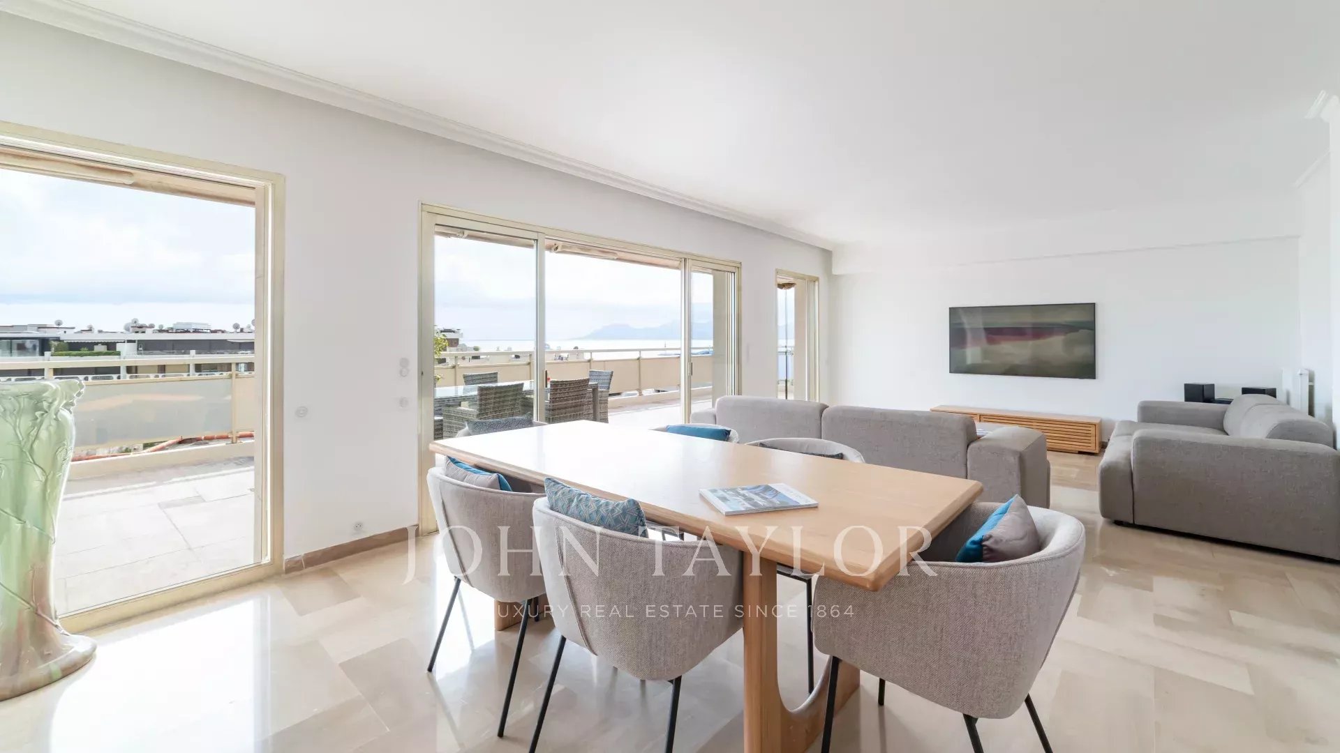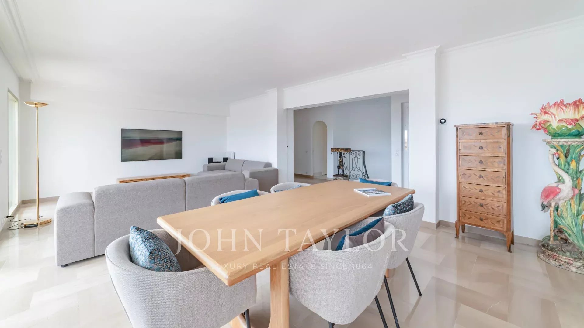 Красивая приемная с гостиной и столовой, выходящая на террасу площадью 60 м², ориентированную на юг.