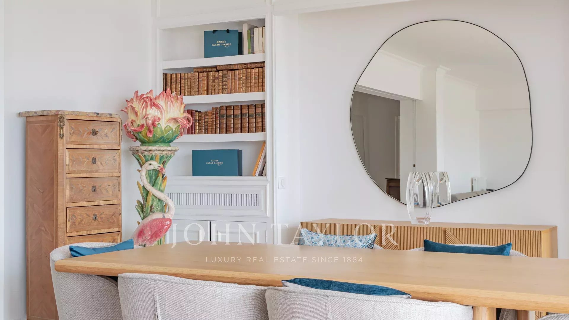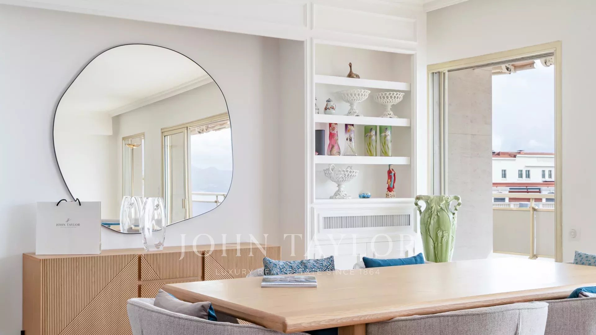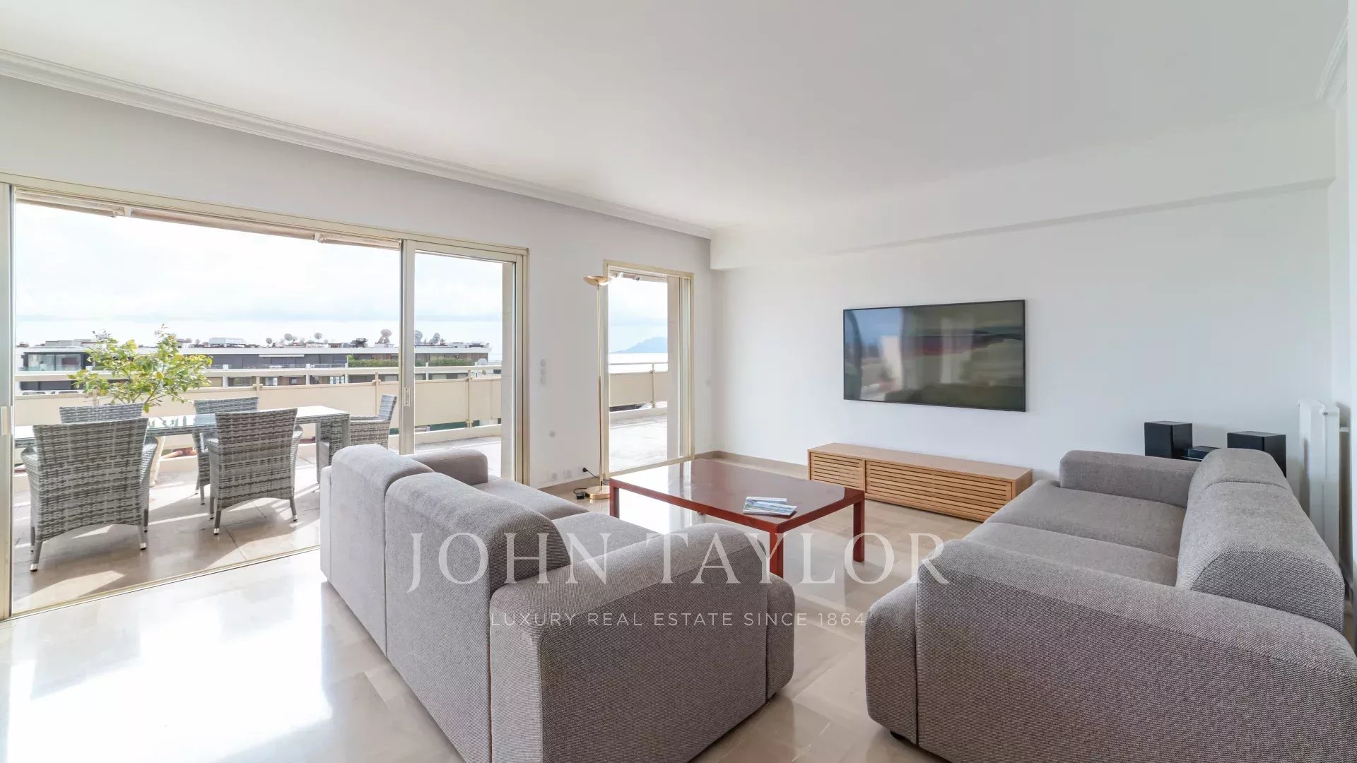 Красивая приемная с гостиной и столовой, выходящая на террасу площадью 60 м², ориентированную на юг.